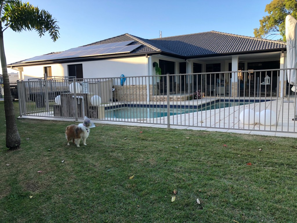 Rose had stayed home with Bruce, Judi and Coco.She is wearing a special collar to stop her from licking her feet, so I imagine that she has been feeling rather put out by the restrictions is causes her. I don’t think that Coco laughed at her too much, although she did look a little unimpressed when we got back to Banora Point.