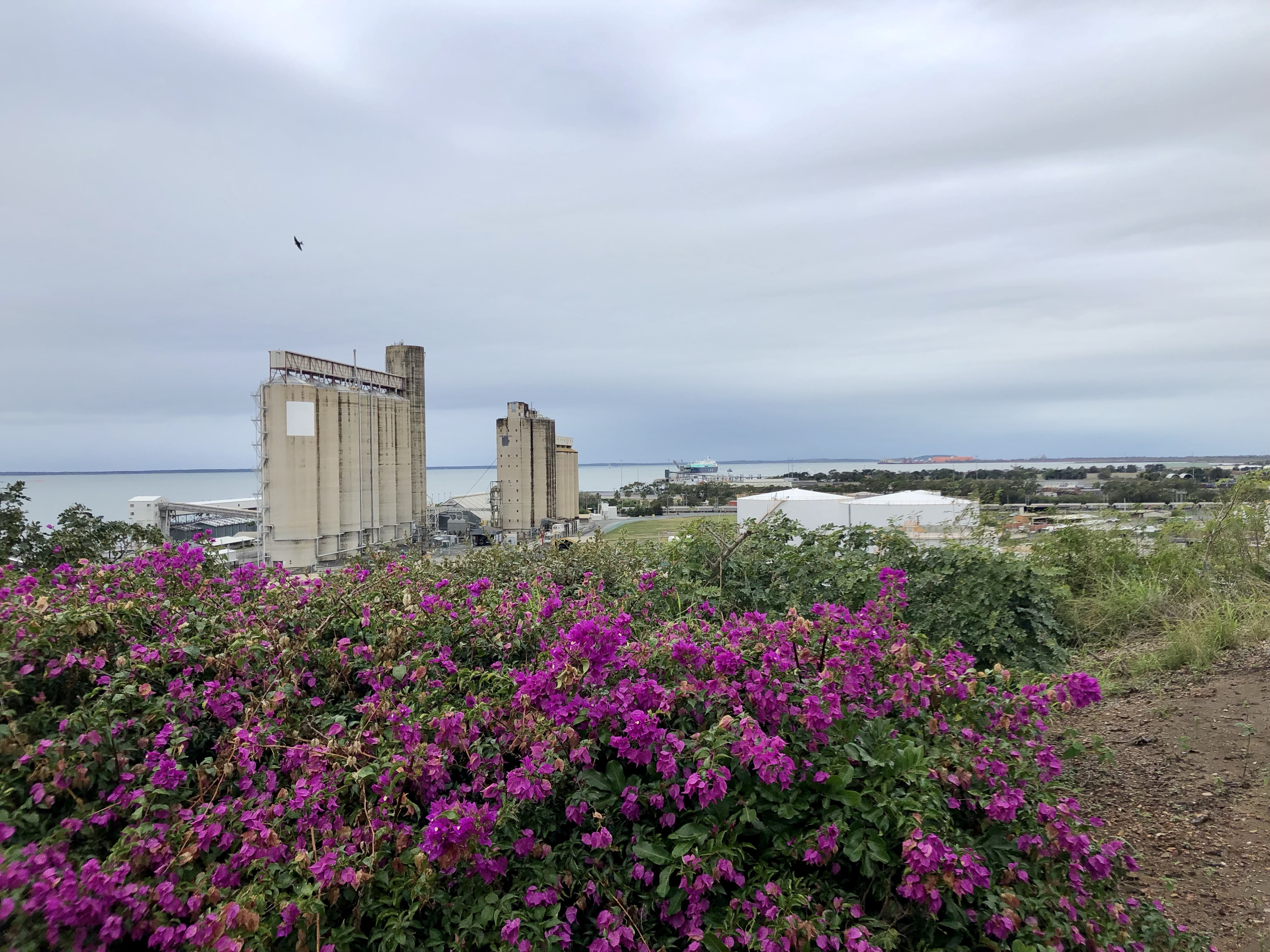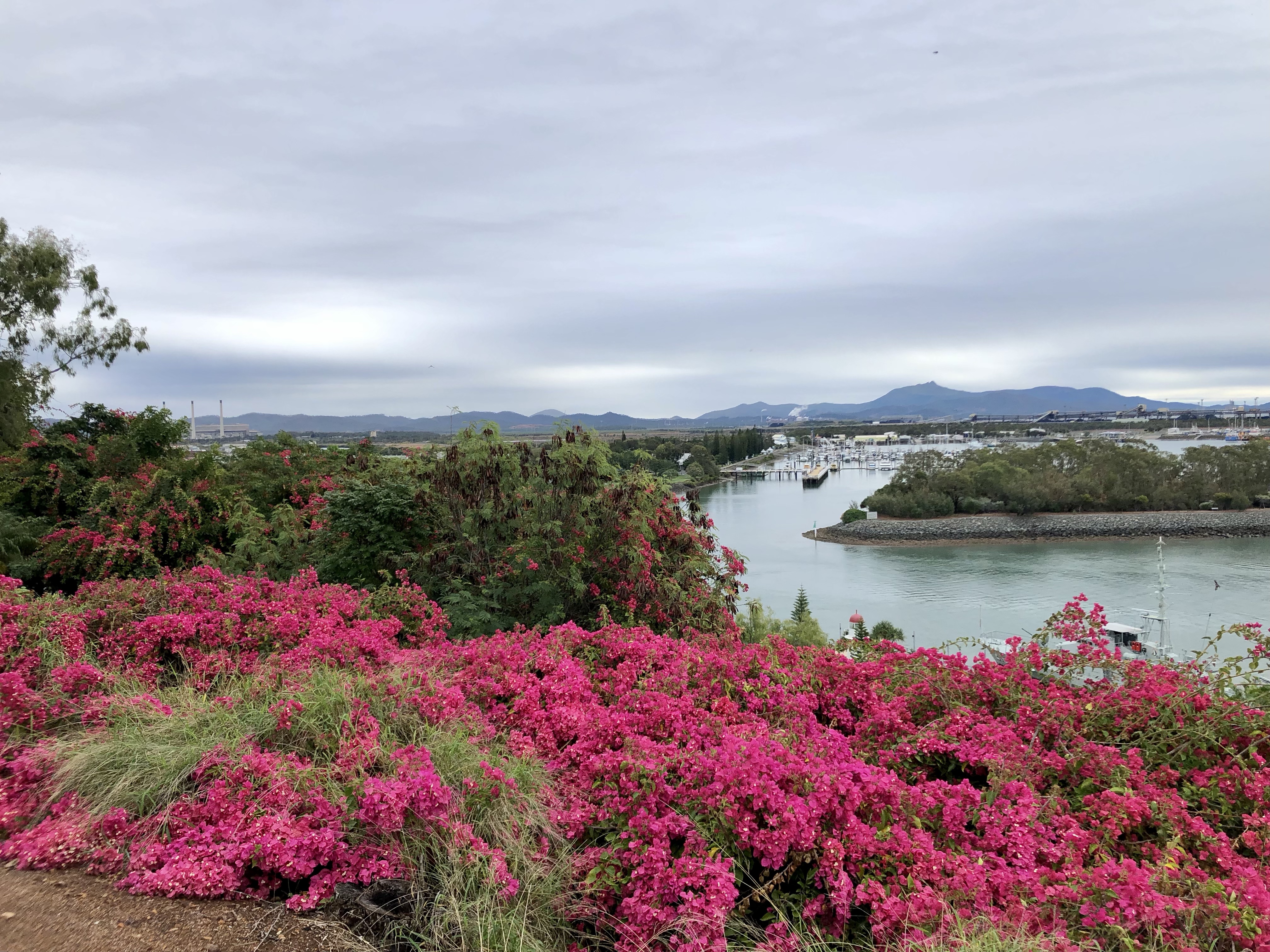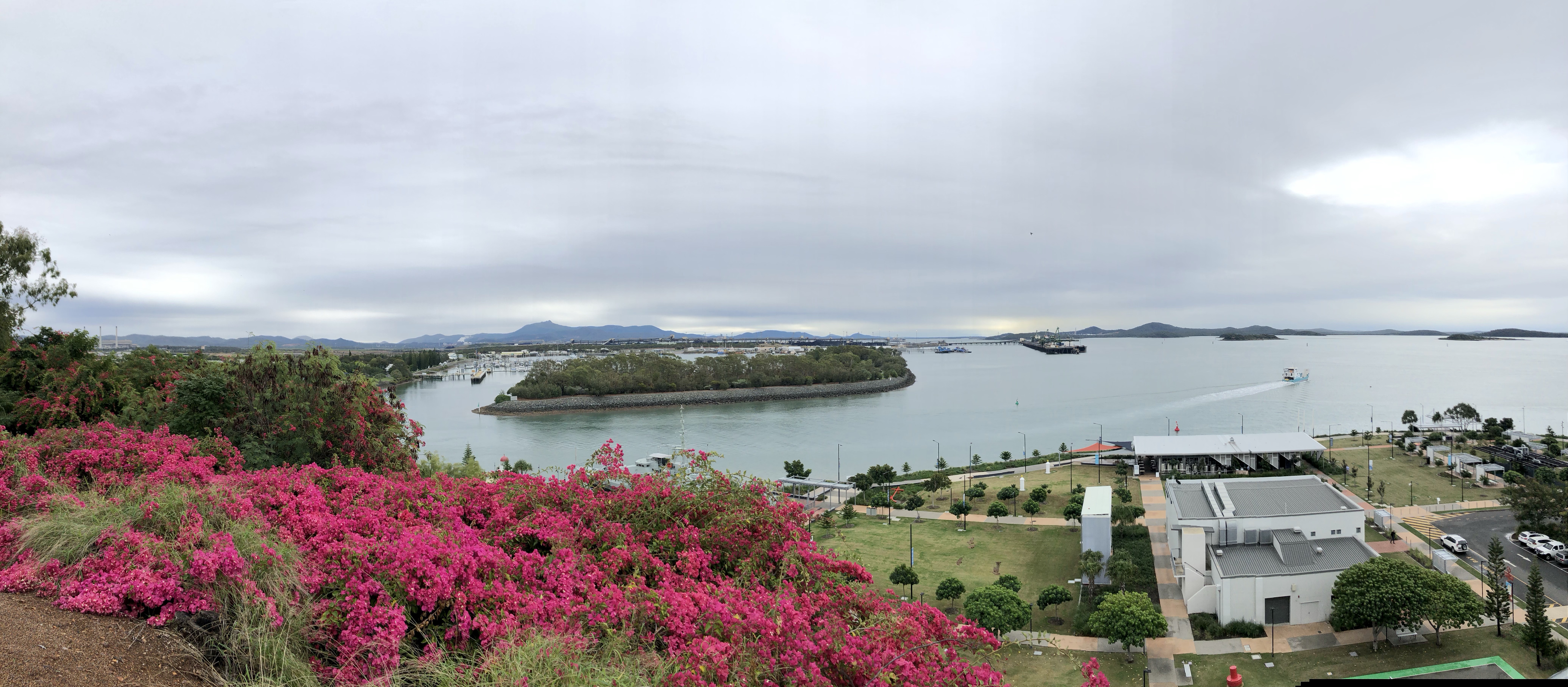 Norm and I explored the top of Mount Auckland in the afternoon. The views over Gladstone and the harbour were spectacular. There were swallows soaring in the air around us and beautiful tropical noisy minors with vivid blue caps and olive green wings seeking out sweet nectar.