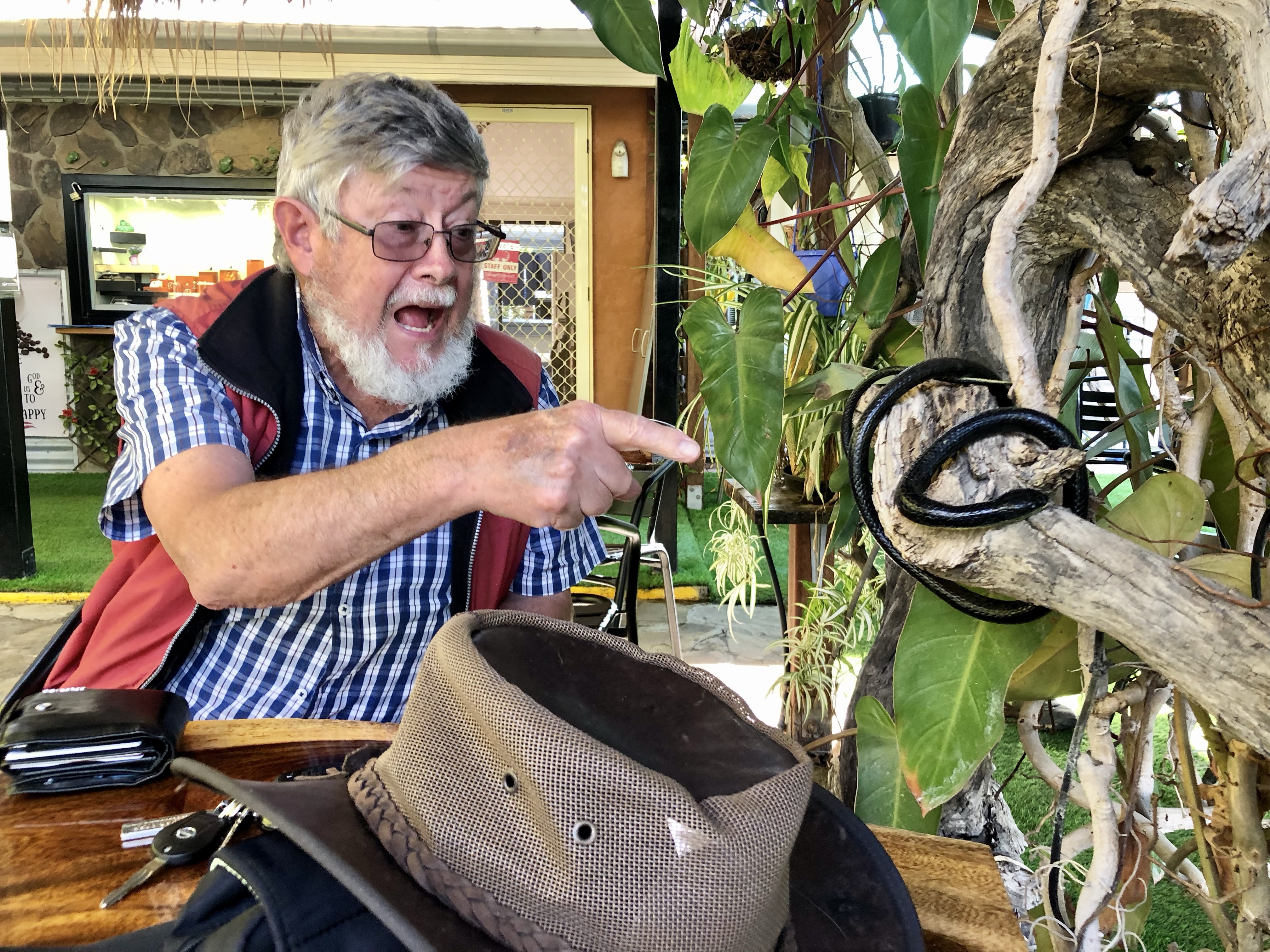 By Saturday the rain was gone and the sunny dry weather had returned to our delight. Over the next couple of days we explored more of the gem fields including Sapphire and Rubyvale. Our exploration to the Sapphire Wetlands was cut short when a swarm of very cross very large very black ants clambered all over our shoes and quickly up our legs when we paused to photograph some pretty red flowers. We were soon dancing the Corroboree of the black ant. When we retreated to the car Norm had to take off his jeans to dislodge some of the more persistent invaders. We did laugh about the experience but have no intention to return to the Wetlands.