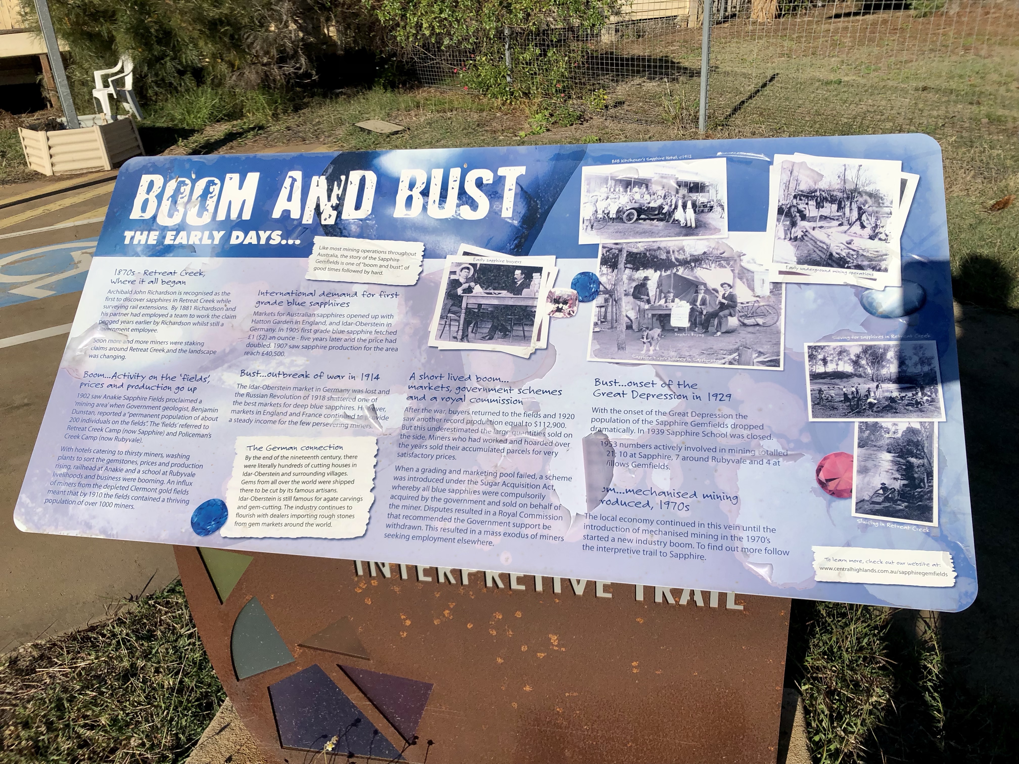 We enjoyed our decadent treat in a garden oasis – perfect surroundings for a pause in our gemfield amblings. The next day we decided to try our hand at noodling for sapphires snd other precious gems. I suspect we probably discarded anything of value given our ignorance about fossicking. We do have a few tiny blue dots if stone.
