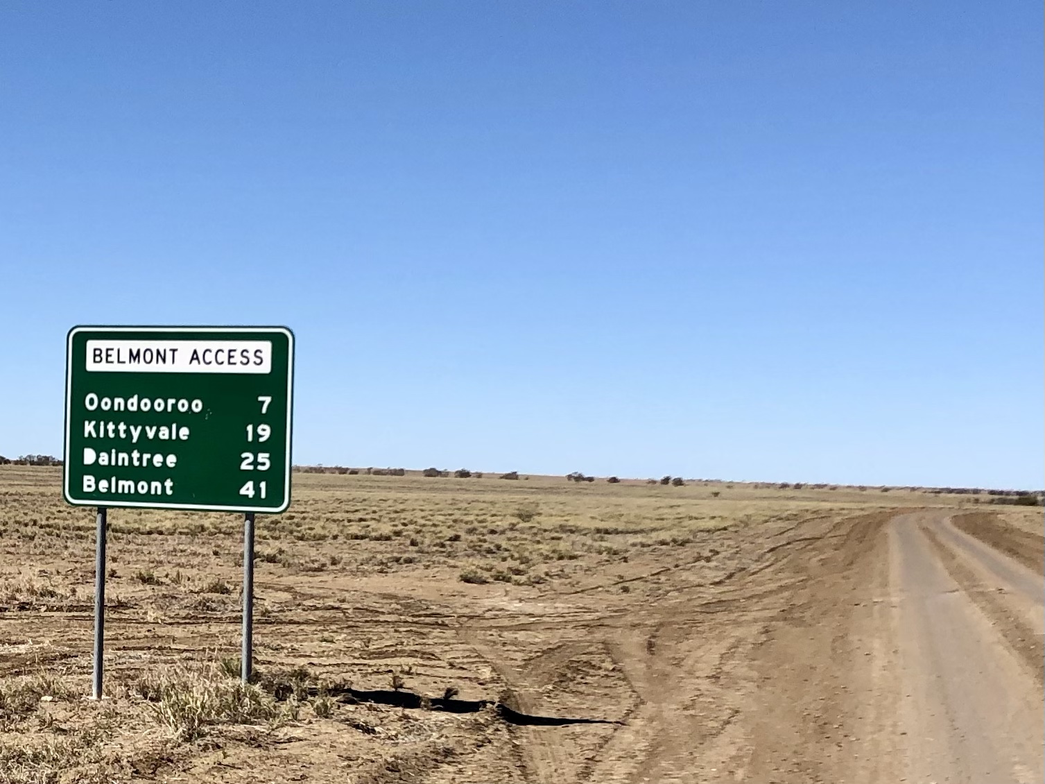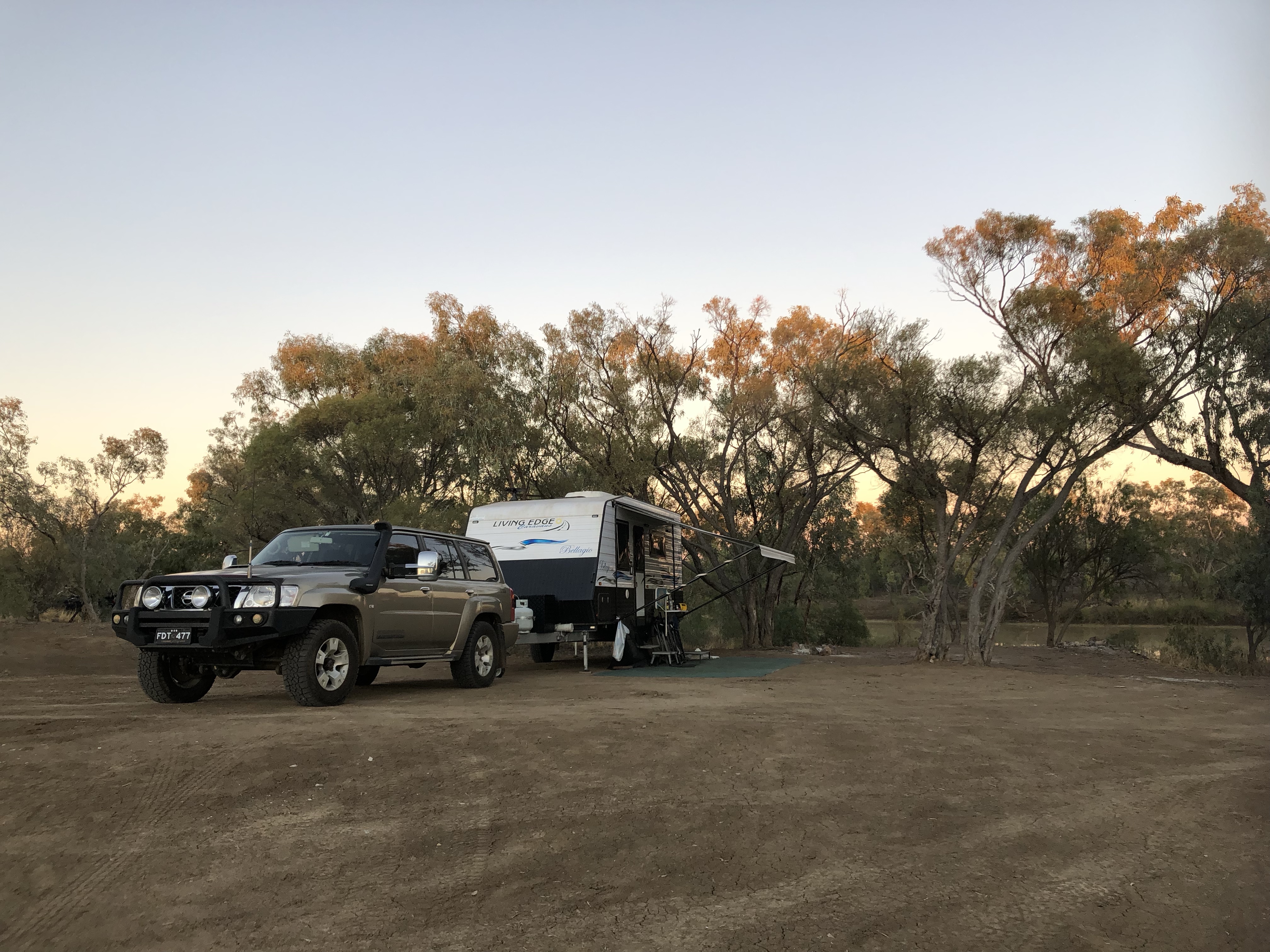 We are now camped on a station out of Winton, called Oondooroo. Apart from the rise where the dinosaurs have been unearthed near Winton, the countryside has been flat with a huge horizon and arching blue sky.
