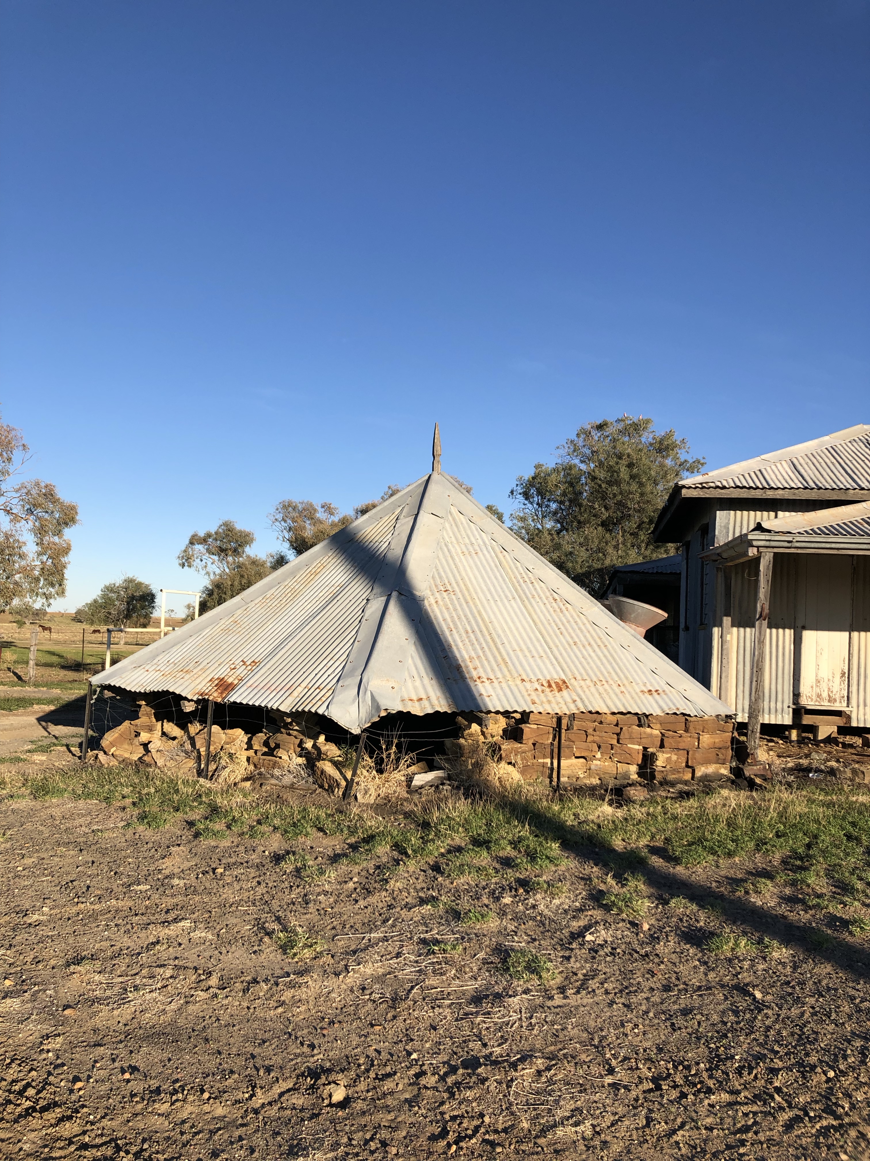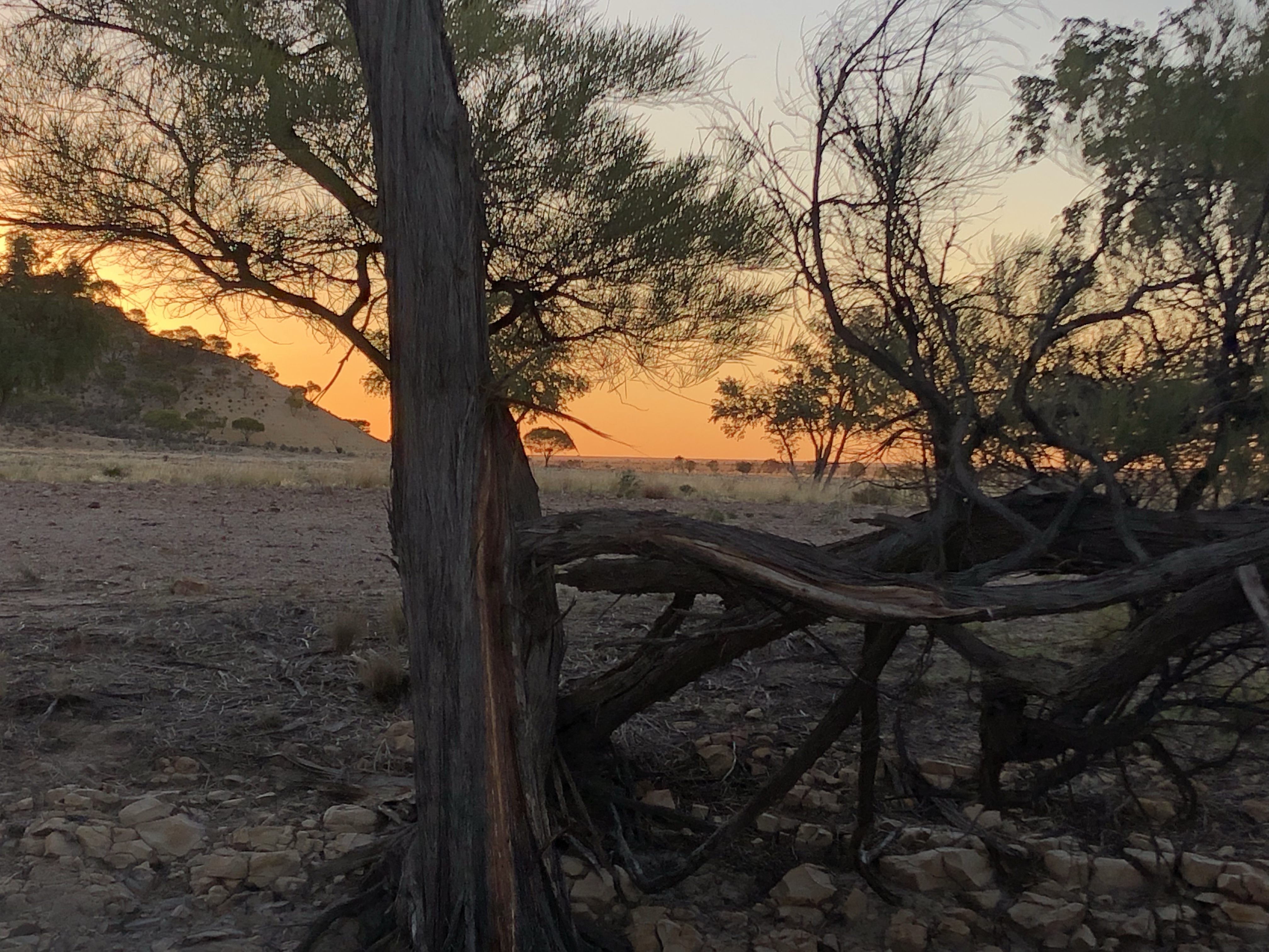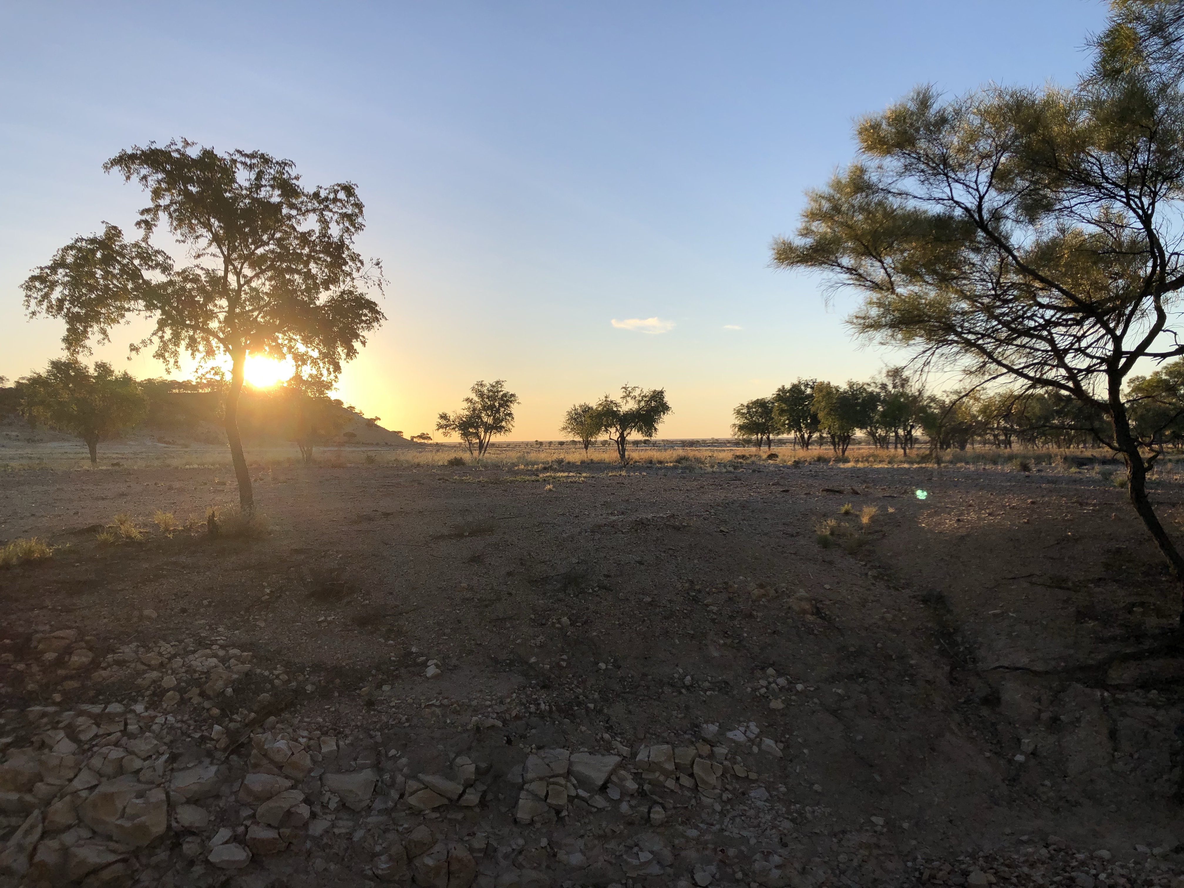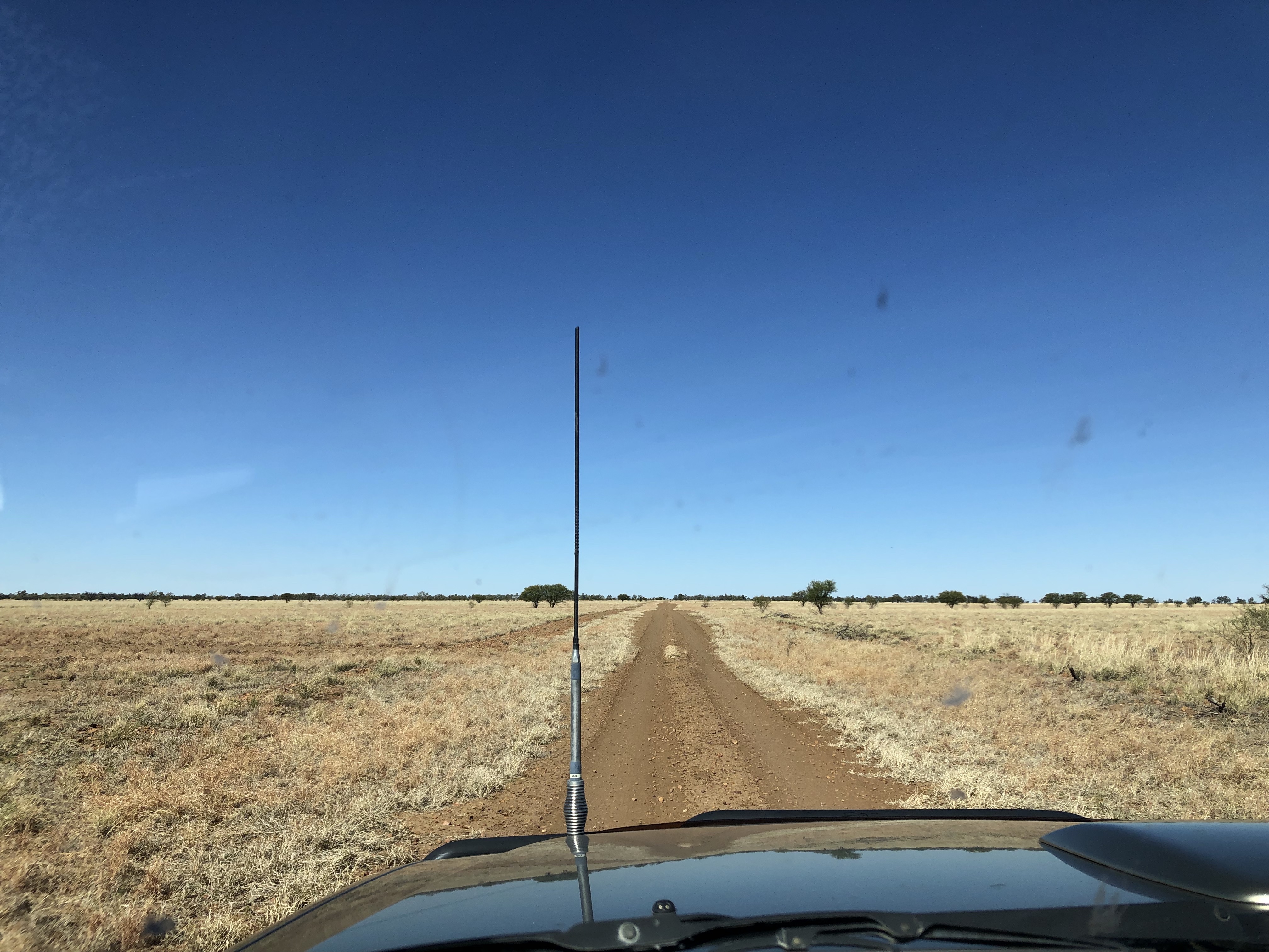We drove into Winton via the station road today. It took us past the local waterhole with the usual swing hanging from one of the trees. There were flocks of budgerigars in the trees, singing loudly. From there we drove though several huge, flat, yellow paddocks with a few cattle and sheep.