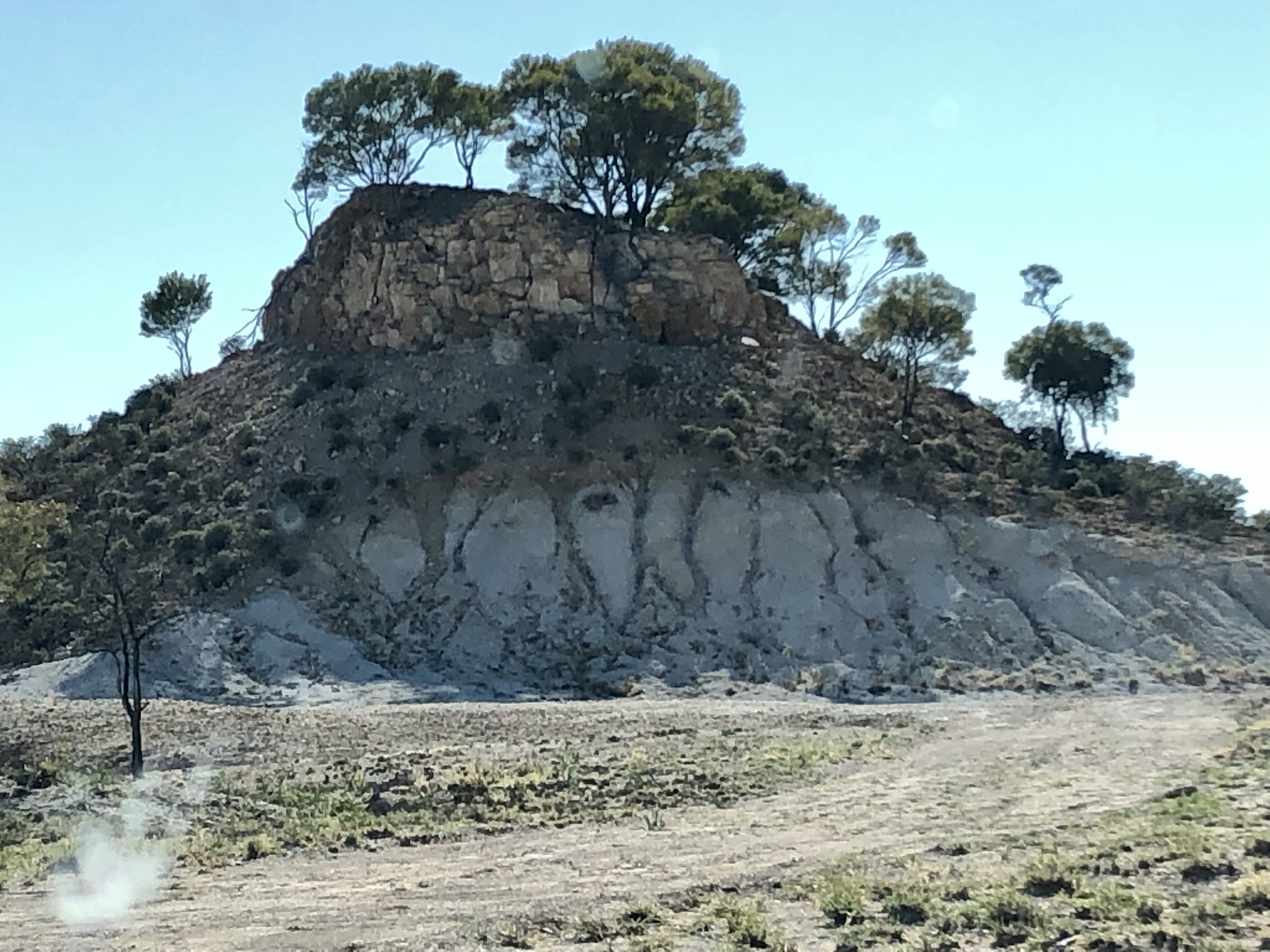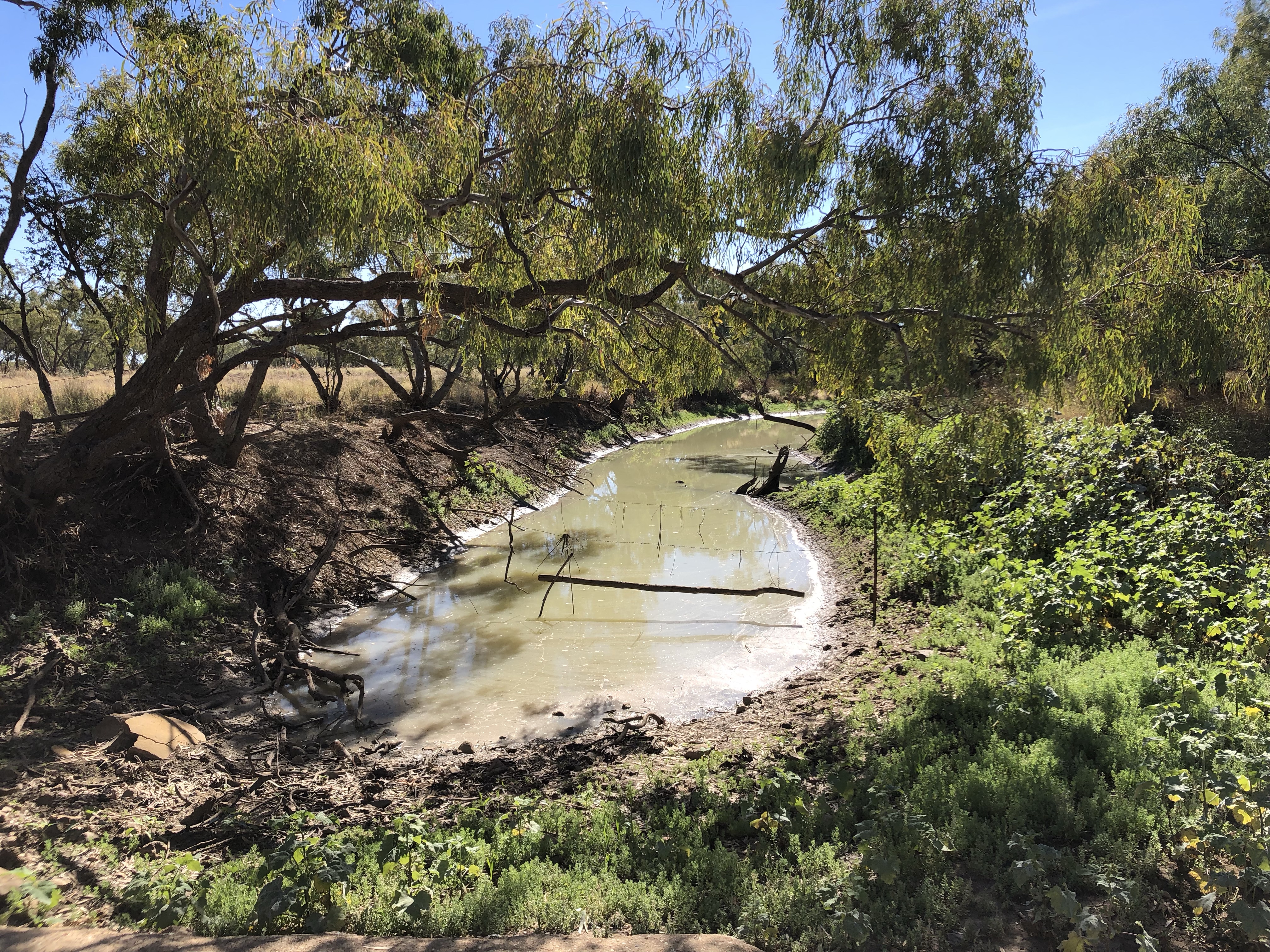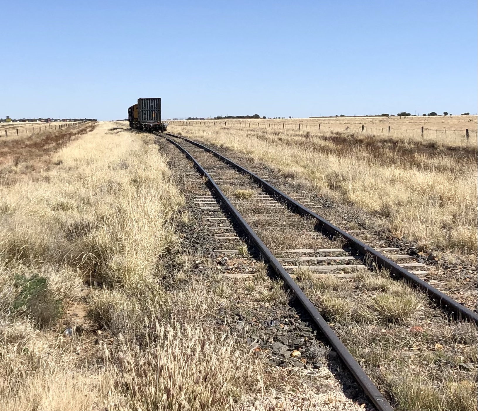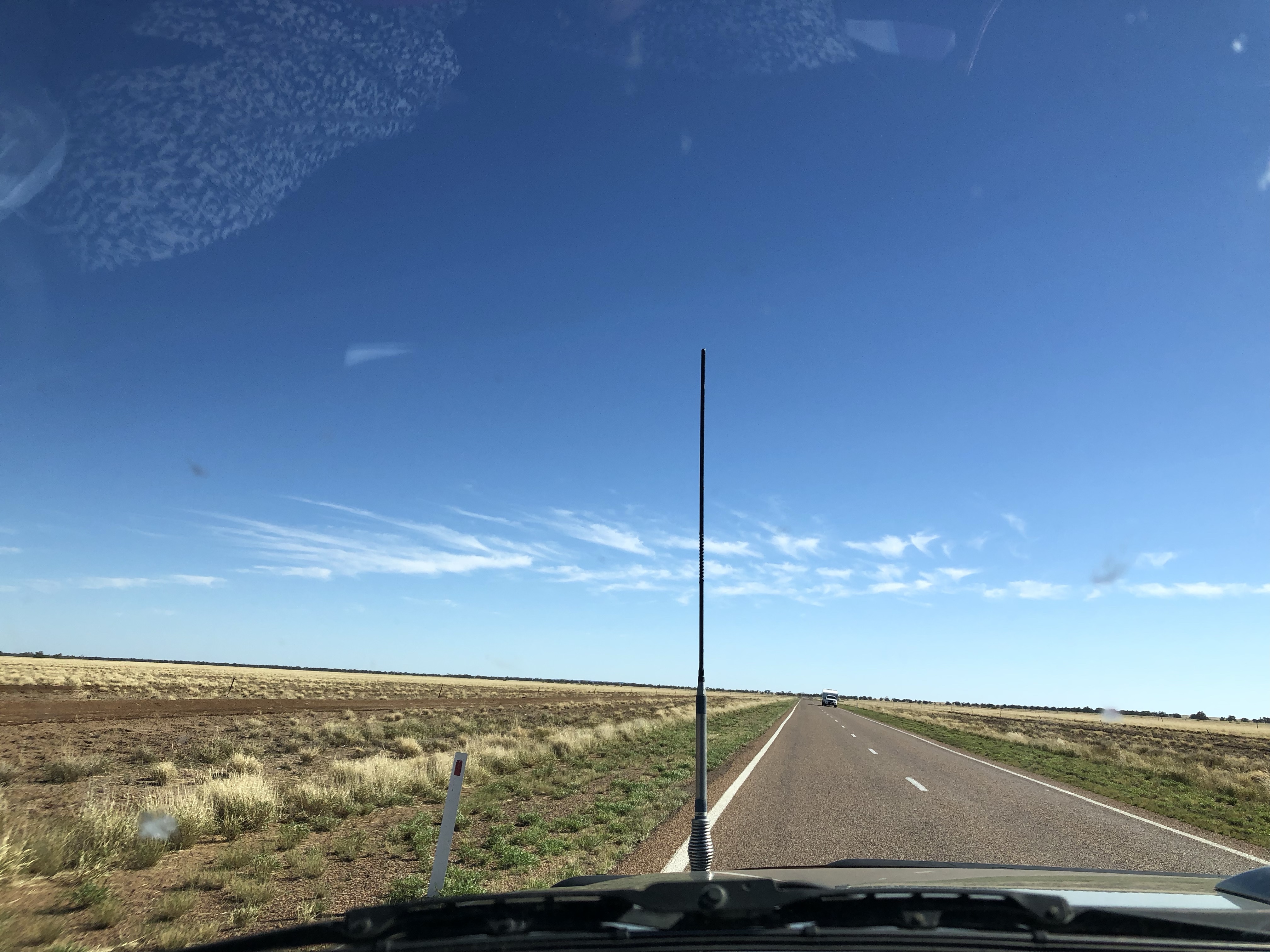 We drove into Winton via the station road today. It took us past the local waterhole with the usual swing hanging from one of the trees. There were flocks of budgerigars in the trees, singing loudly. From there we drove though several huge, flat, yellow paddocks with a few cattle and sheep.