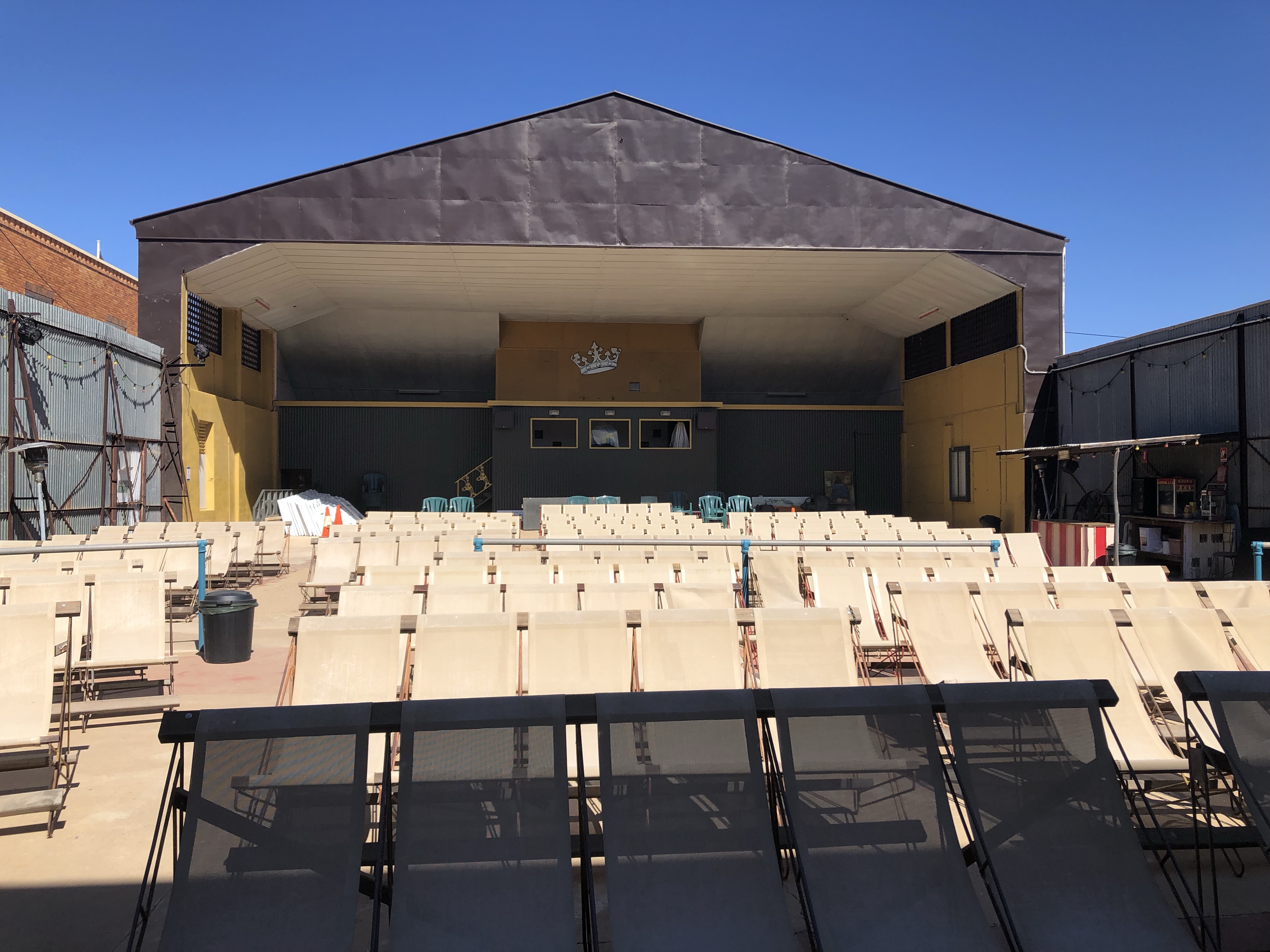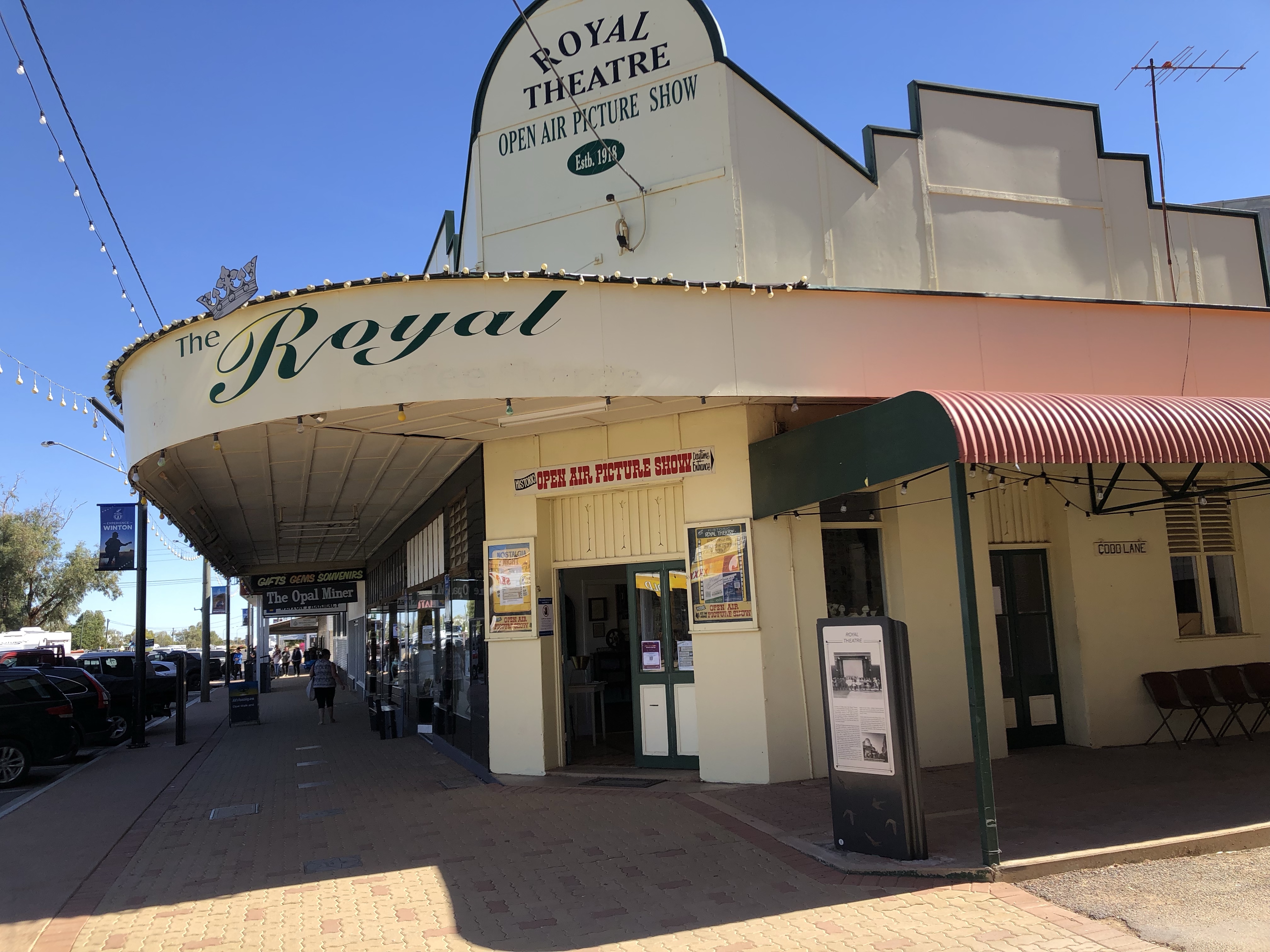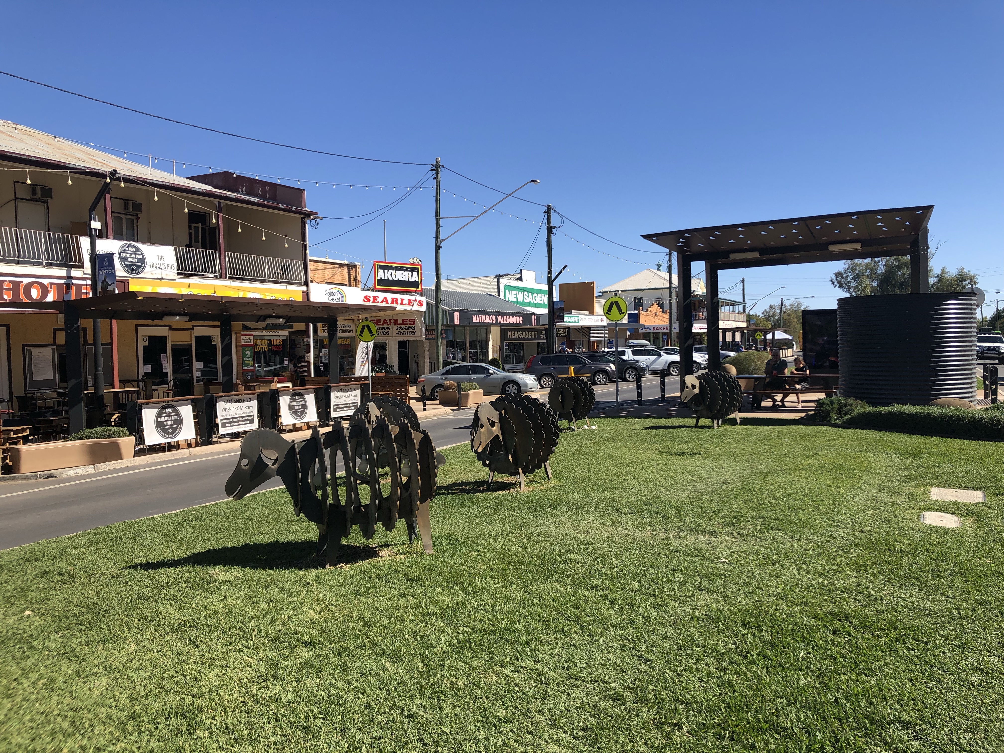 In town we paused for lunch at the Gregory Hotel, where had camped last trip. We enjoyed the best ever steak sandwiches in the cool beer garden. The open air movie theatre next door has been reopened and renovated, so we spent some time wandering around there before shopping and heading back to camp