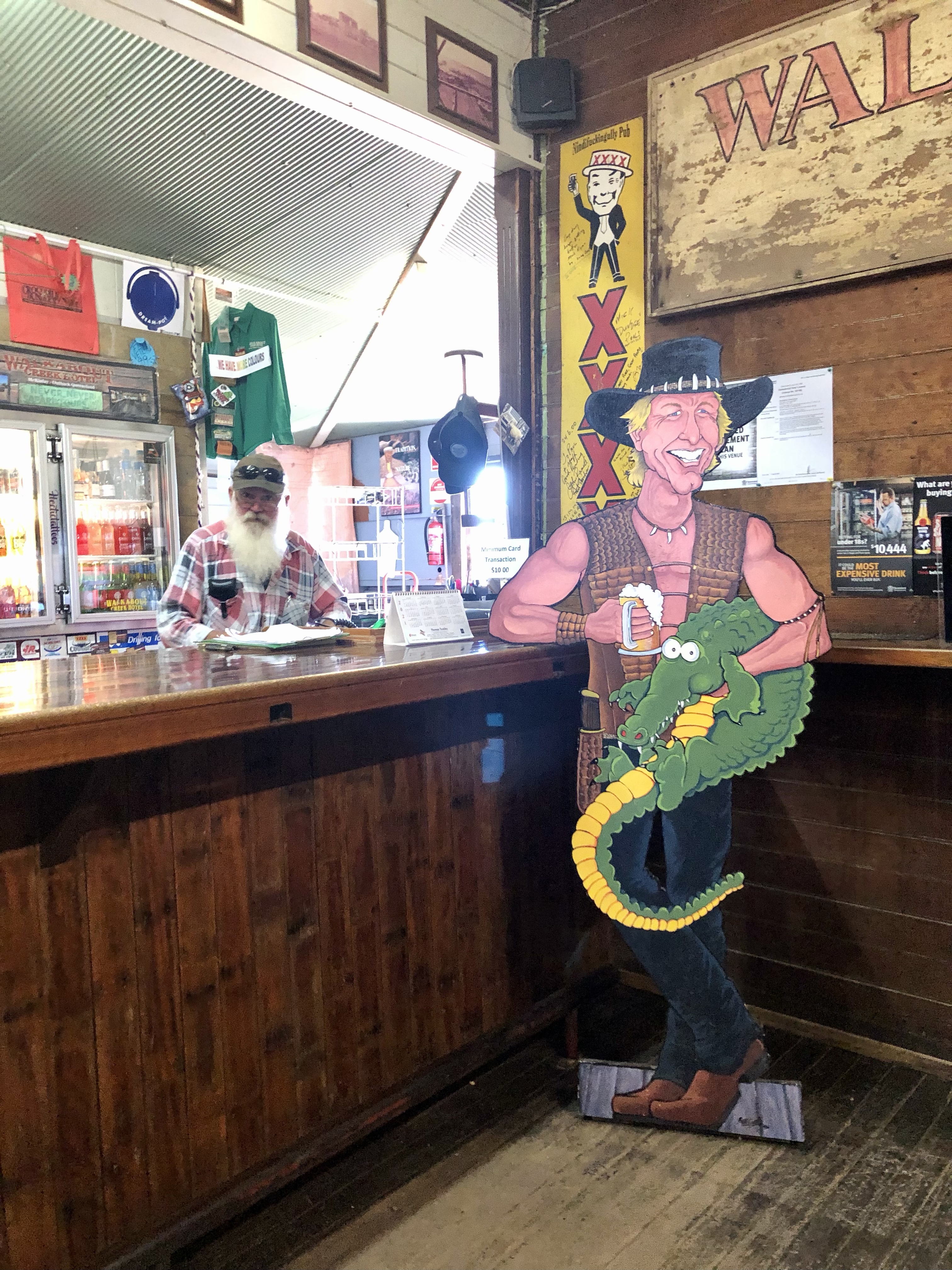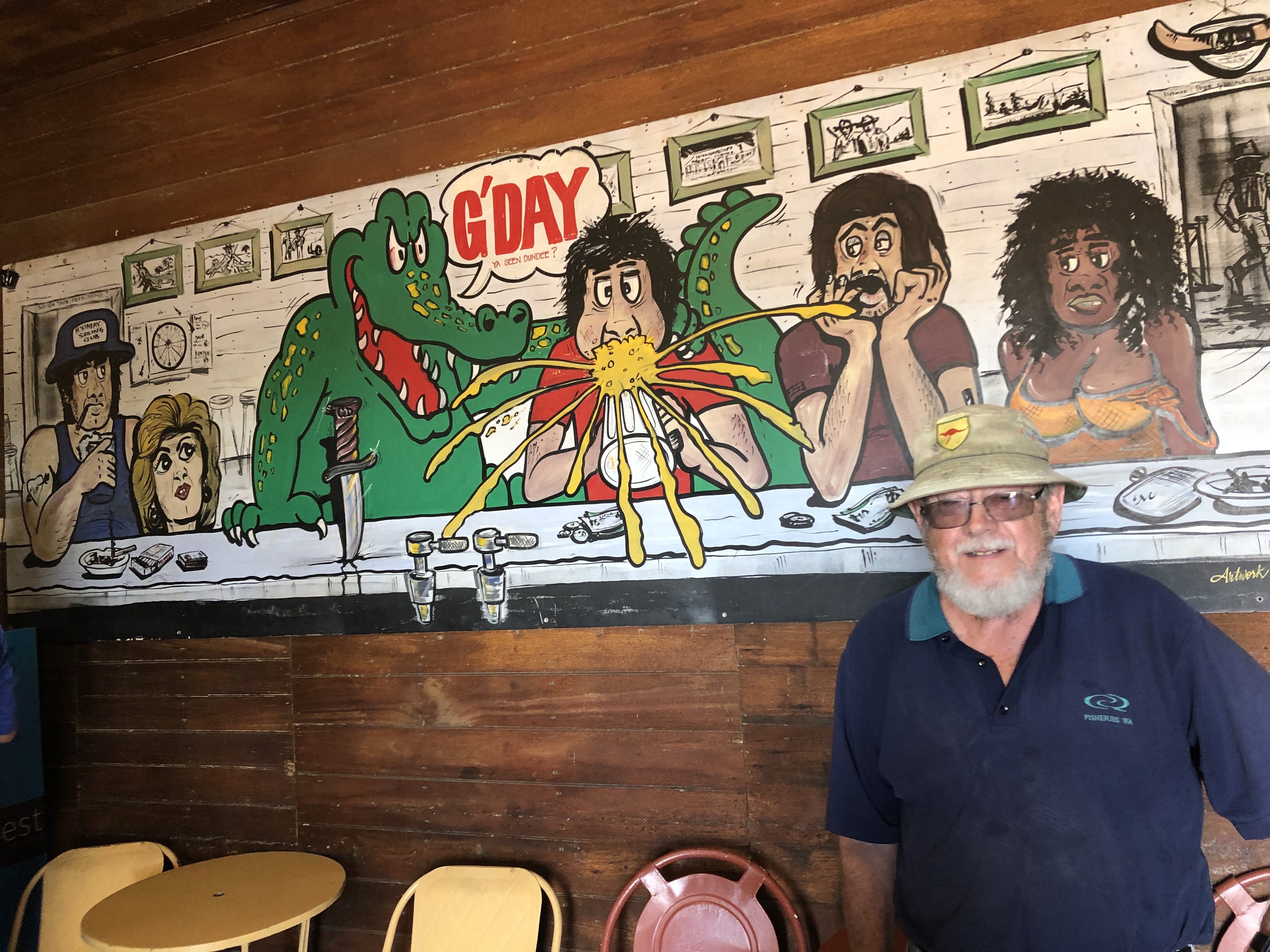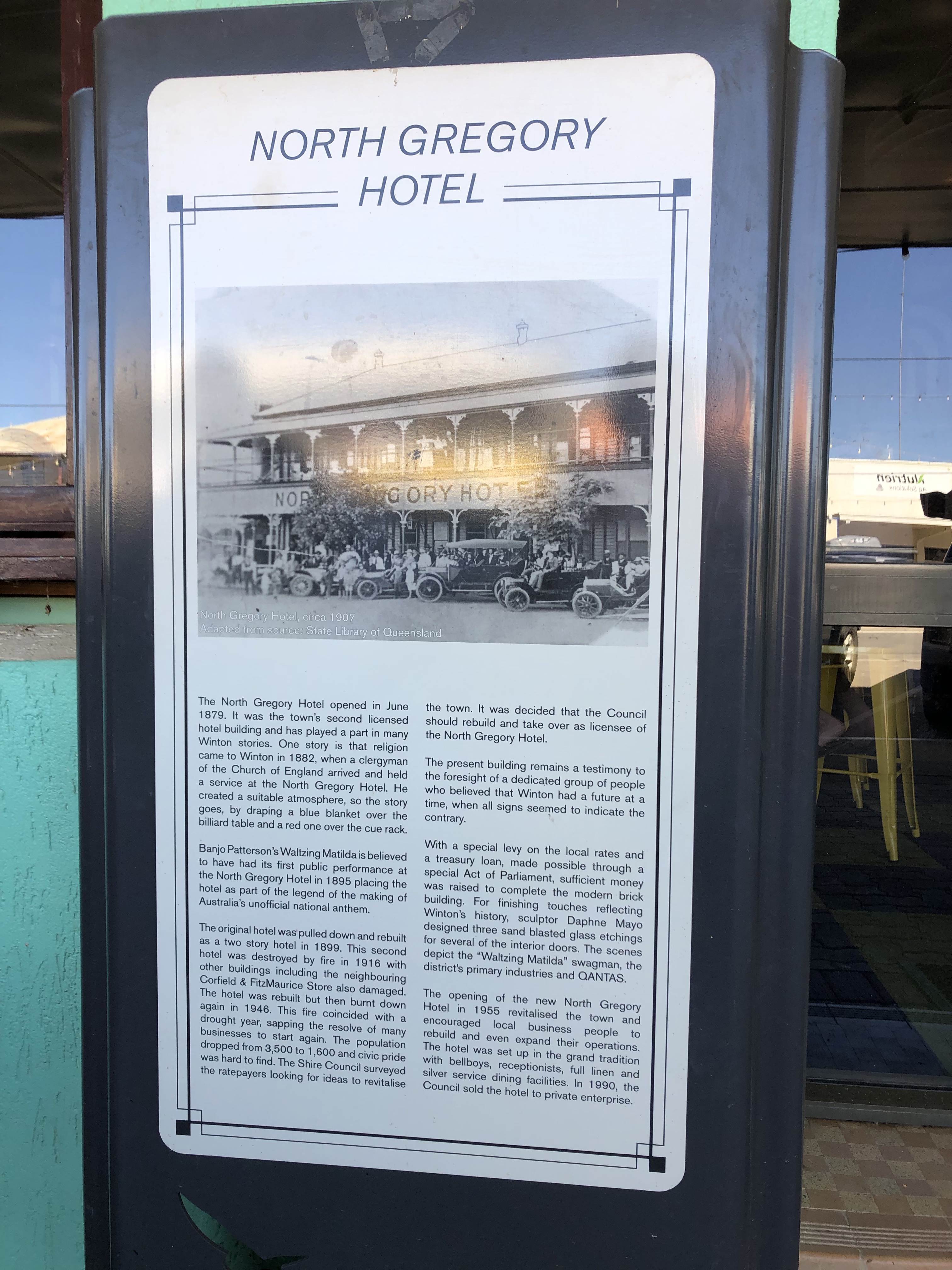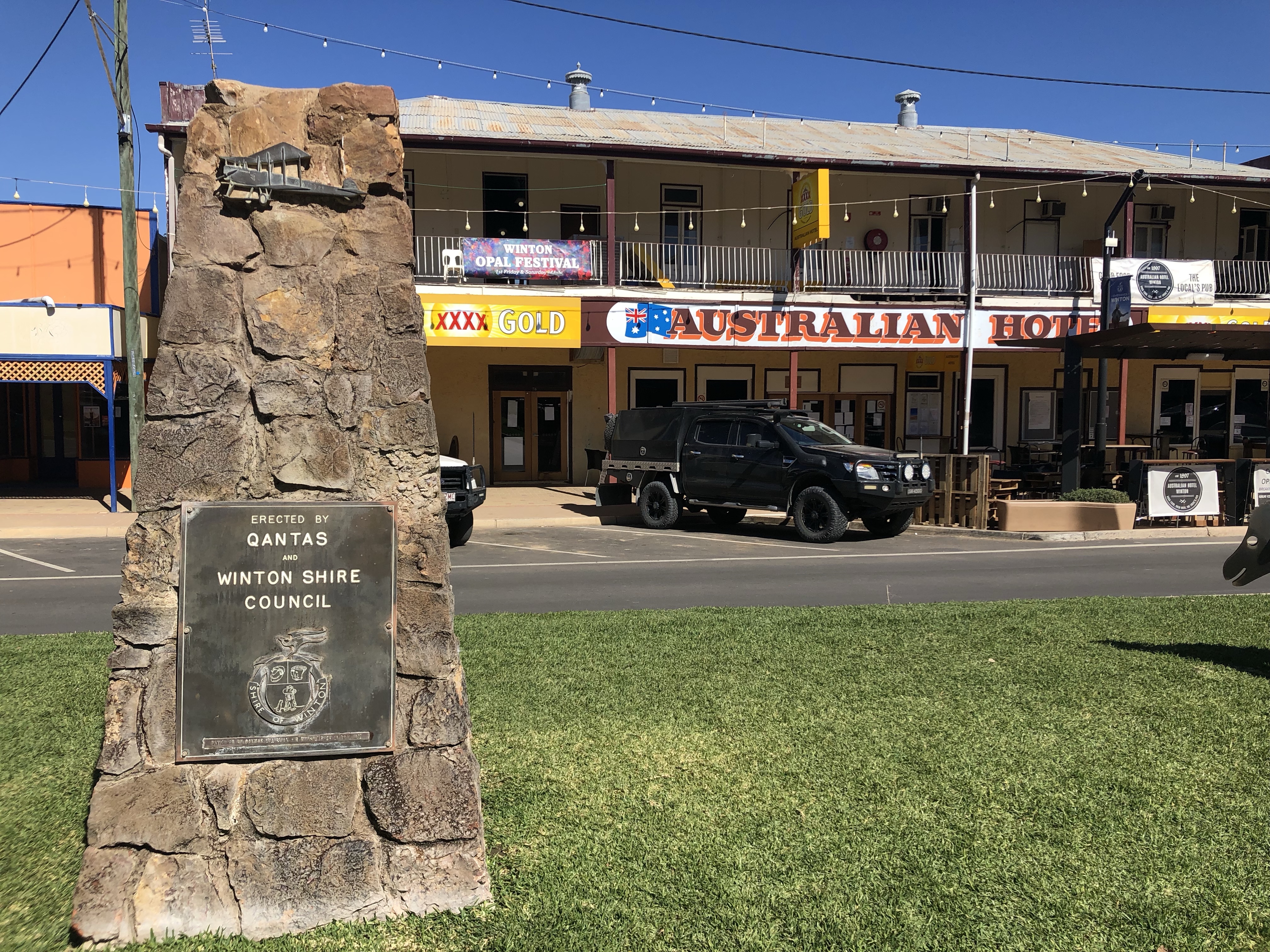 In town we paused for lunch at the Gregory Hotel, where had camped last trip. We enjoyed the best ever steak sandwiches in the cool beer garden. The open air movie theatre next door has been reopened and renovated, so we spent some time wandering around there before shopping and heading back to camp