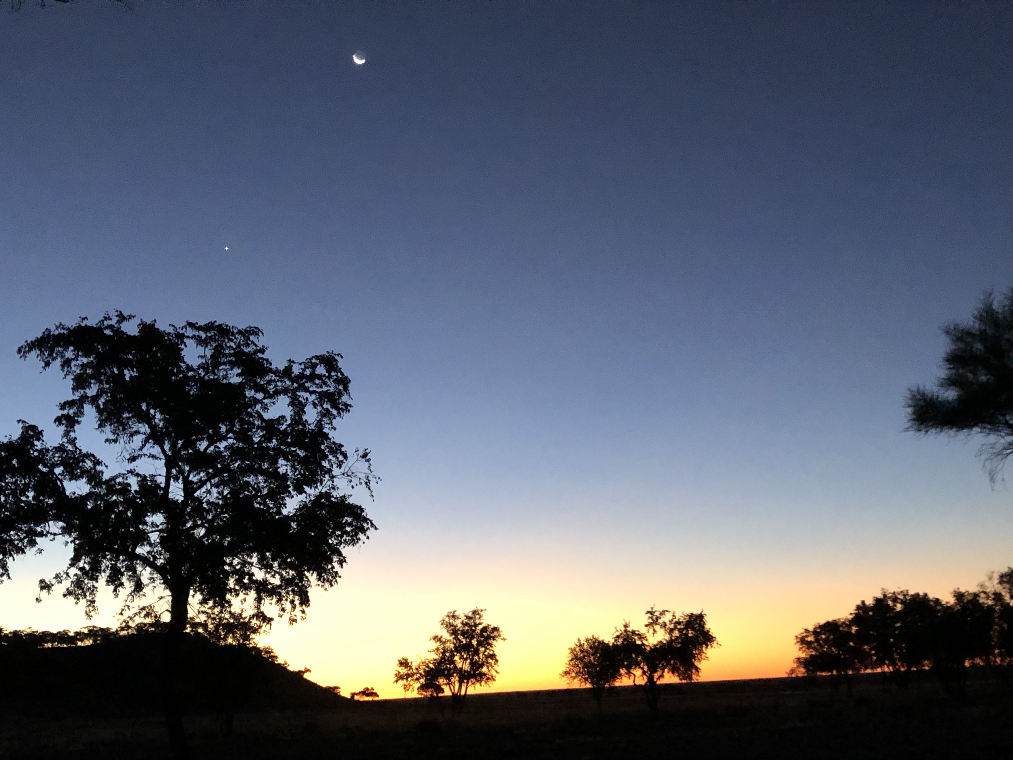The sun set and afterglow on the rocks was spectacular as a banana moon and bright venus rose in the deep puple blue sky.