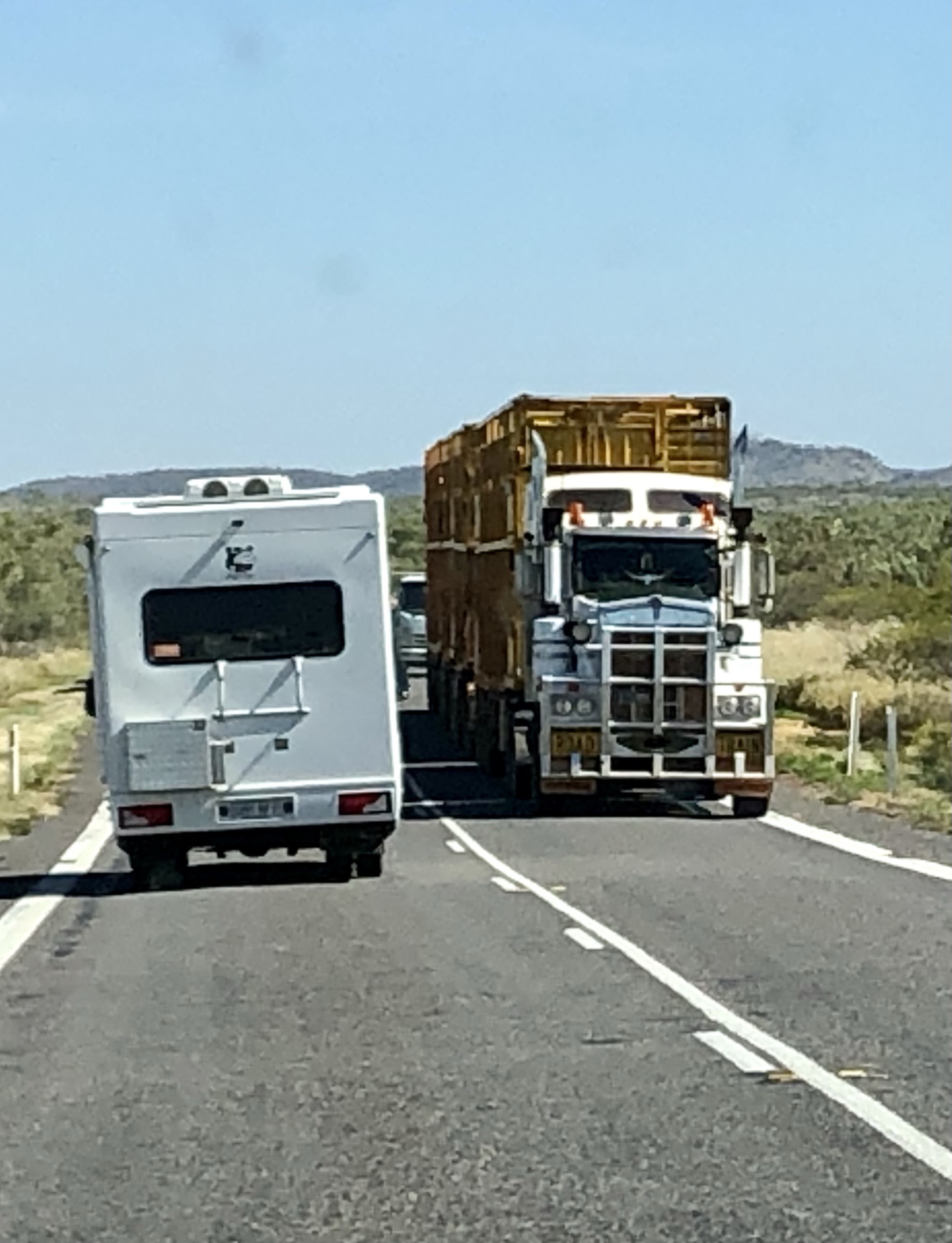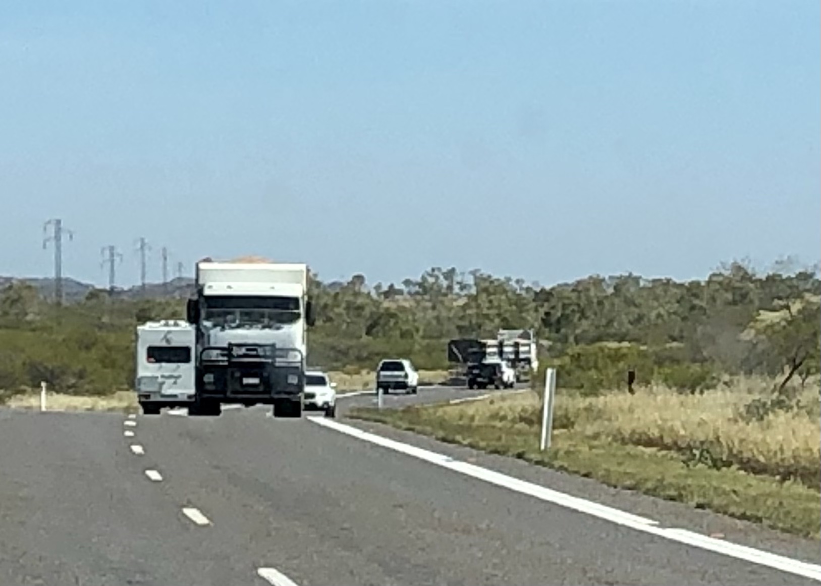 The Outback Café served us a huge slice of Banana Bread, which we shared, and a coffee. The small main town area is looking spruced up compared our last visit. There were many road trains and fellow nomads on the road today, so progress was slow occasionally. Fortunately there are several sections of overtaking lanes along the way to The Isa. We drove through beautiful, colourful, rugged amazing country along the way. As we passed the Fullerton Ranges we recalled great memories of the times we shared there with James.