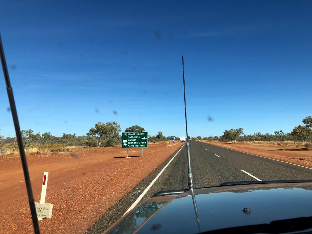 A beautiful sunrise woke us in the morning. After a shower and breakie we packed up camp and continued down the Barkly Highway to the intersection with the Stuart Highway, which links Adelaide with Darwin.