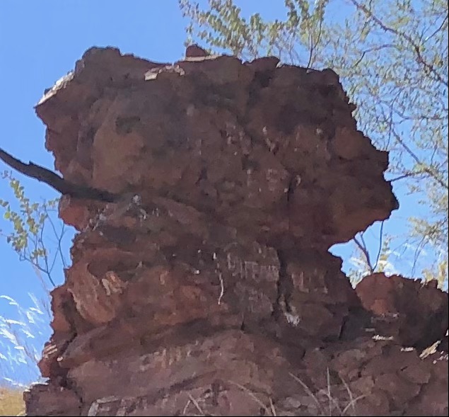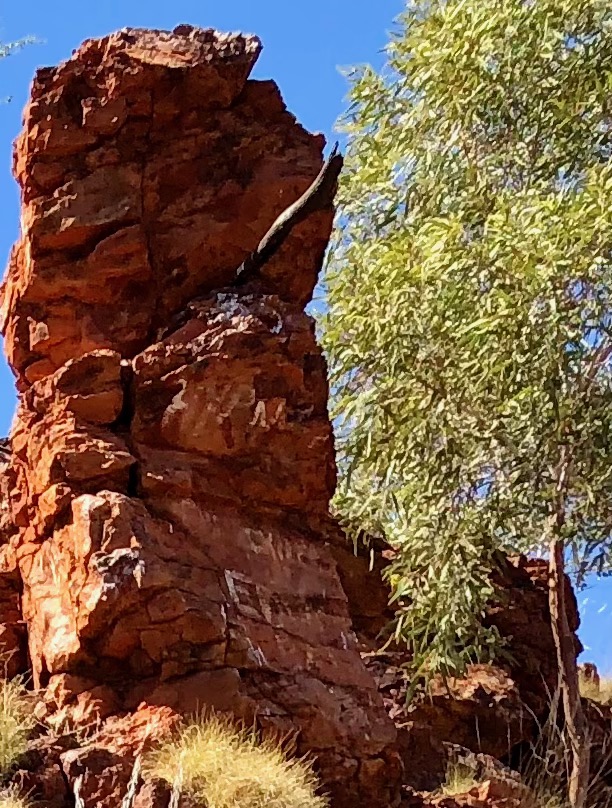 Norm had read about a WWII feature in the landscape, a rock called ‘Churchill’s Head’. When we arrived there we met a most delightful lady, from Adelaide, who was travelling with her cattle dog. She reminded me of one of the sisters from a recent cooking show on TV. She was so vibrant and full of life. She told us that she had driven from Adelaide to Darwin to find a beach for her dog (!) and that she was having trouble with a tenant in her house in Alice Springs, where she had grown up. The tenant owed er about $8000 and when finally evicted by a tribunal hearing, she left all of her possessions in the house, which meant our friend had to wait 28 days before the could remove them. Anyway we all agreed that Churchill’s Head required a great deal of imagination to see the famous head. The views were spectacular, which made up for our disappointment in the rock.