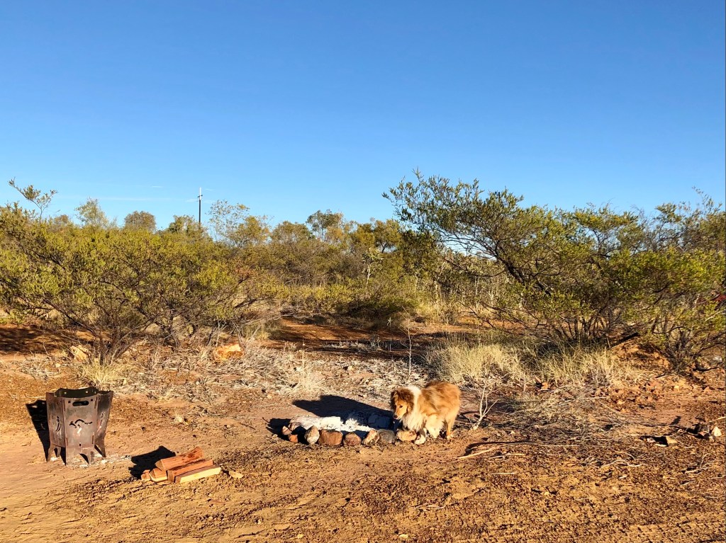 The early morning light painted a beautiful scene on our walk before breakfast. Rosie, however, was more interested in the delicious smells around the old campfire.