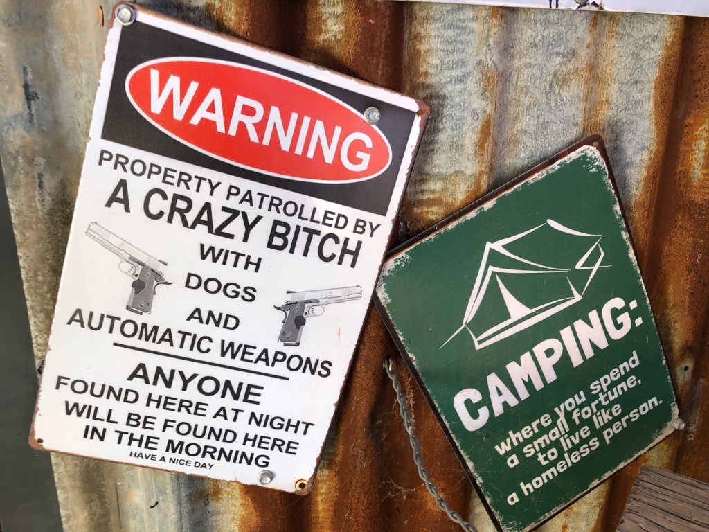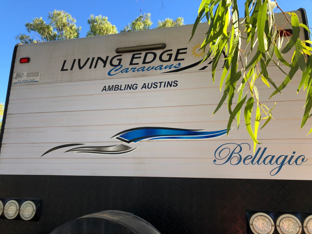 Norm soon got to chatting to our neighbour opposite, who turned out to be Dave, aka ‘Tonic’ from the band ‘Jen & Tonic’, one of the entertainment groups in camp. The second string to his bow, so to speak, is making signs for caravans. So after Dave had performed the afternoon gig, he created and applied our new ‘AMBLING AUSTINS’ sign. We are no longer anonymous.