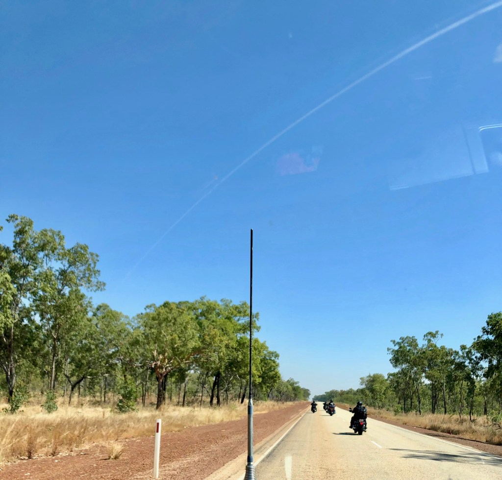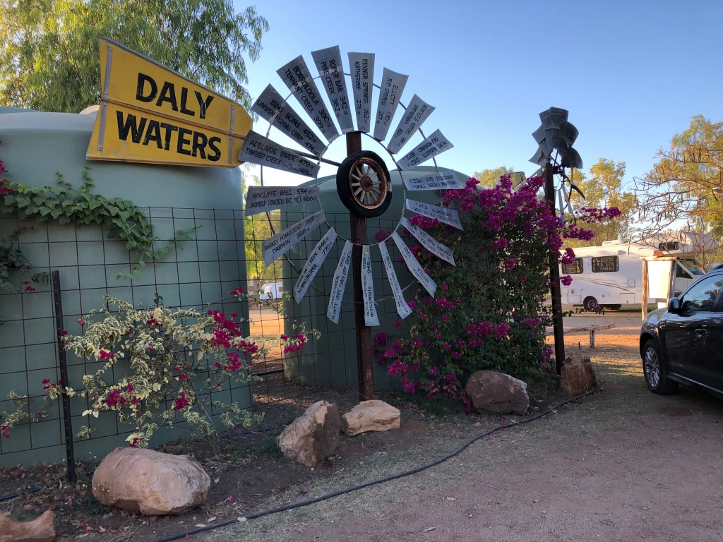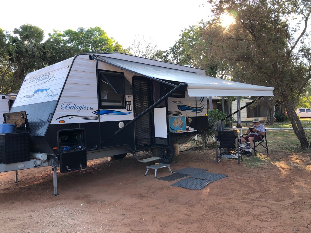 On our way again, we paused briefly at Mataranka, ‘We of the Never Never’ Country. As we came closer and closer to Katherine, I was surprised at how the journey began to affect me. My heart ached when a group of motor biked riders overtook us. The turnoff to Tindal left me feeling like I wanted to scream and as we neared the spot where my darling boy lost his life my emotions were all over the place. I must have still been numb when we came here last time. I did not feel much at all then. We did not stop, but continued on to the lovely Manbulloo Homestead just out of town, on the Katherine River. Somehow our booking was mixed up, so we had to camp the first night in front of ‘The Ringer’s’ accommodation.