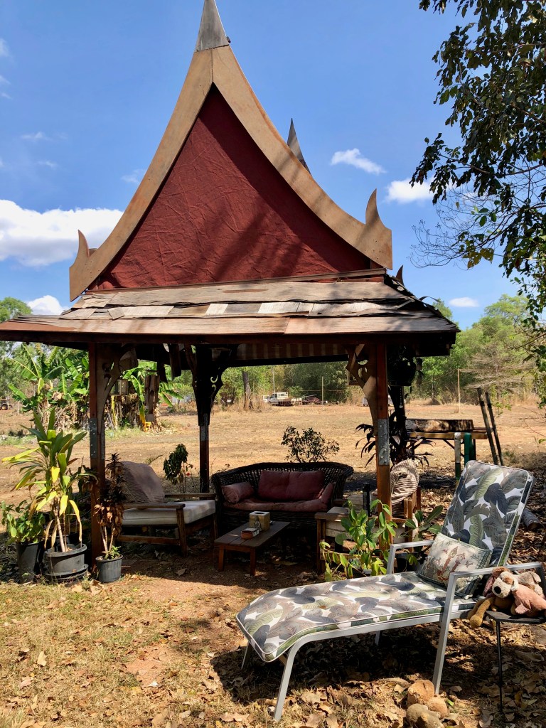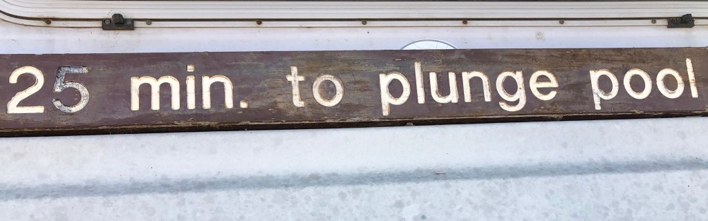 There is also a refreshing plunge pool, which Carli and Chinner seem to plunge in more than the humans here. It is such a scream to watch Carli race at full speed to the side of the pool then launch herself up and into the water. Denise has installed a floating net contraption to enable the dogs to get back out of the pool.