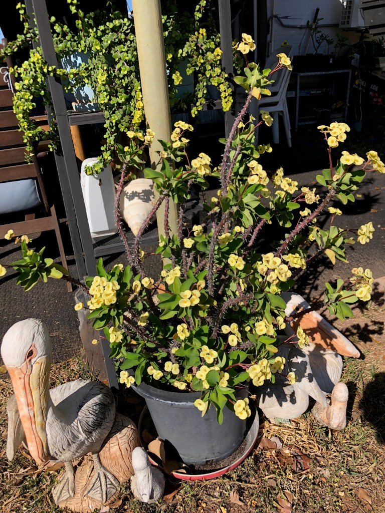 Denise had so many colourful, interesting and pretty plants in her many gardens and pots.It is such a pleasure to amble around the garden and meditate. It won’t be long before there will be an abundance of bananas at Coomalie.