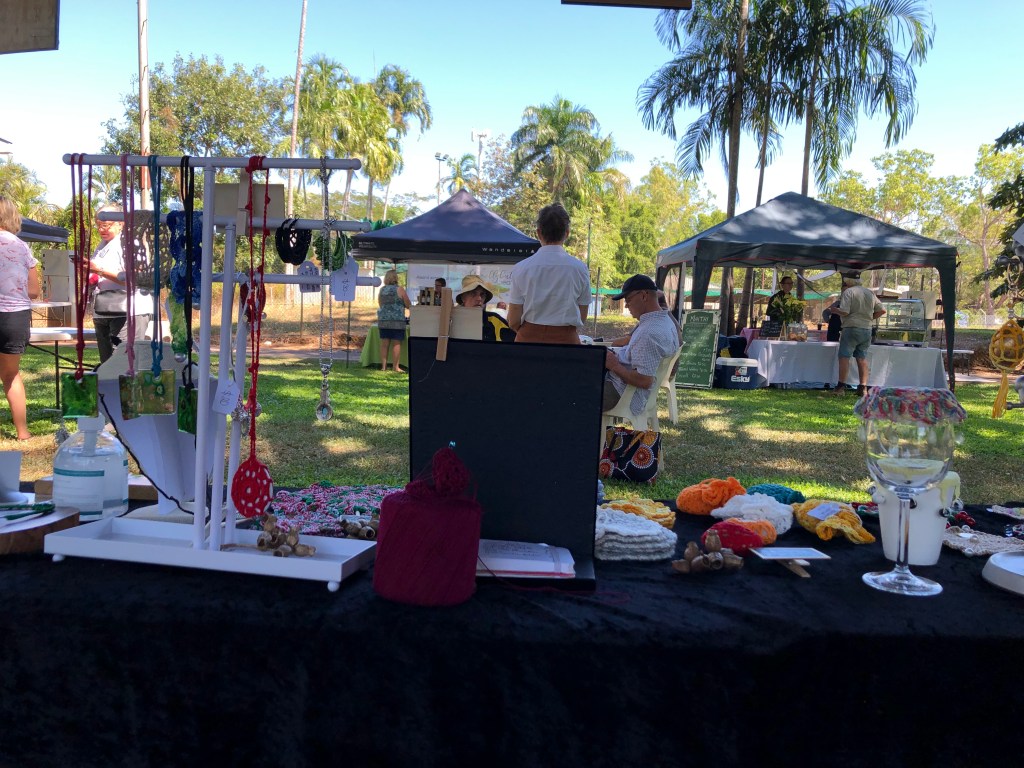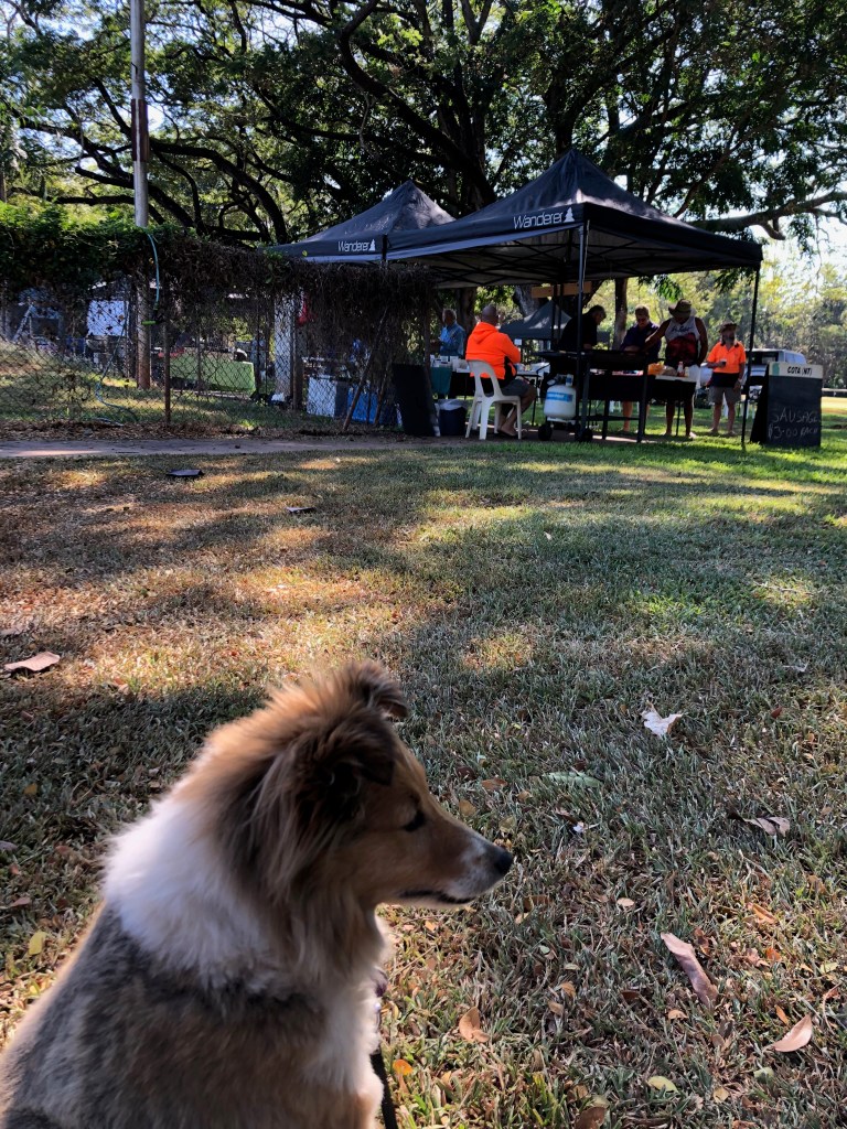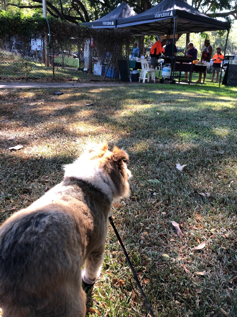 Today was THE day for the Batchelor Town and Country Markets. Norm had volunteered to take James’ place on the Men’s Shed Sausage Sizzle. Denise has a stall there where she displays her beautiful craft work.Meanwhile, Rosie and I j went along to just amble around and enjoy.