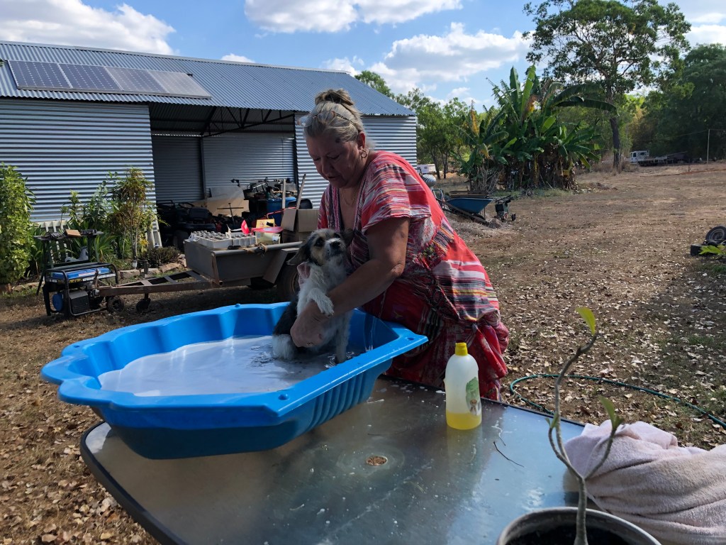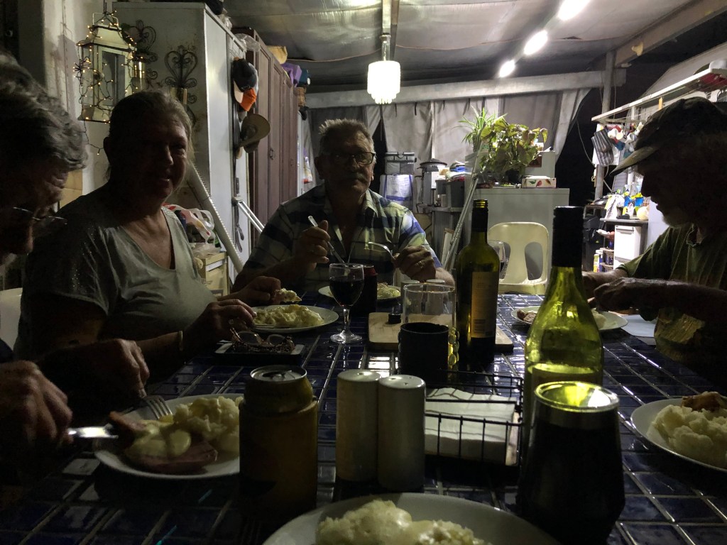 On Tuesday, we drove up to Coolalinga the nearest sizeable shopping centre to here. I was pleased to pick up a few more cool casual dresses, to cope in the heat a little better. By the time we had visited both Woolies and Coles, we did not return home until mid afternoon. There was still enough time for Norm to bake the Russian Silverside that we bought in Katherine. The Coomalie family enjoyed it with lots of mashed potato, cabbage and Denise’s special white sauce.