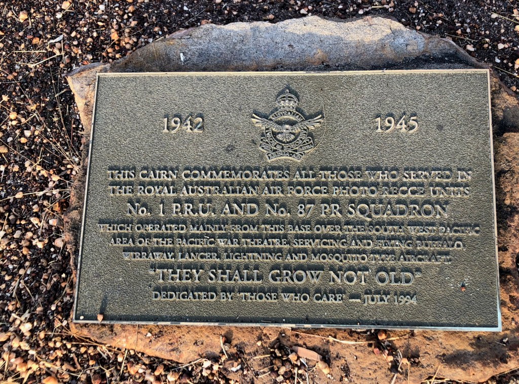 Rosie and I managed to walk the length of the runway this morning, pausing to read and photograph the various plaques along the the way. I remembered particularly the one commemorating the crew of the mosquito, which crashed on take off on 3 August 1945. The pilot, Squadron Leader Gillespie died two days later as a result of his injuries, however, The other person on board, FO Haymes survived following treatment for severe burns.