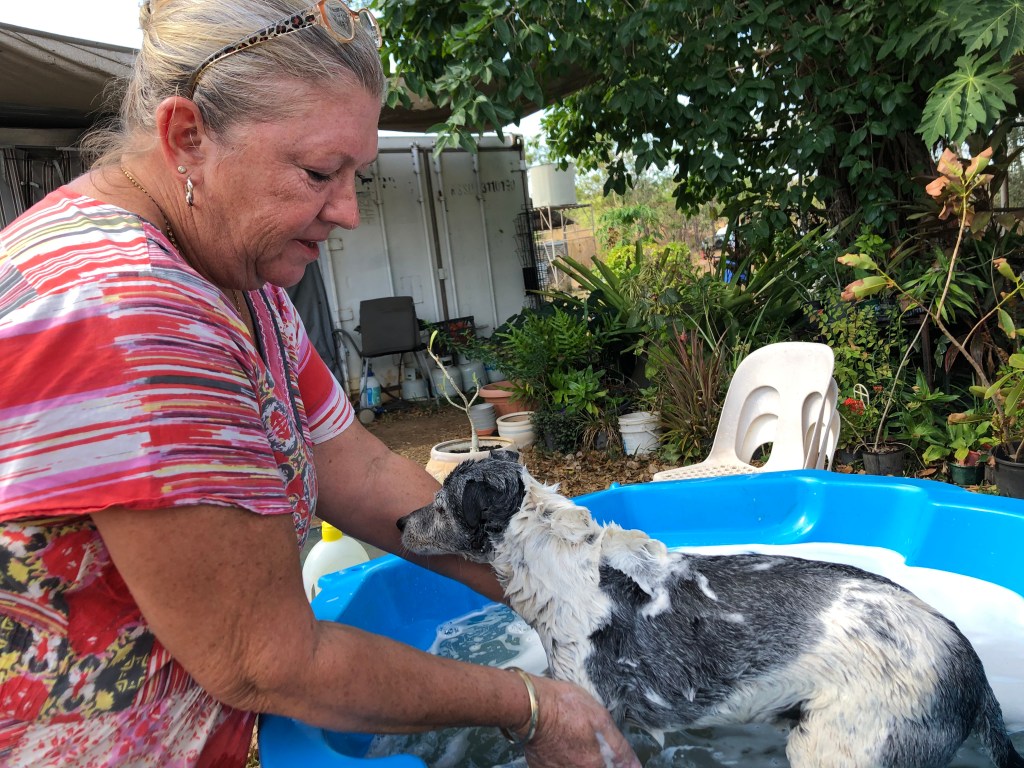 As was forecast the temperatures here have increased to an almost unbearable 35 degrees. All the dogs were looking most unimpressed, particularly Rosie. Denise has a great toddlers pool in which she washes her dogs. Before Rose had time to think about it, I had it full of water and in she went. She emerged, a much happier dog. Denise then washed Conan, Chinner and Carli. I think they were all very relieved to feel cooler.