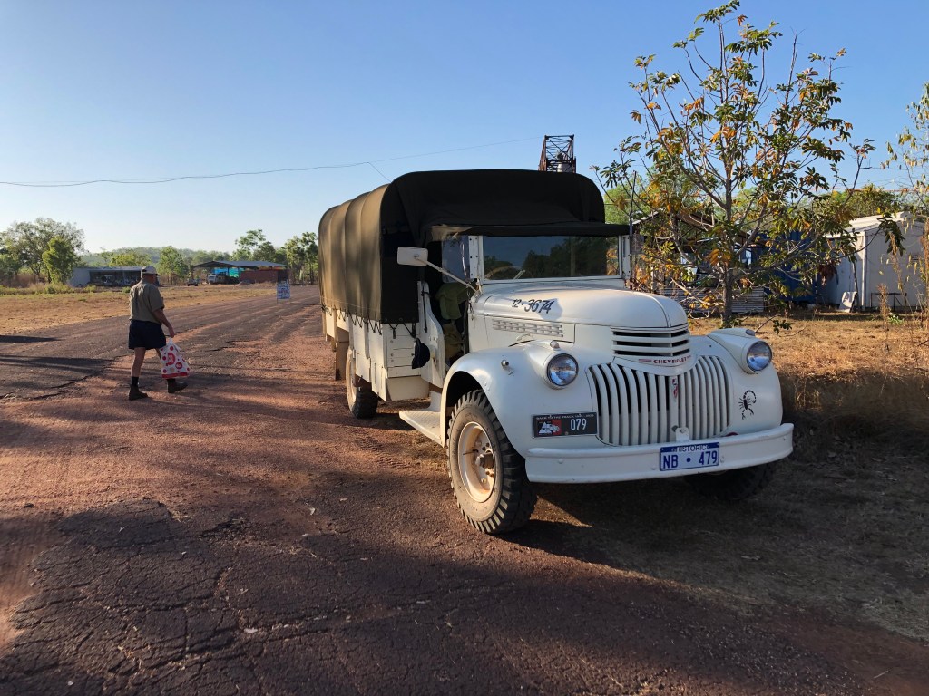 Finally the day has arrived when the convoy of restored WWII Allied Military Vehicles are scheduled to arrive here at Coomalie to stay the night. They are re-enacting the military supply convoys that travelled from Alice Springs to Darwin during the war. The route became known as ‘The Track’. Although the number of participants has been reduced because of this ongoing COVID situation, there seemed to be a steady stream of them making their way onto the airfield all day.