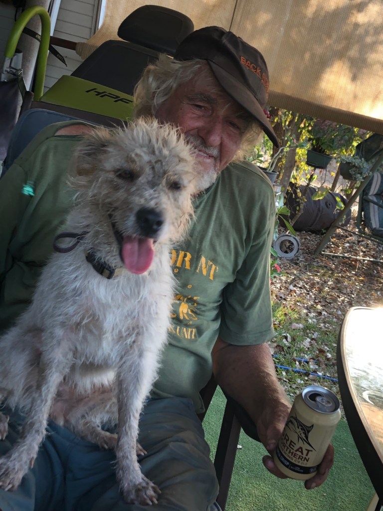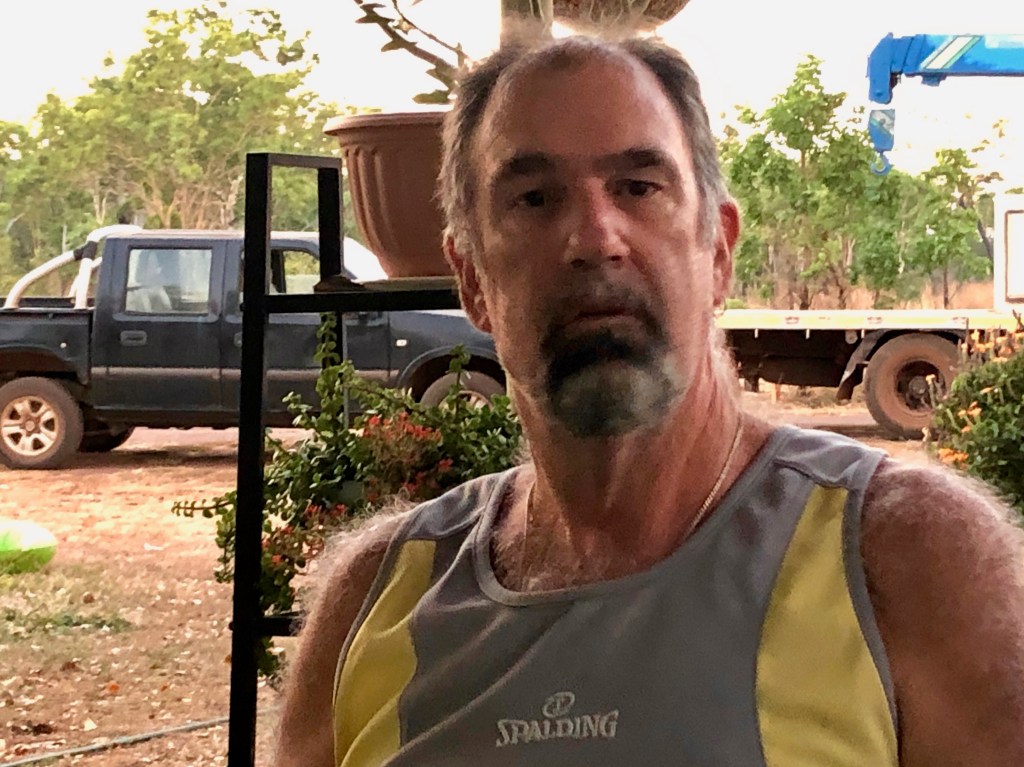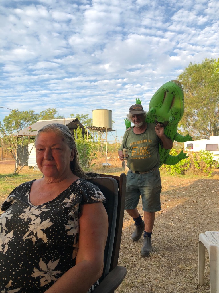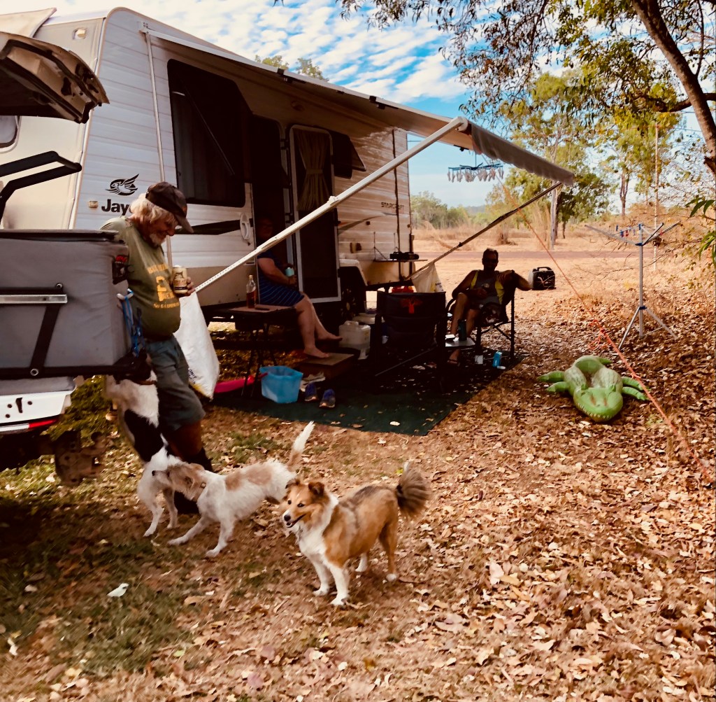 Early that morning we were visited by the wild Crocodile man of Coomalie. The dogs were SO excited by his appearance, they ran round and round in circles, barking, tails wagging ready to greet this incredible apparition with joy.