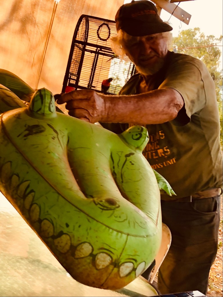 Coomalie has settled back down to a slower, quieter more reflective mood, after all the excitement of the brief couple of days ‘invasion’ of the WW2 Military Vehicles and the mighty old Flying Machines. Most of the people who had arrived in all manner of wheels from vintage motor cars, to campers, caravans, trailers, tents, swags and even one road train (!) have now packed up and moved on. We who are left have been affected by the current three day COVID lock downs in Darwin and Katherine. One couple, Dave & Helen made a dash for home in outer Darwin yesterday when they remembered that their one legged love bird was still at home and could be running short of water, not to mention the precious orchids! SO they made a dash for home. Later they reported in that they were home safely and the bird and orchids were doing well.