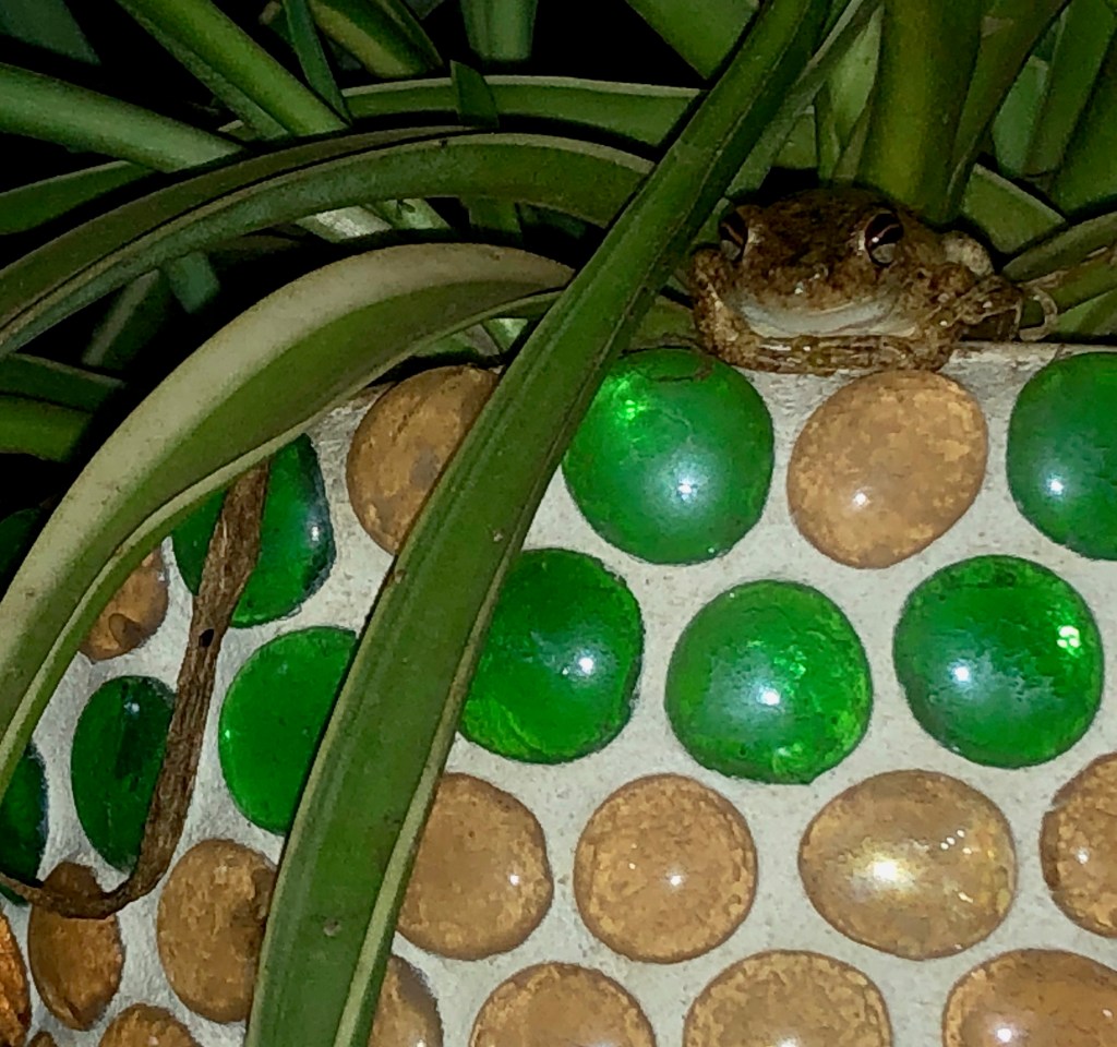 They were joined by another solo performer, which sounded similar, however with much shorter trills and longer pauses between calls. James told us that it was the Brown Ground Frog. Denise then introduced us to her pet who lives in one of her pot plants on the Kitchen ‘Cupboard’