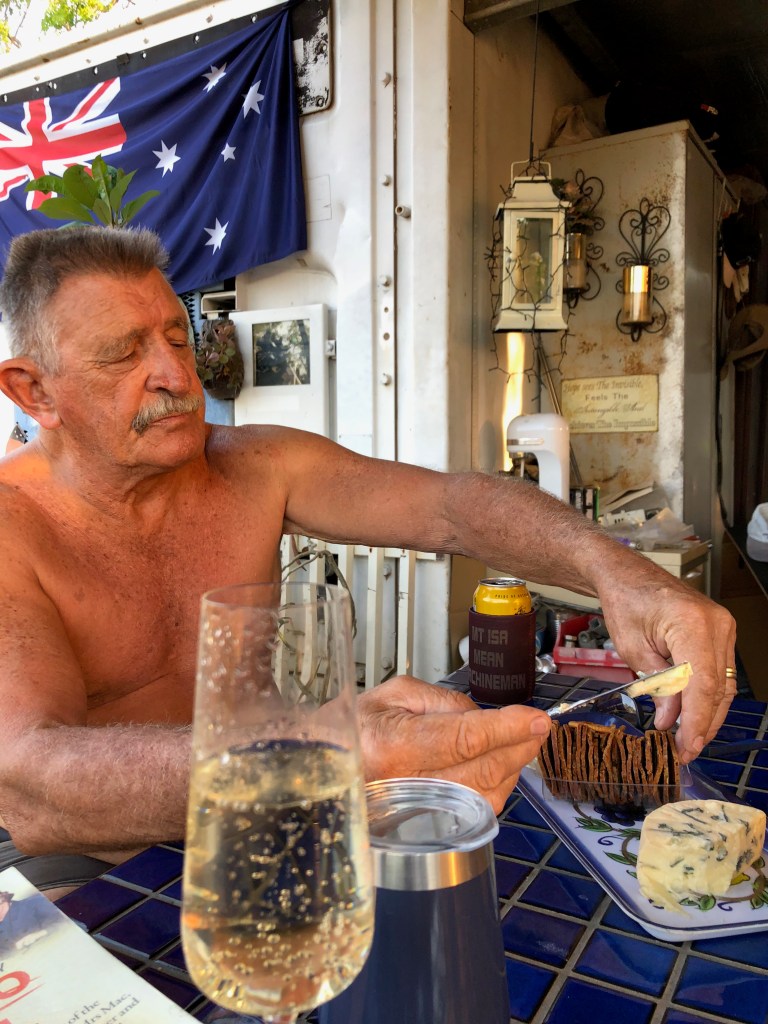 Life around camp has continued along the usual theme of mornings from our ‘verandah’, and evenings together enjoying each other’s company with drinks, nibbles and meals at James’ & Denises’. The days in between have been spent exploring more of Comallie or lazing in the plunge pool, or popping into the Batchelor Pool for a dip with Denise, or reading one of the many books that Richard has leant us.