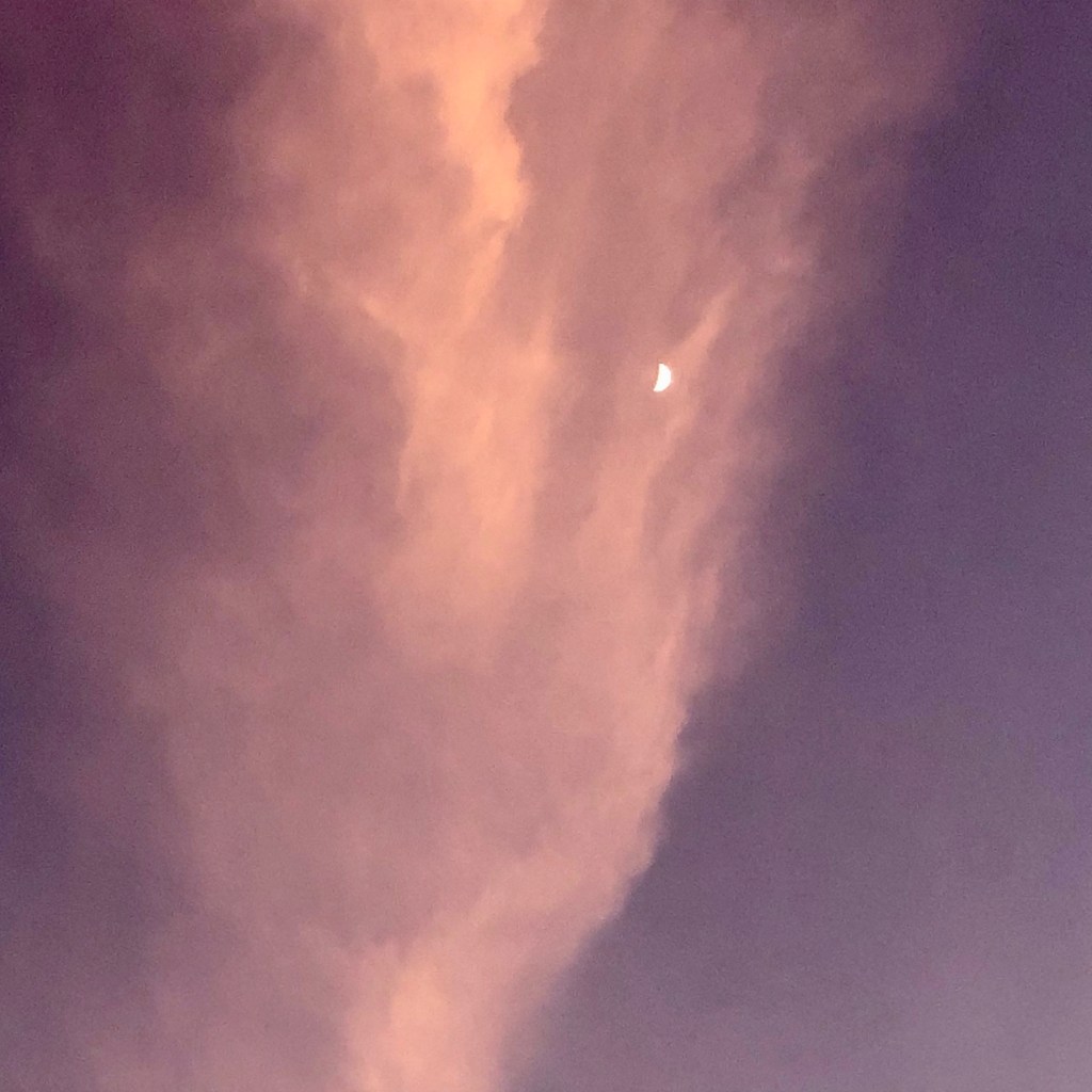 Rosie & I have continued to enjoy our early morning amblings as the sun rises, sometimes in the mist and at other times on bright clear mornings such as this morning when I enjoyed the most glorious pink, purple sunrise with the half moon still aglow in the sky.