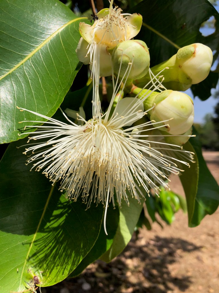 This morning we drove into Batchelor to visit James and some of his friends at the Men’s Shed, which is in the old Batchelor Fire Station. I was blown away by the beautiful blossoms on the nearby Red Bush Apple Tree (Syzgium suborbiculare.)