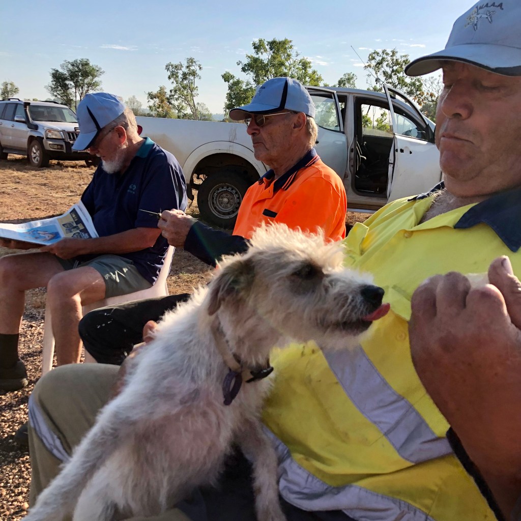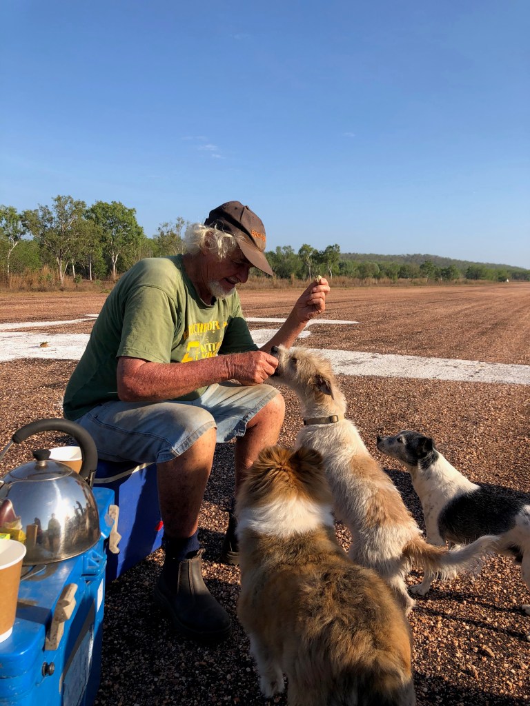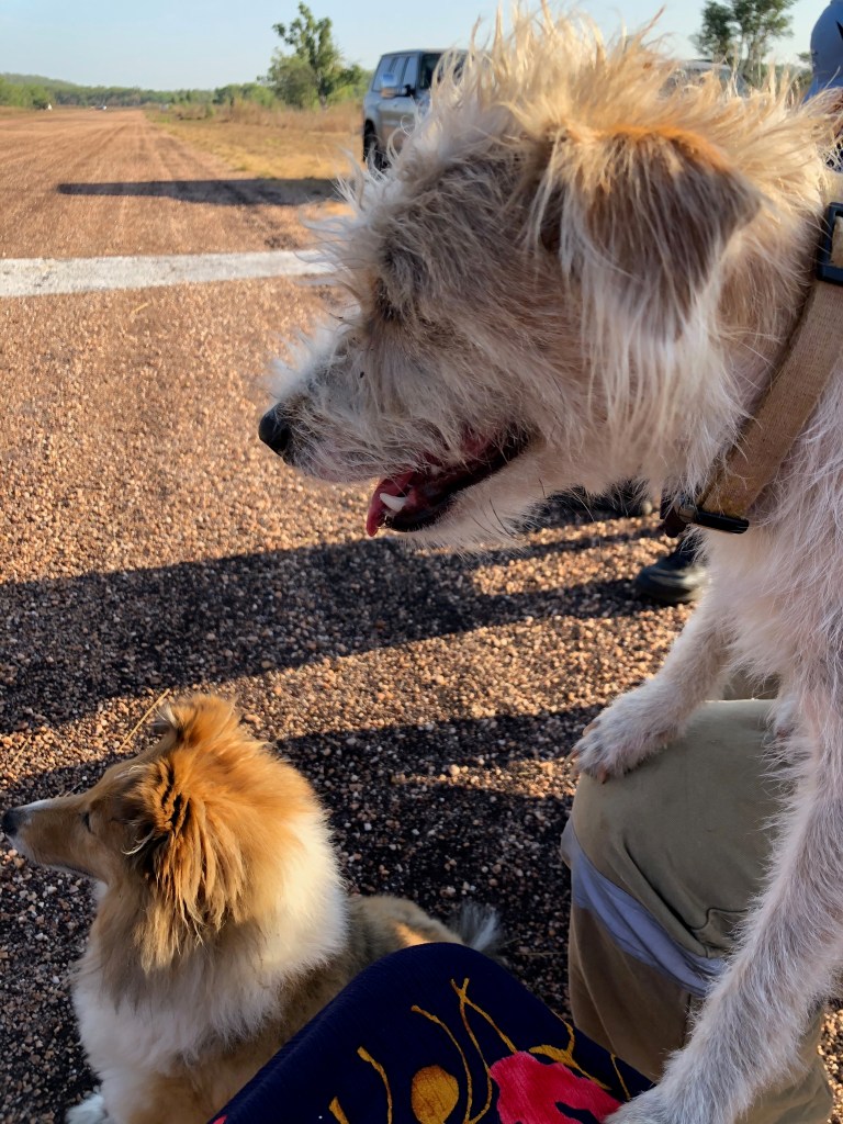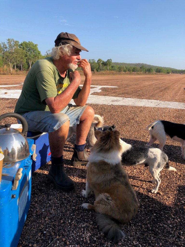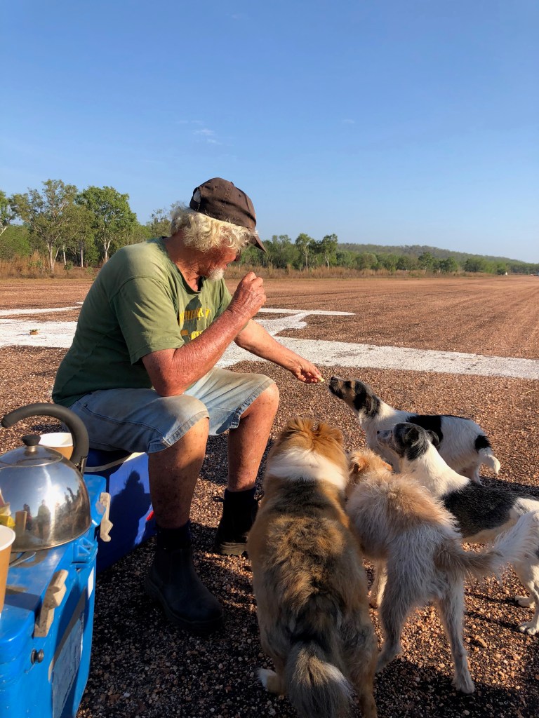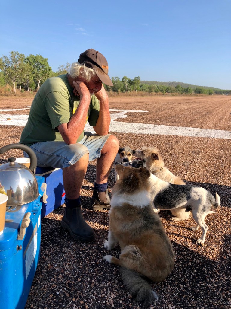 Richard arranged a small memorial gathering today, on the anniversary of the demise of the last Lockheed Lightning plane A55-1, which crashed here at Coomalie and burst into flames when the nose wheel collapsed upon landing. The pilot, Flt/Lt C. J. Rush managed to escape with burns to both arms. We gathered early in the morning, beside the image of a Lockheed some distance down the runway.
