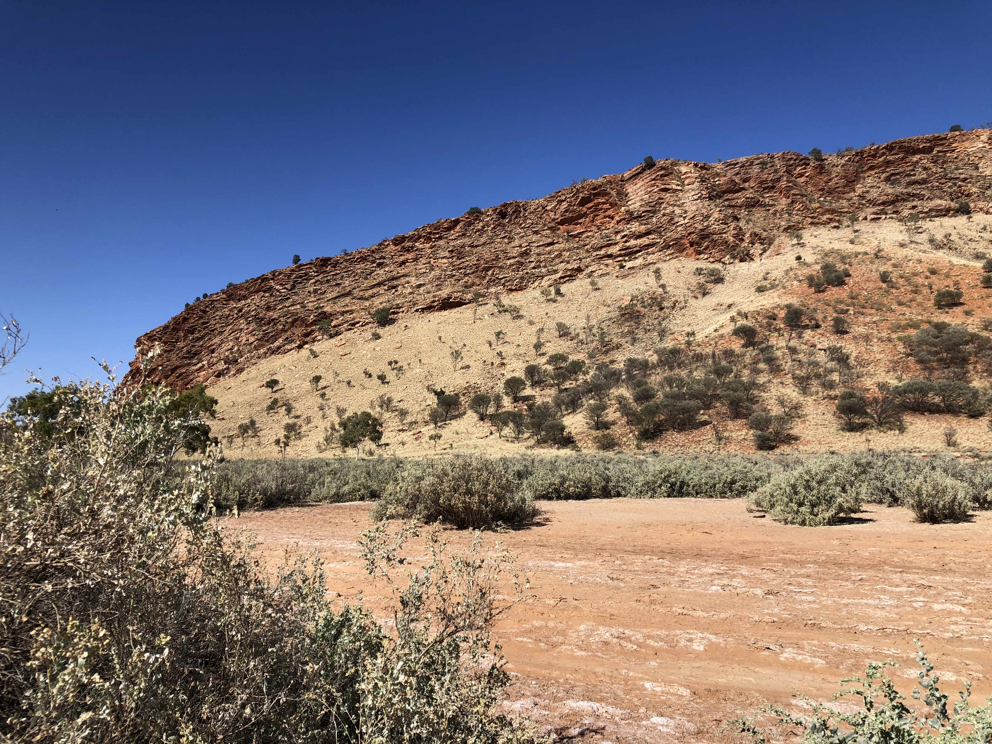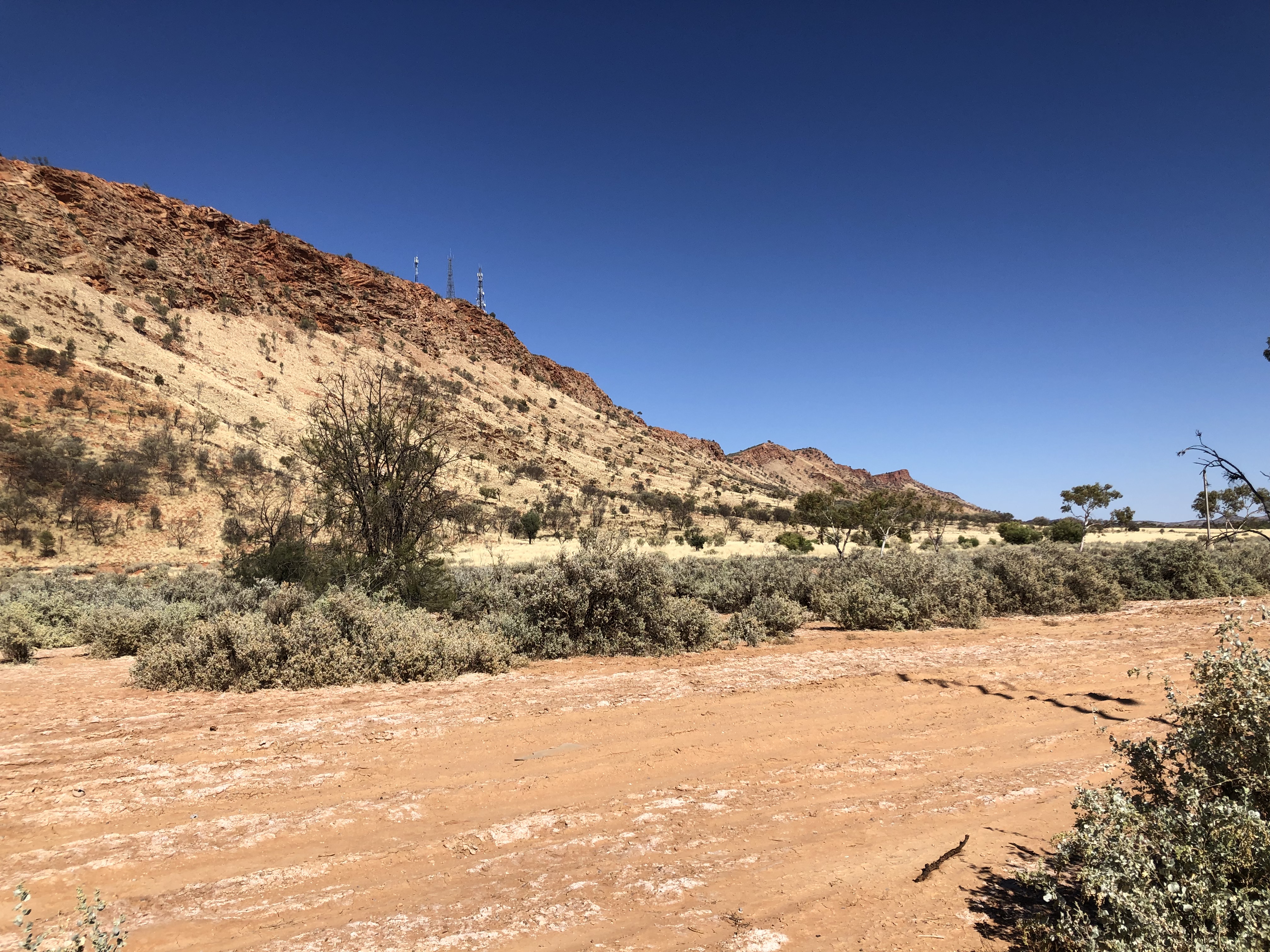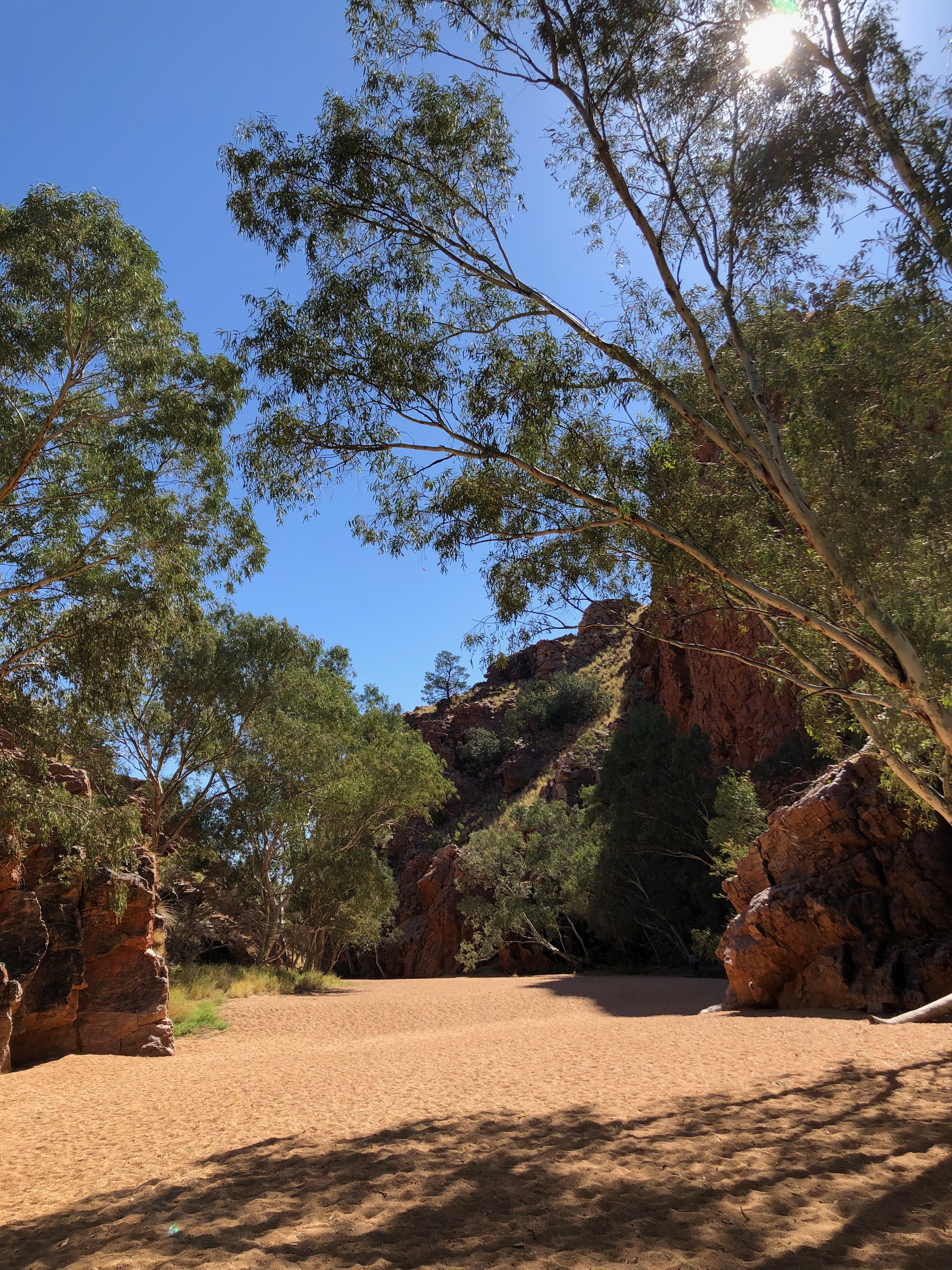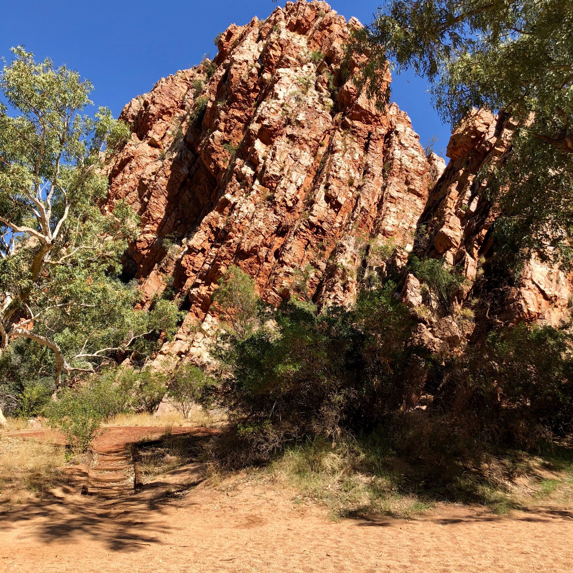 As we drove along the Ross Highway, I found myself feeling overwhelmed by the breathtaking beauty of the deep reds, oranges, pinks and creams that were reflecting from the spectacular, sunlit ranges through which we were driving.