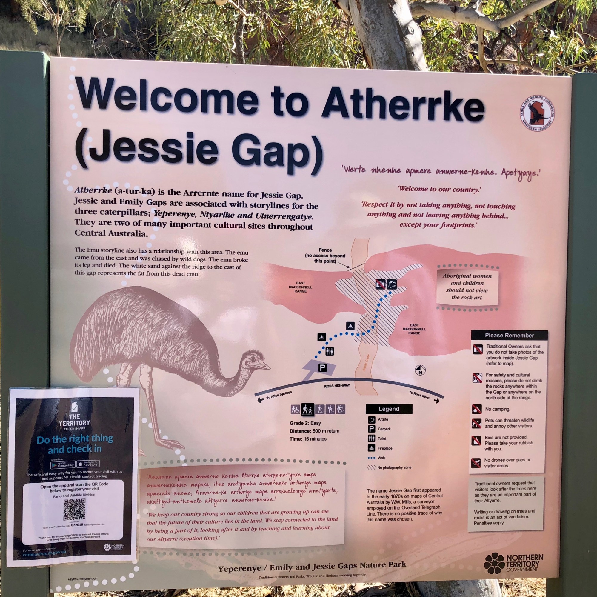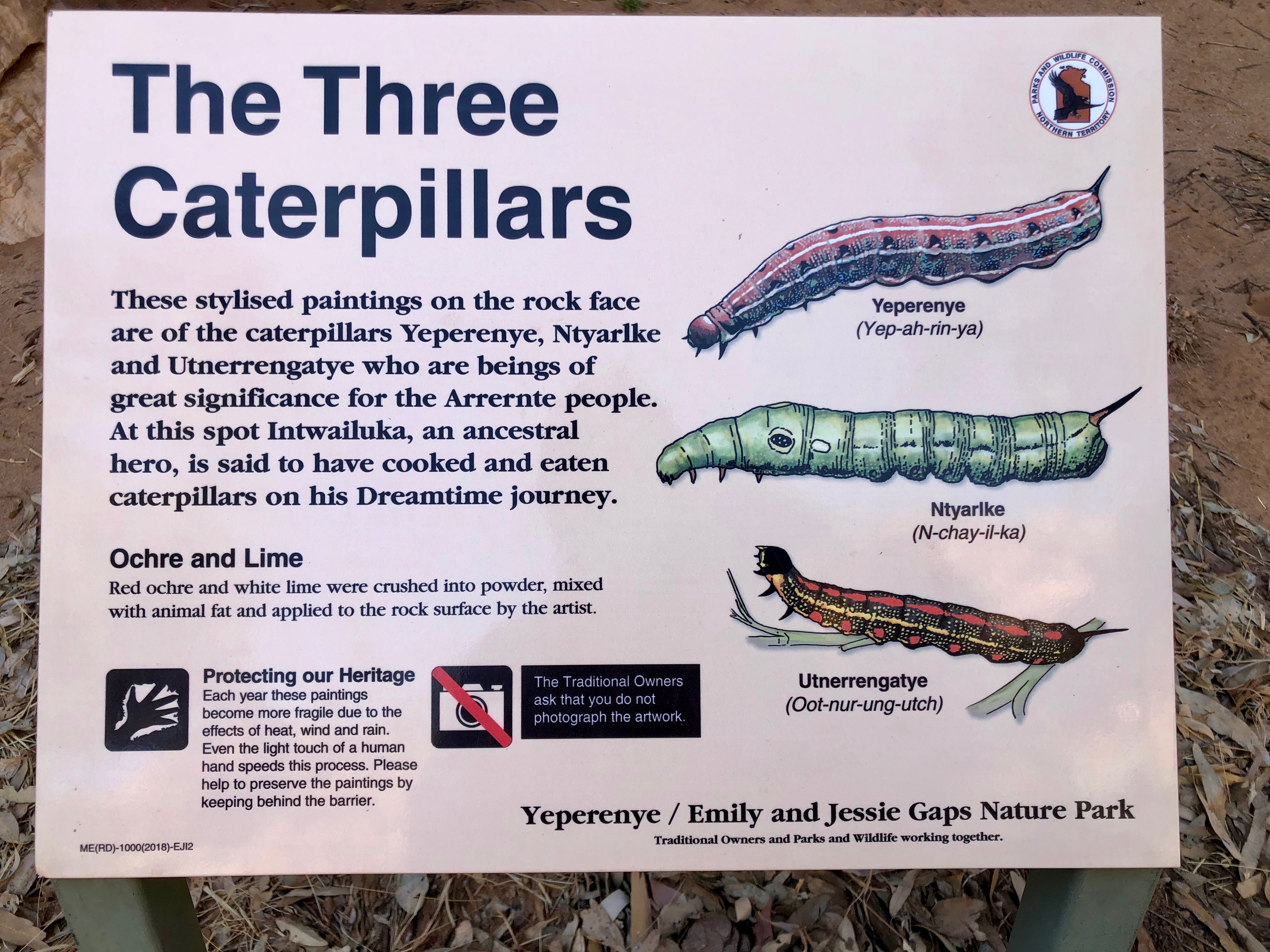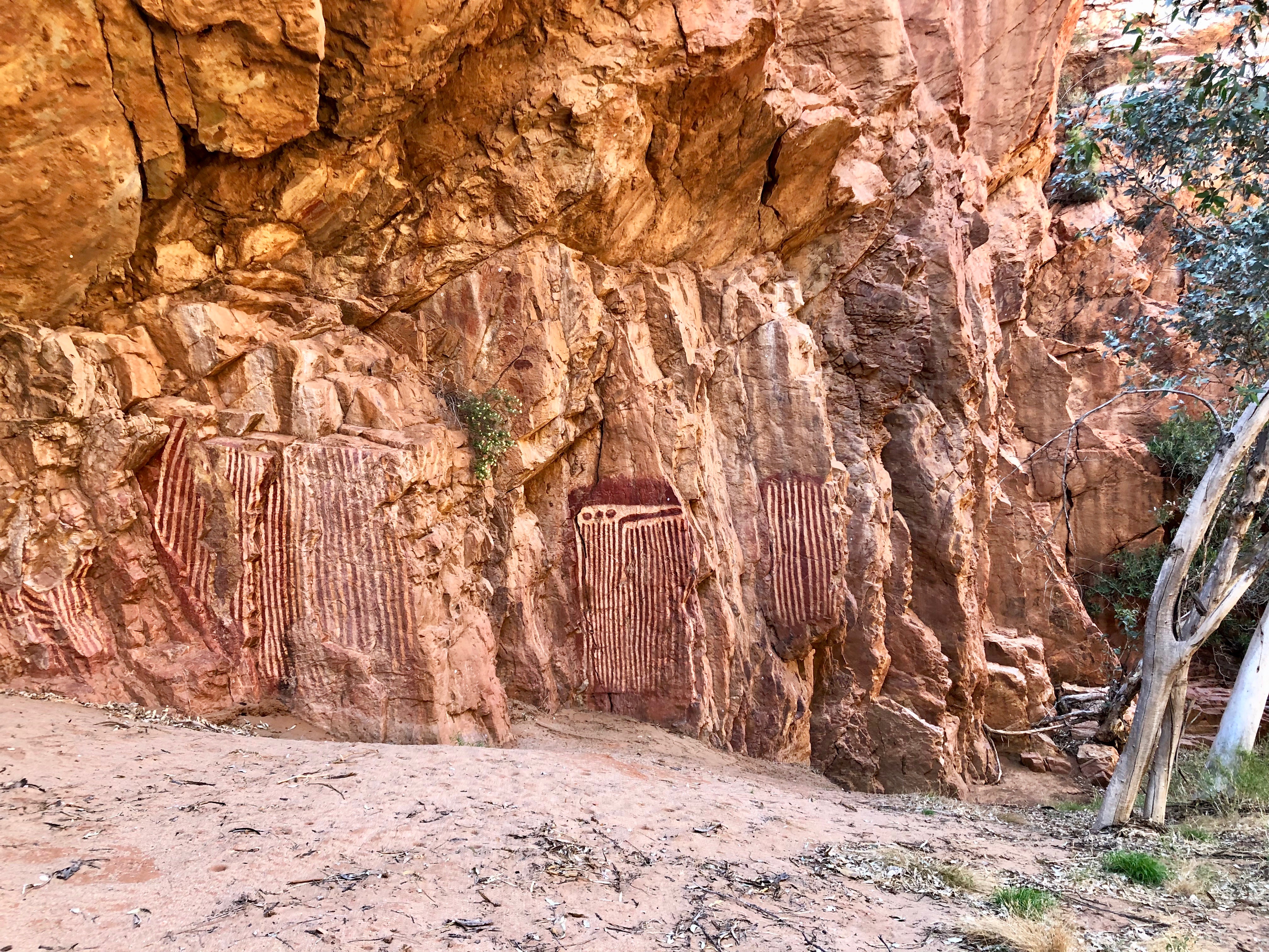 Emily Gap, our first stop, is only 15 kms from Alice Springs. The local Arrernte people recall the caterpillar dreaming story, which tells the story of how the spectacular East and West MacDonnell ranges were formed. In this gorge we saw the rock art depicting the caterpillar dreaming stories.