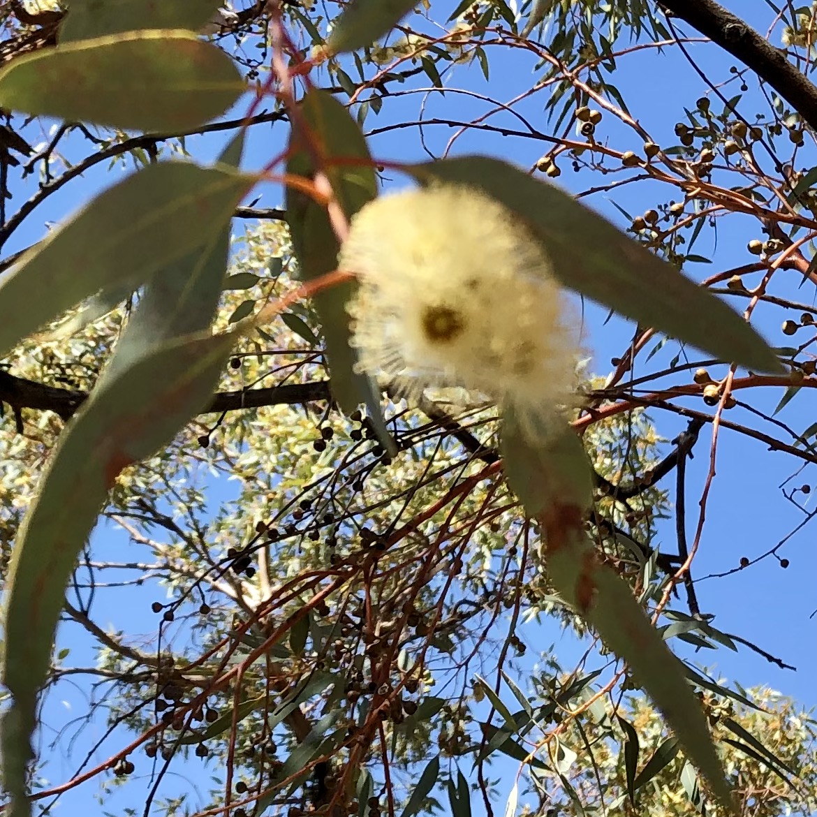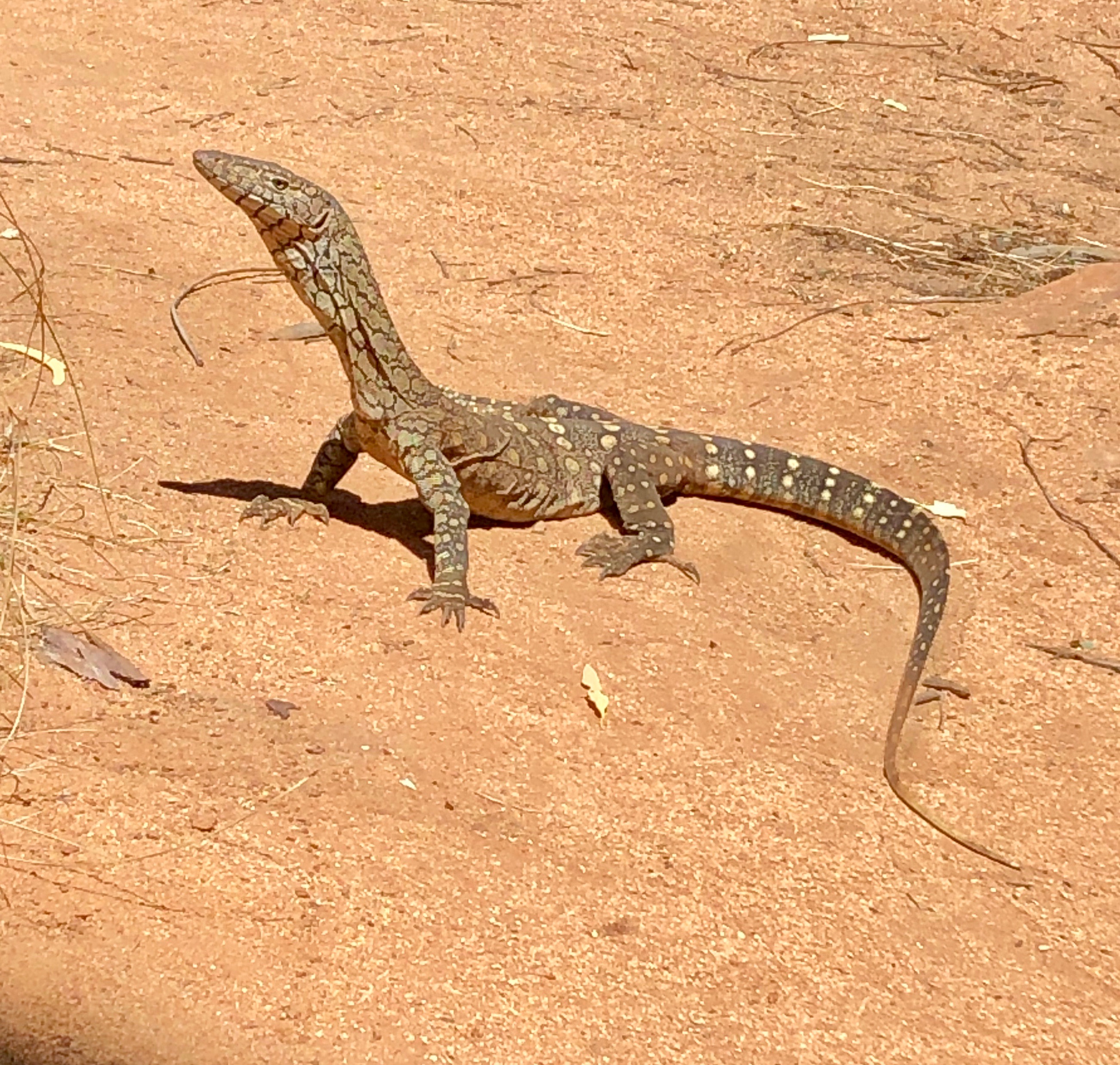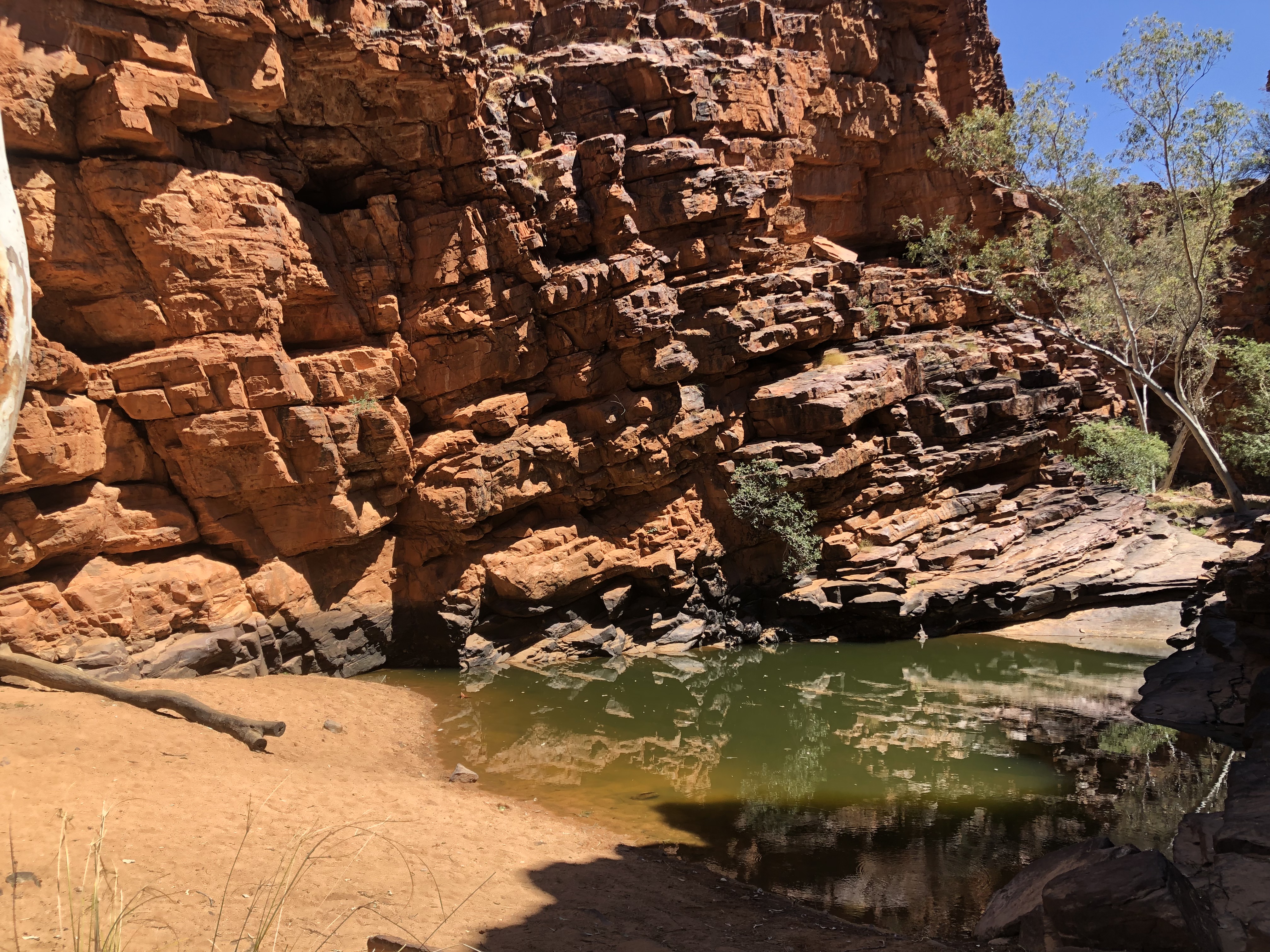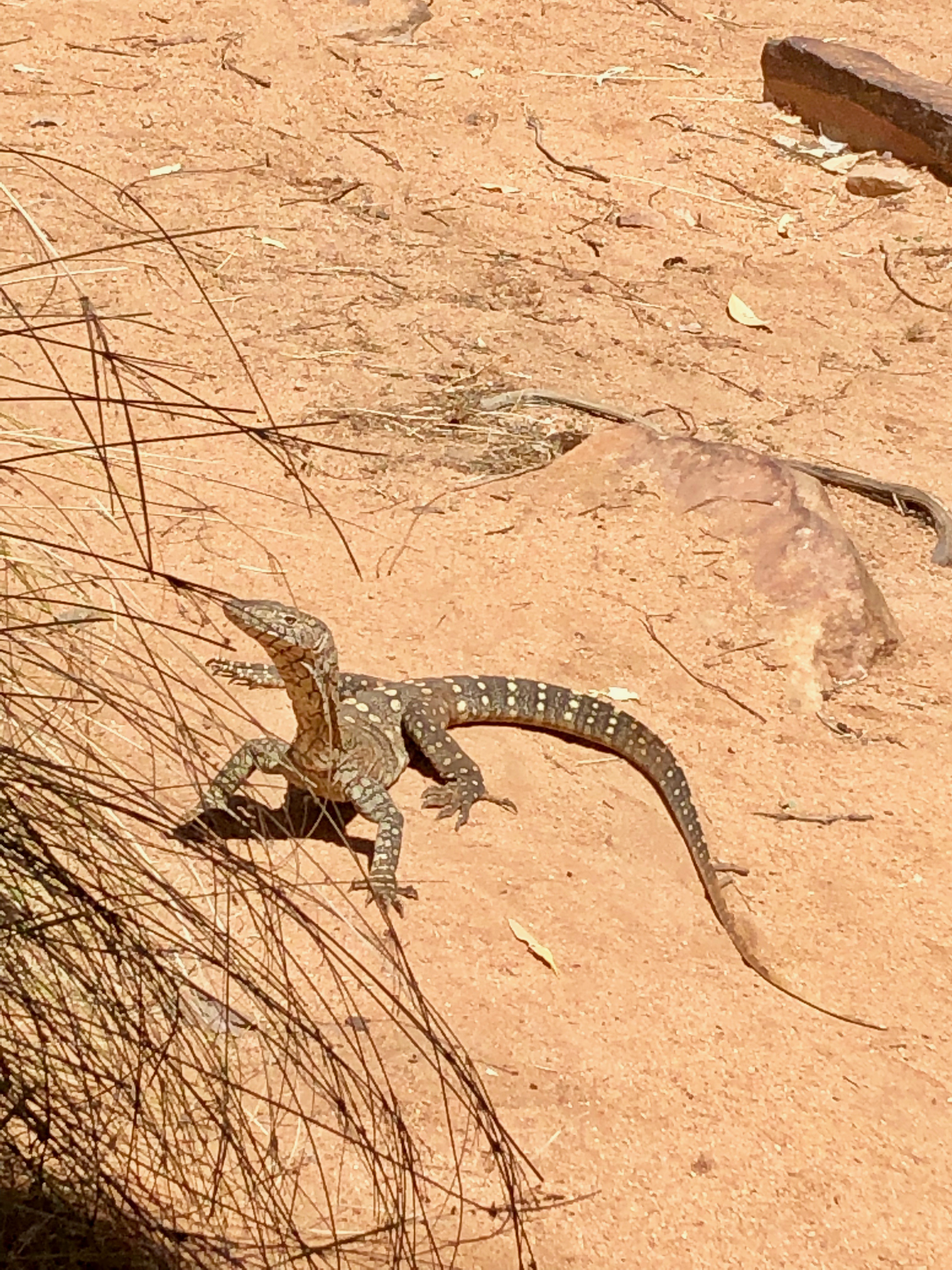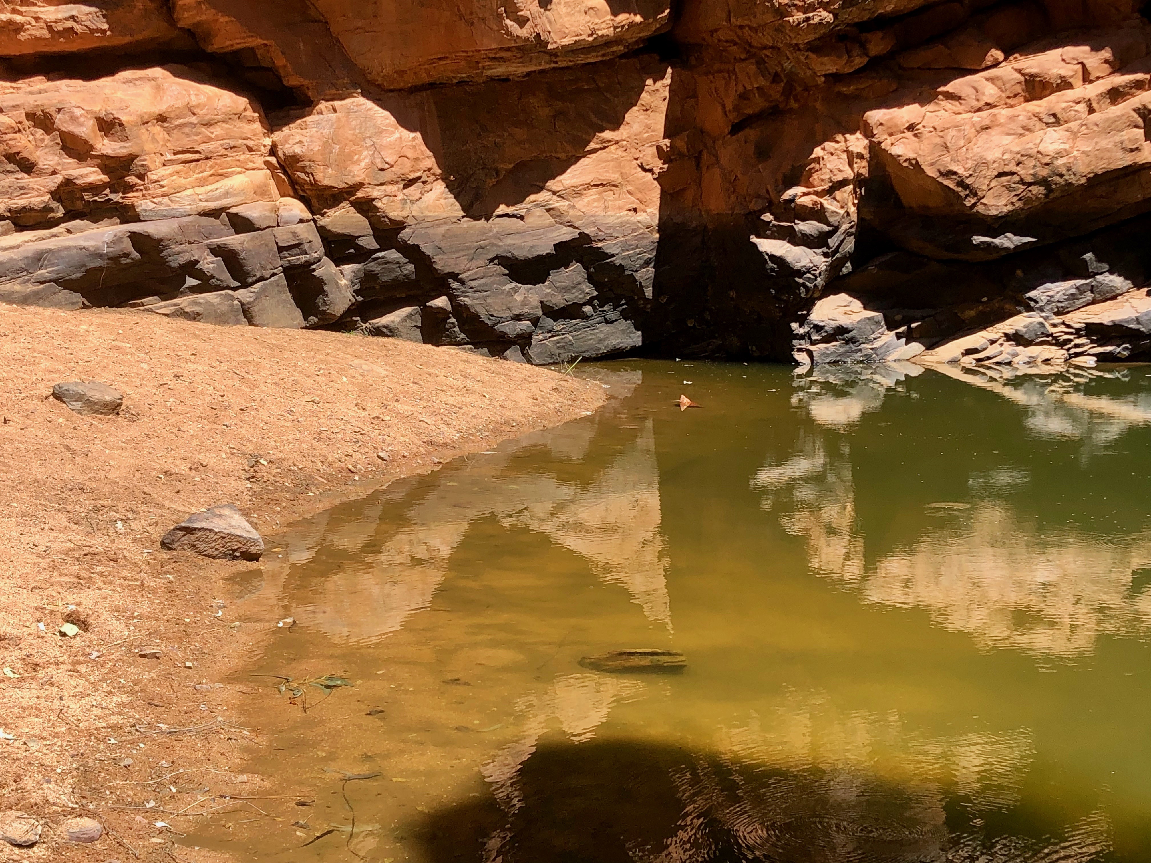 There is a a short walk from the camp ground along a rough track. We were thrilled when we arrived there to be greeted by a resident lizard (Central Netted Dragon), who had been thermo-regulating on the sand beside the water, at the base of the tall cliffs which protect it. There were lots of bees, wasps and other wings insects buzzing over the surface of the water and pausing ever so briefly to take a drink.