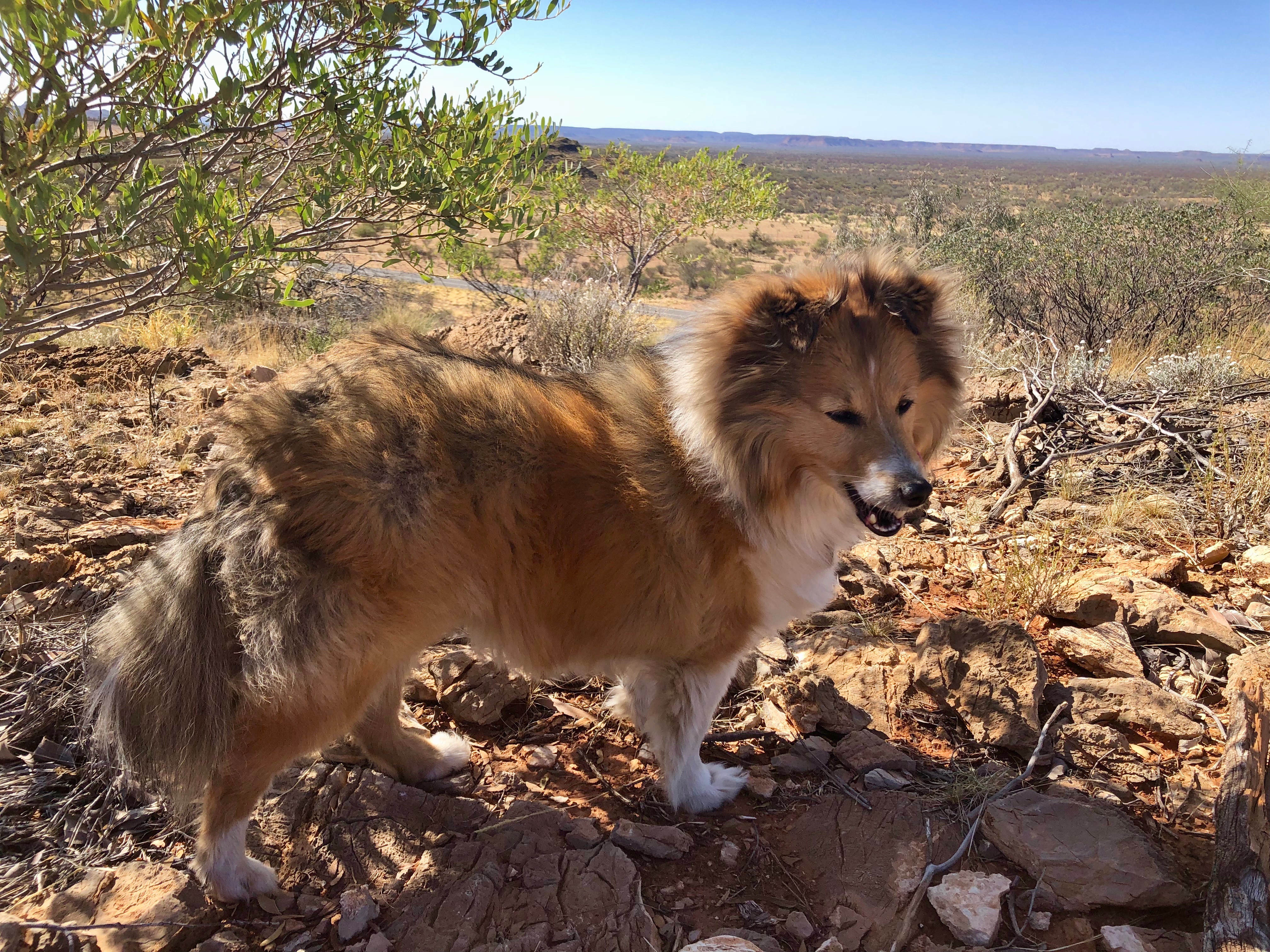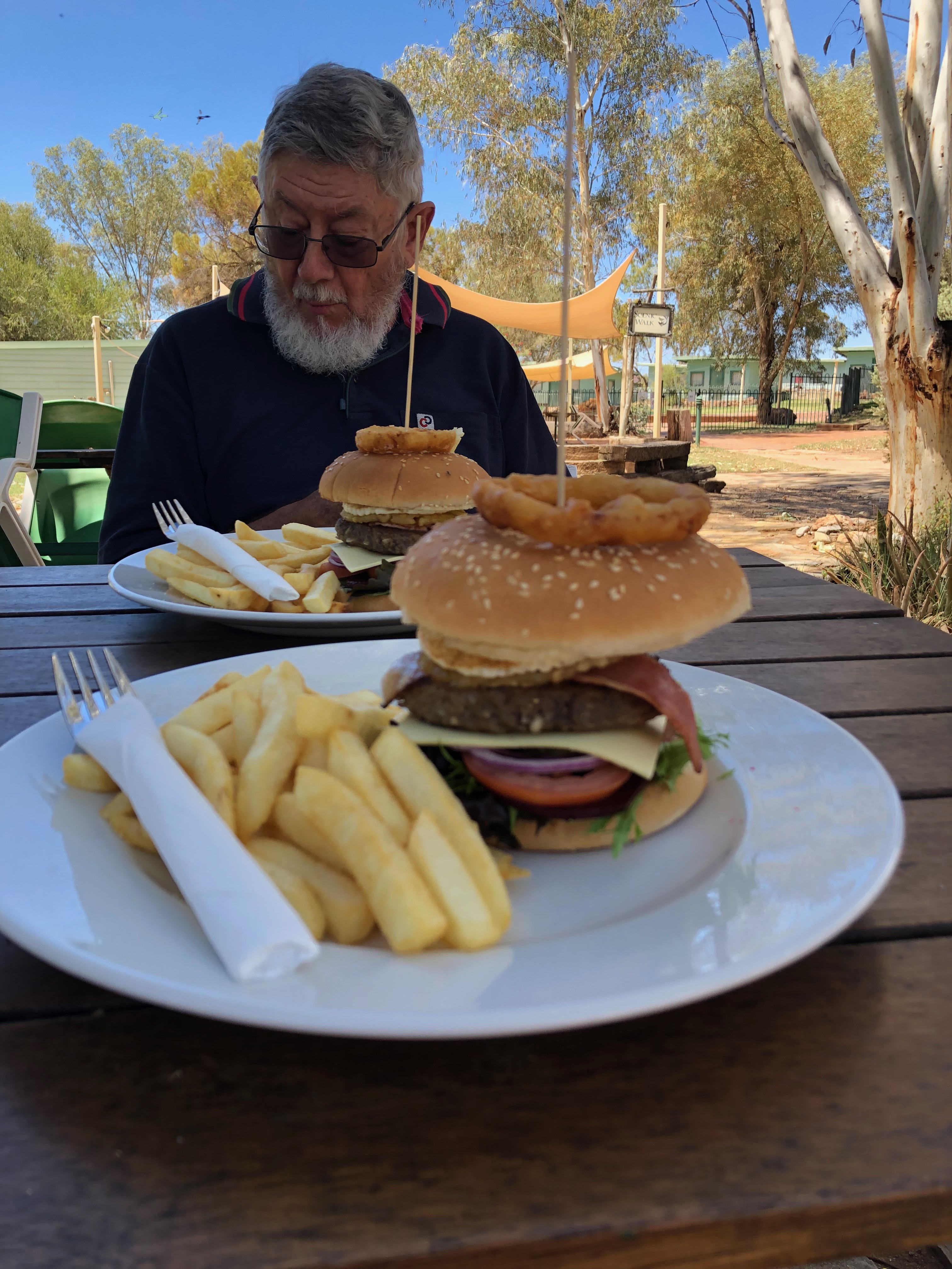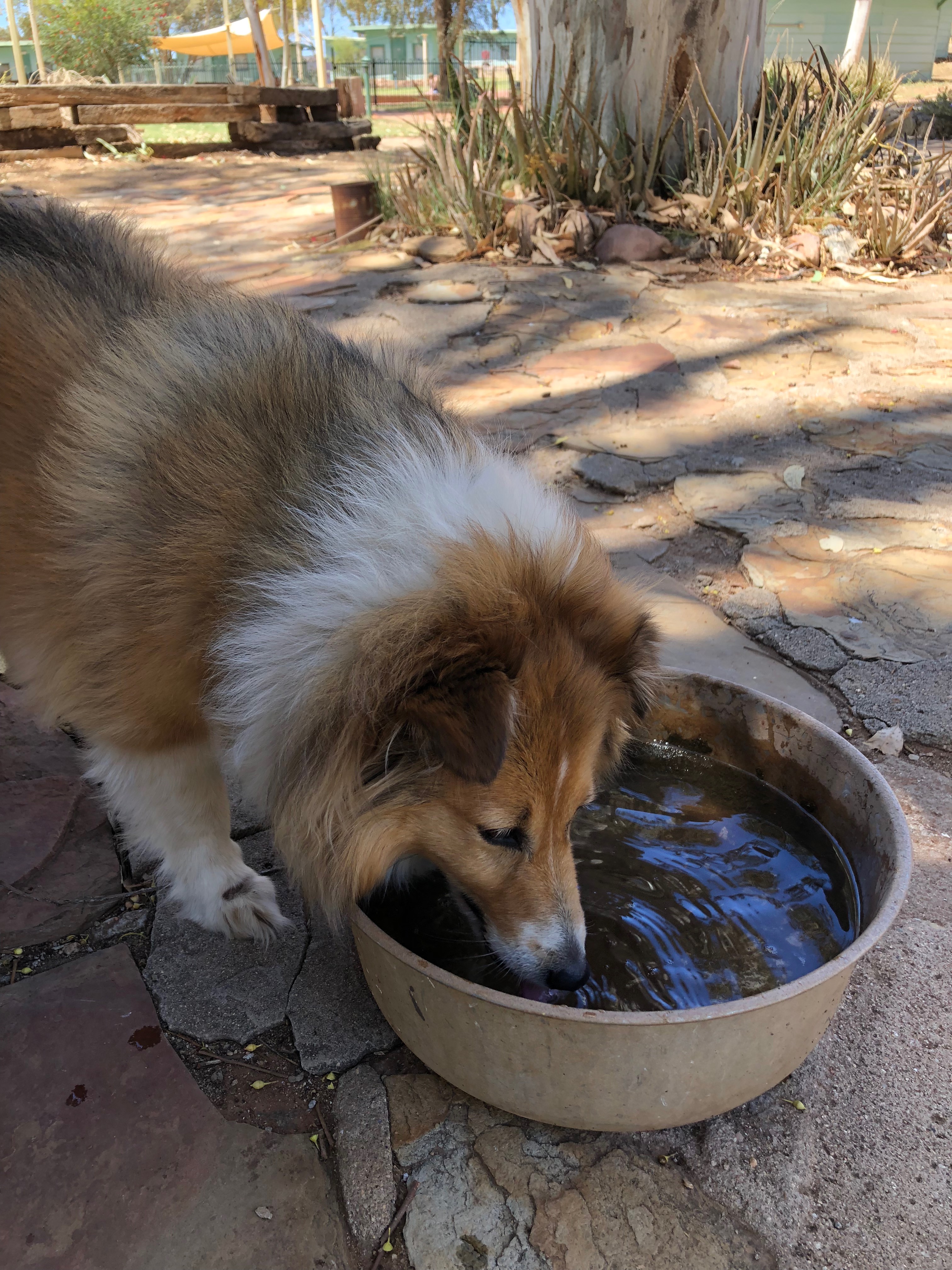 At the resort, the old homestead has been protected by buildings that encompass it and form the hotel. It was wonderful to see how well the old rooms have been restored and are used. We enjoyed a lovely Ross River Burger (HUGE) under the shade of the trees near the pool and lovely lawns and gardens. Rosie made another new friend with one of the local dogs.