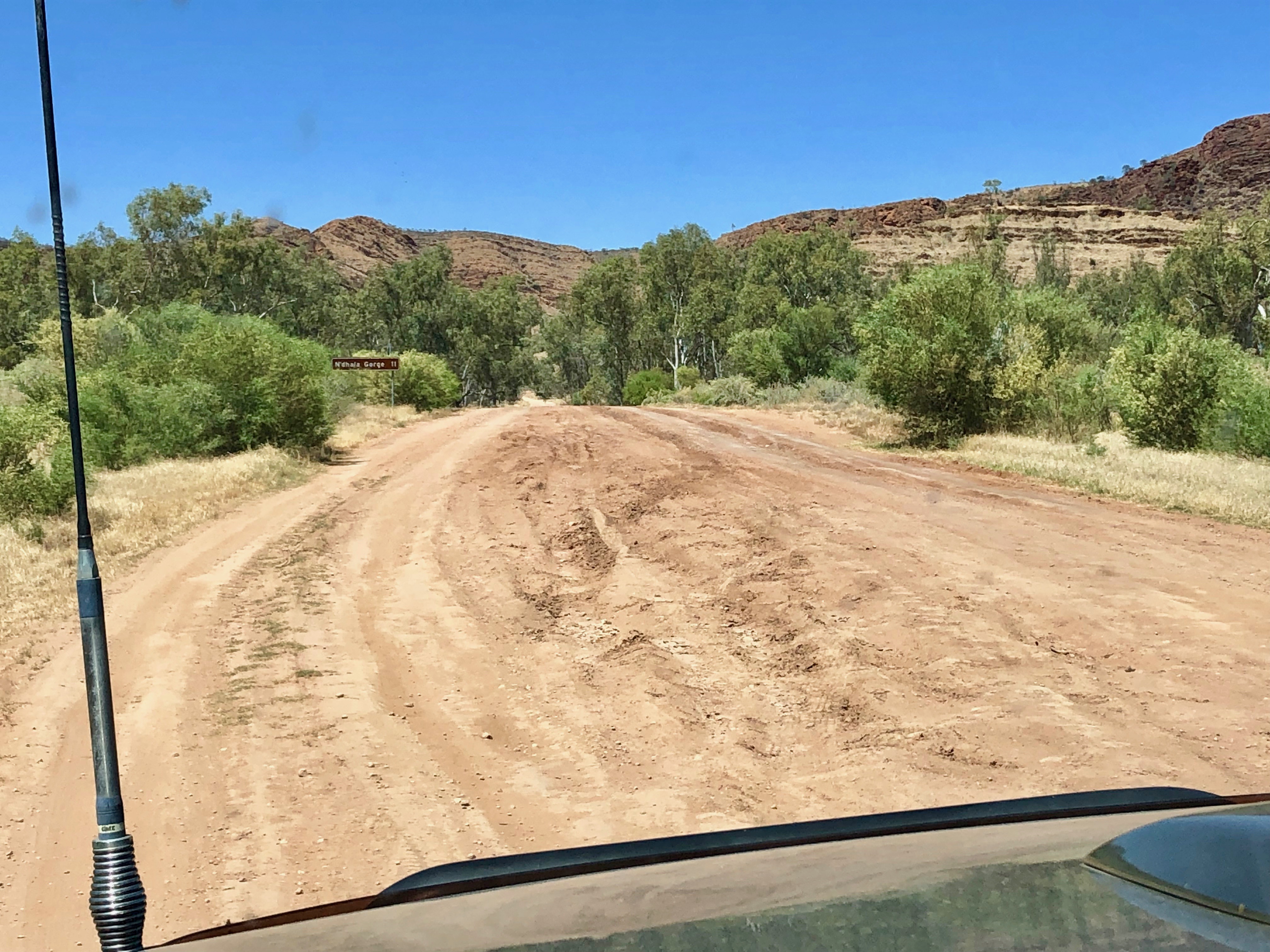 The drive through Trephina Gorge followed the river bed for the most part. The track had some smooth sections, with others deeply corrugated, sandy or rocky. At the end there a several camp grounds which looked well set out. We didn’t take any of the walking trails, as we had Rosie with us and dogs are not permitted there.