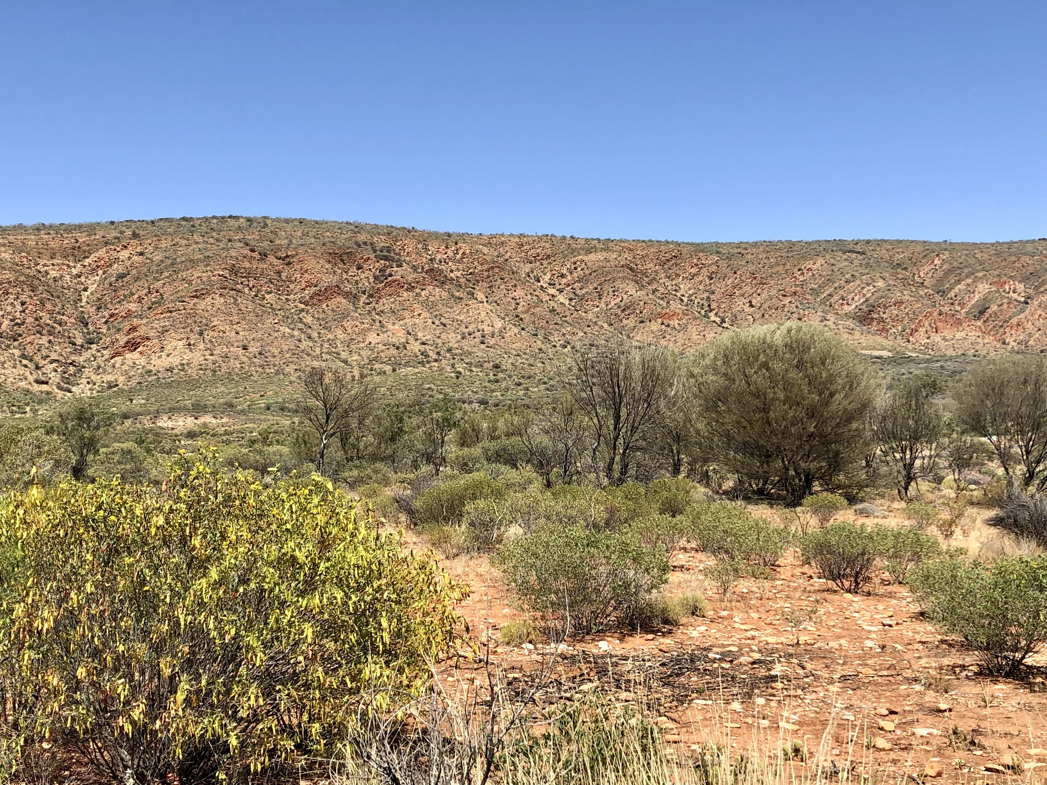 Back on the road we continued past more of my favourite landscapes until suddenly there in the distance was our first glimpse of the beautiful Mount Sonder. There are many eye-catching watercolours of this mountain painted by Albert Namatjira.