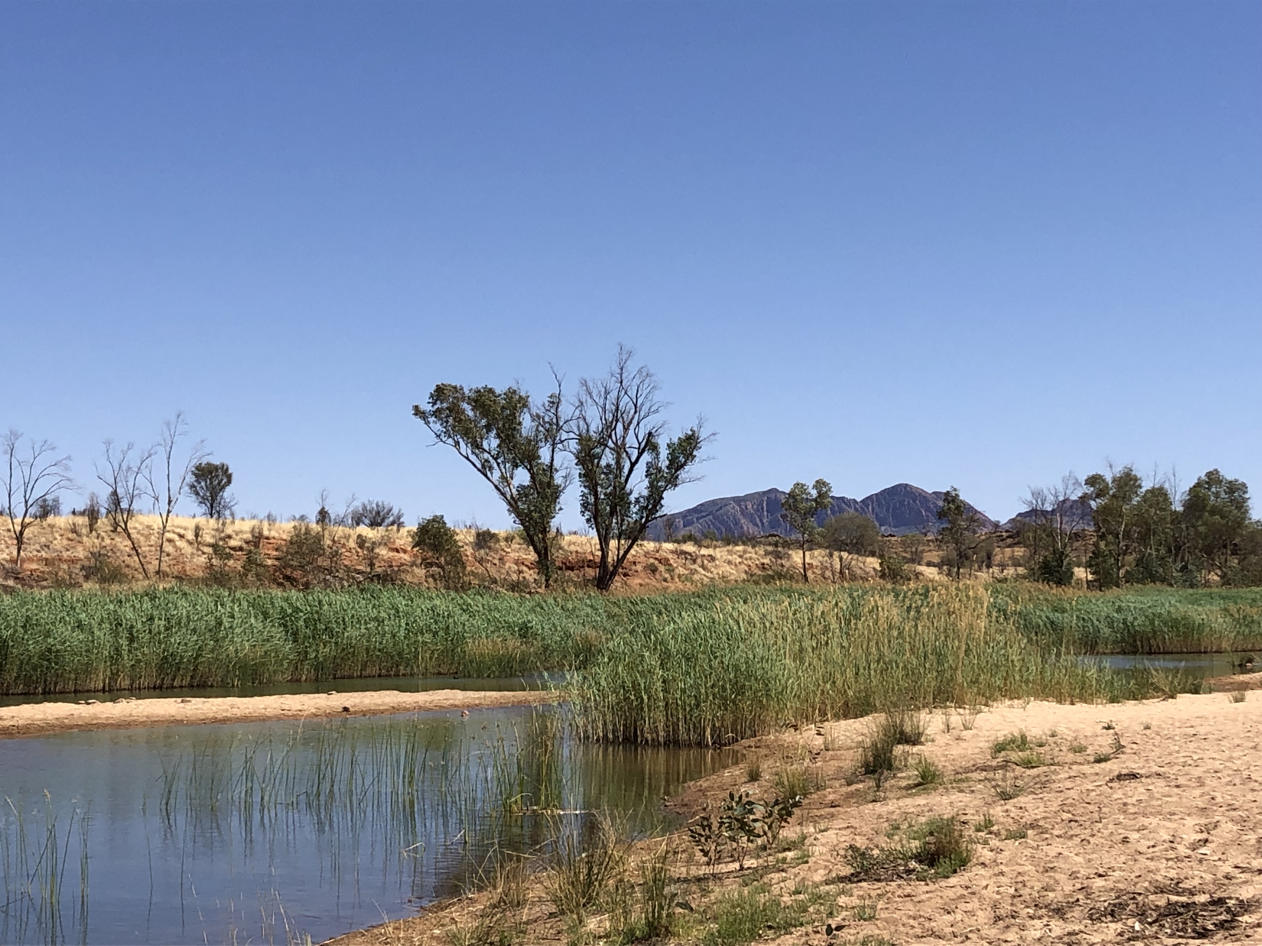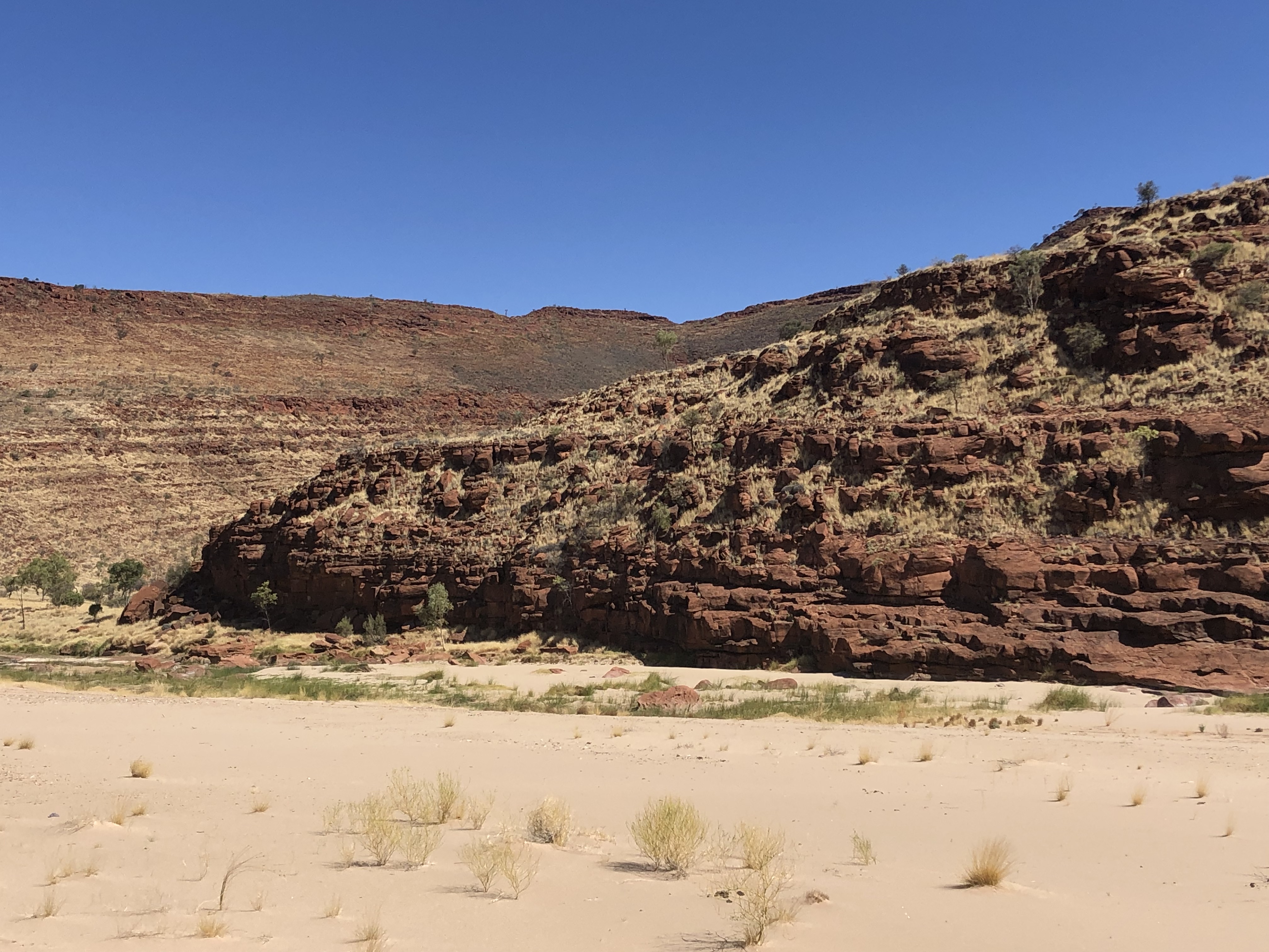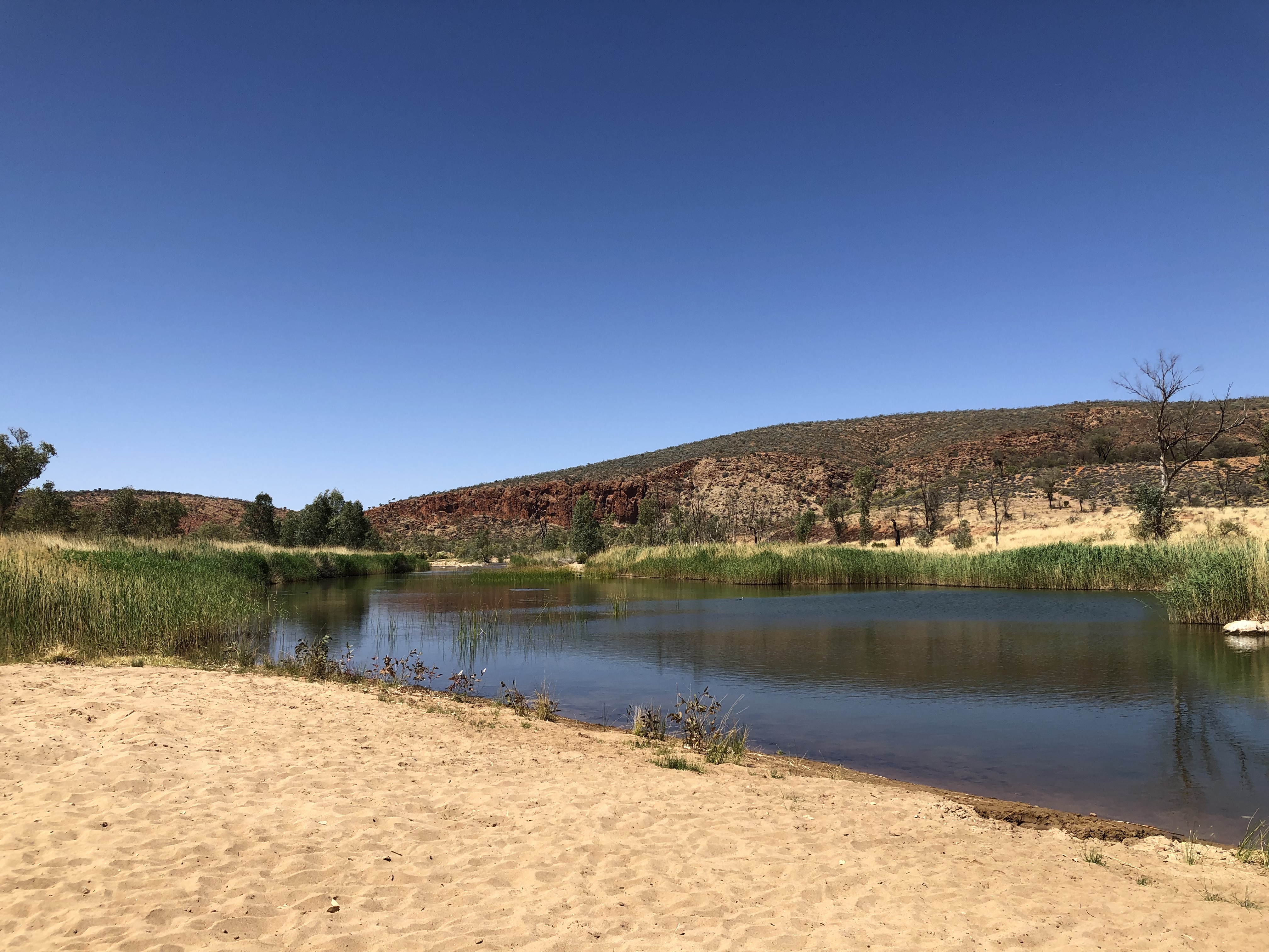 Before calling in to Glen Helen for lunch, we took a short detour down to the beginning of the two mile camp area to get up close to the Finke. There were some sandy campsites there, with marvelous views of the river.
