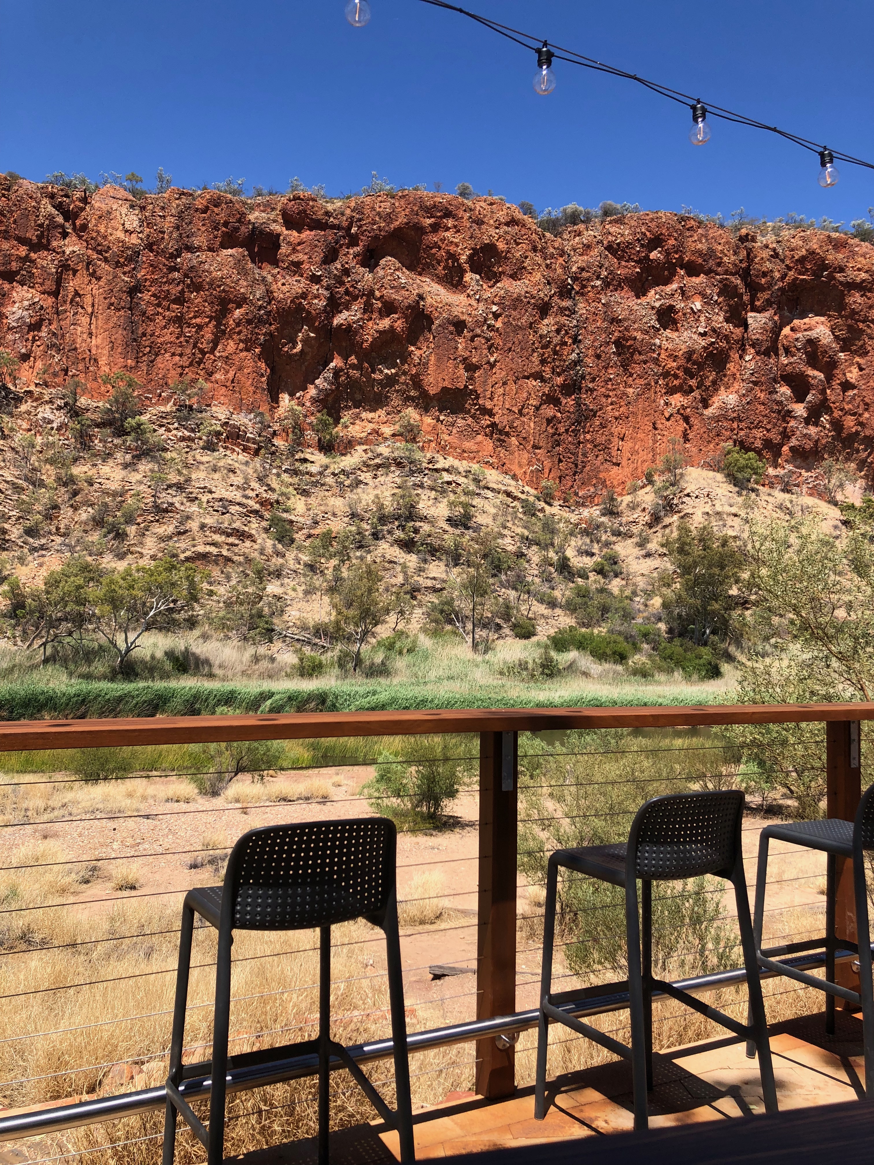 Since we last visited Glen Helen, it has changed hands and is now part of the Discovery Parks group. They only recently opened up again so we were lucky to be able to enjoy a sandwich and a beer on the back deck with the breath taking views across the Finke and to the Glen Helen Gorge.