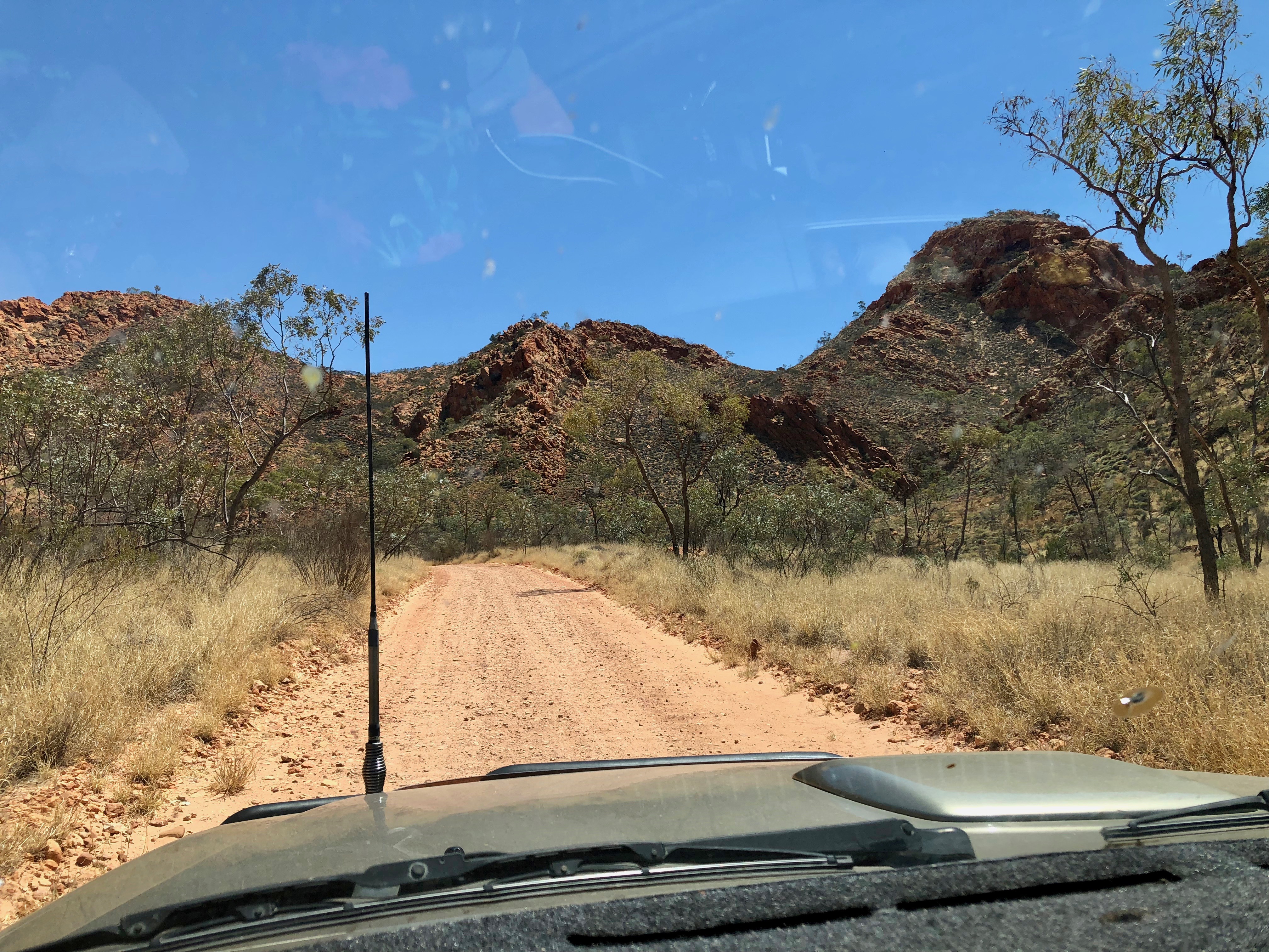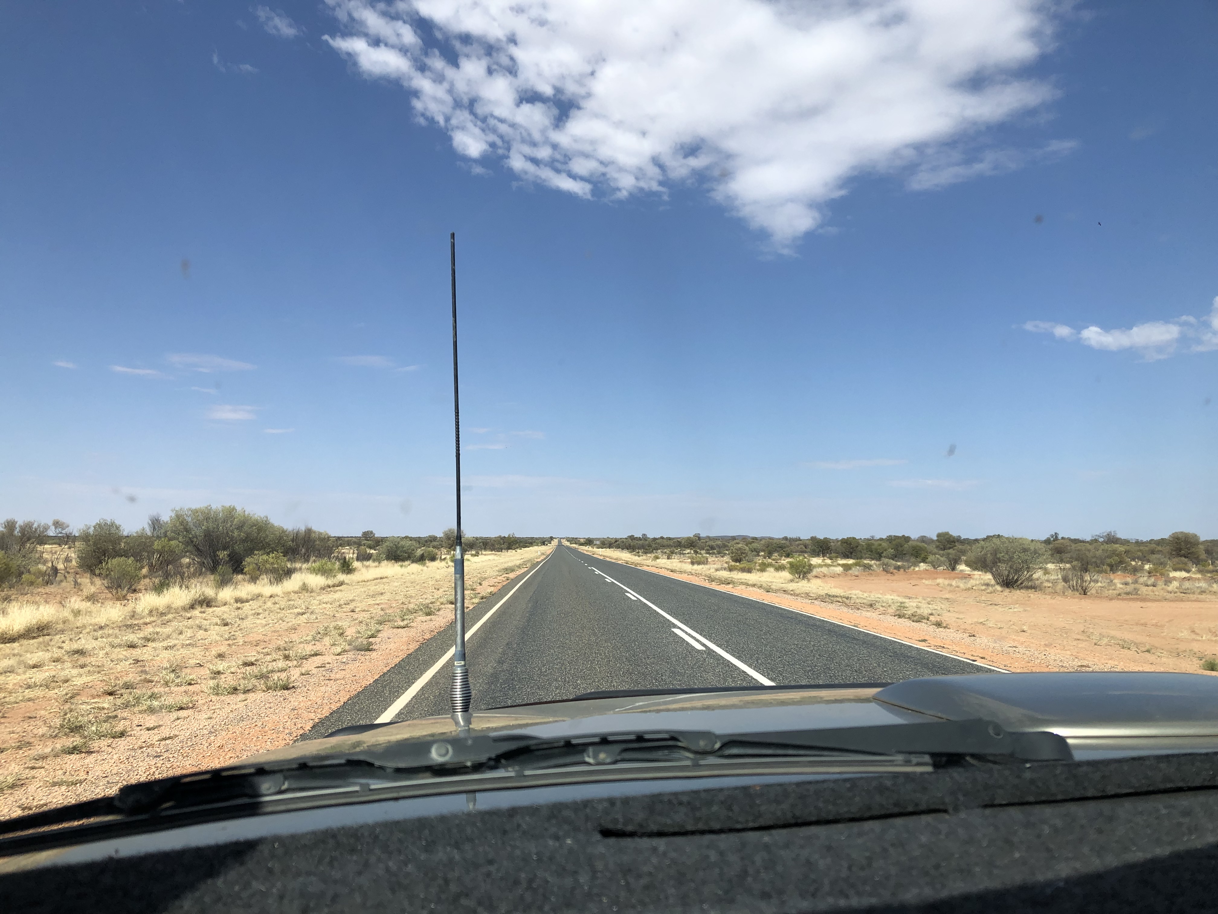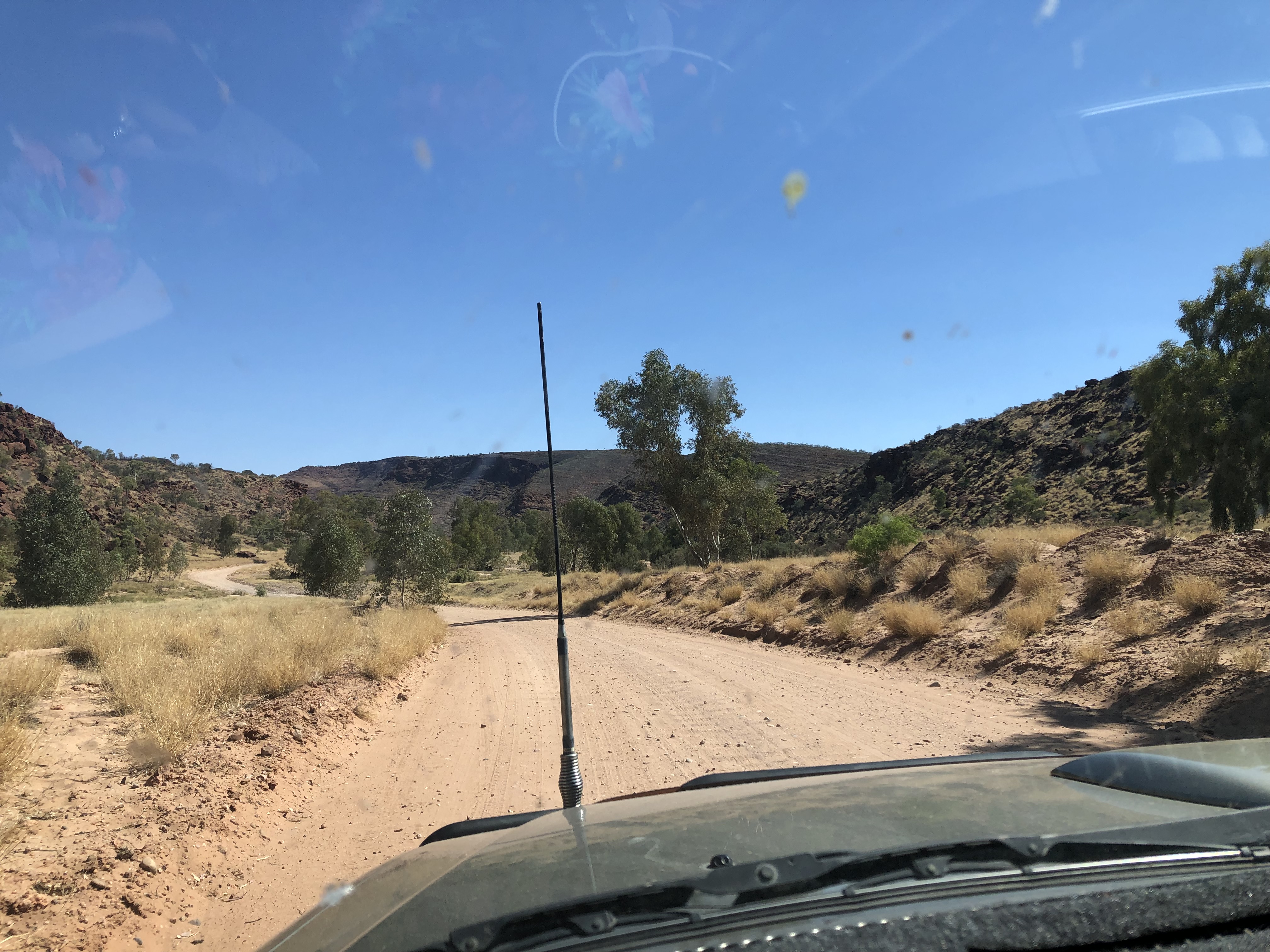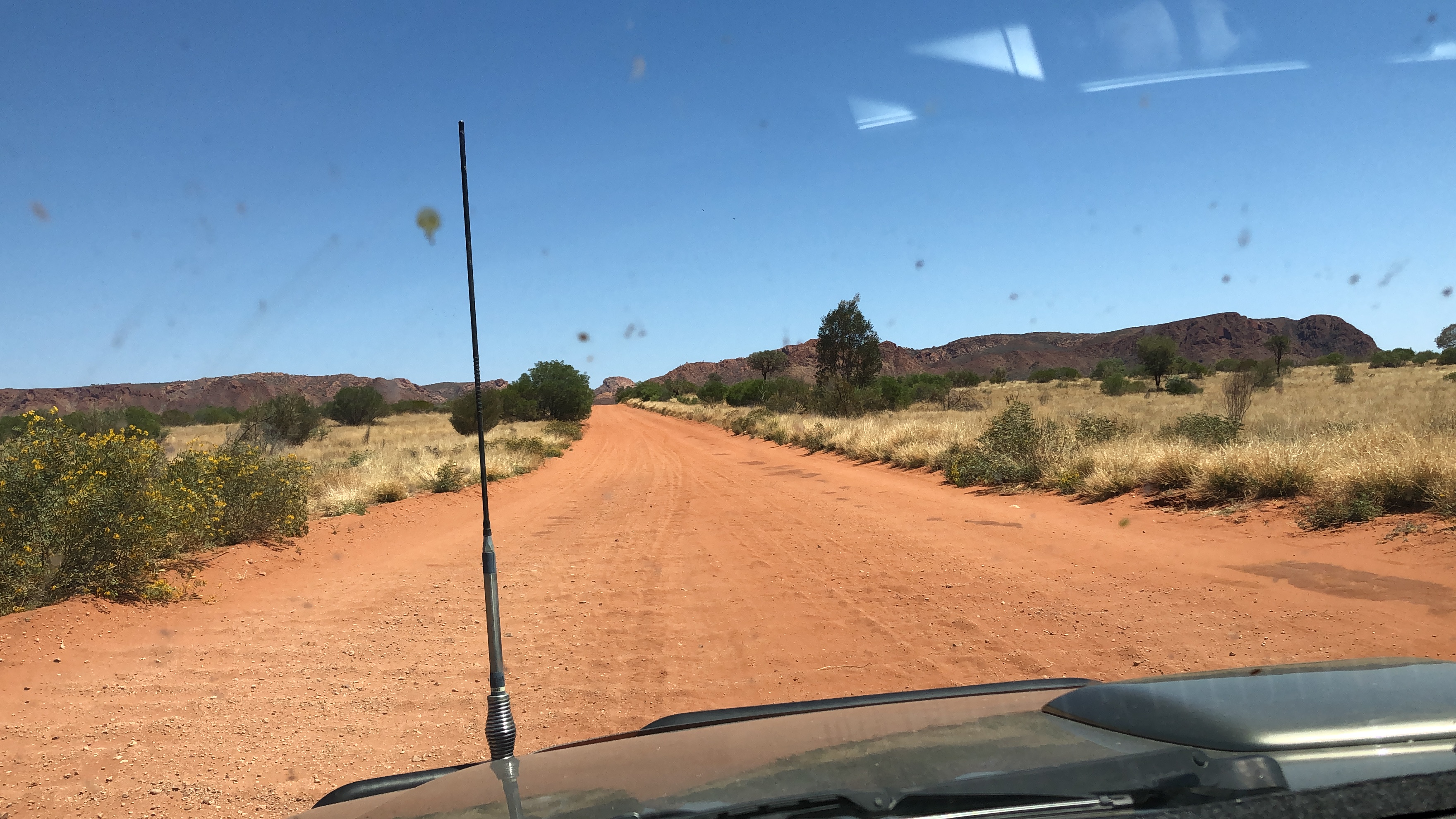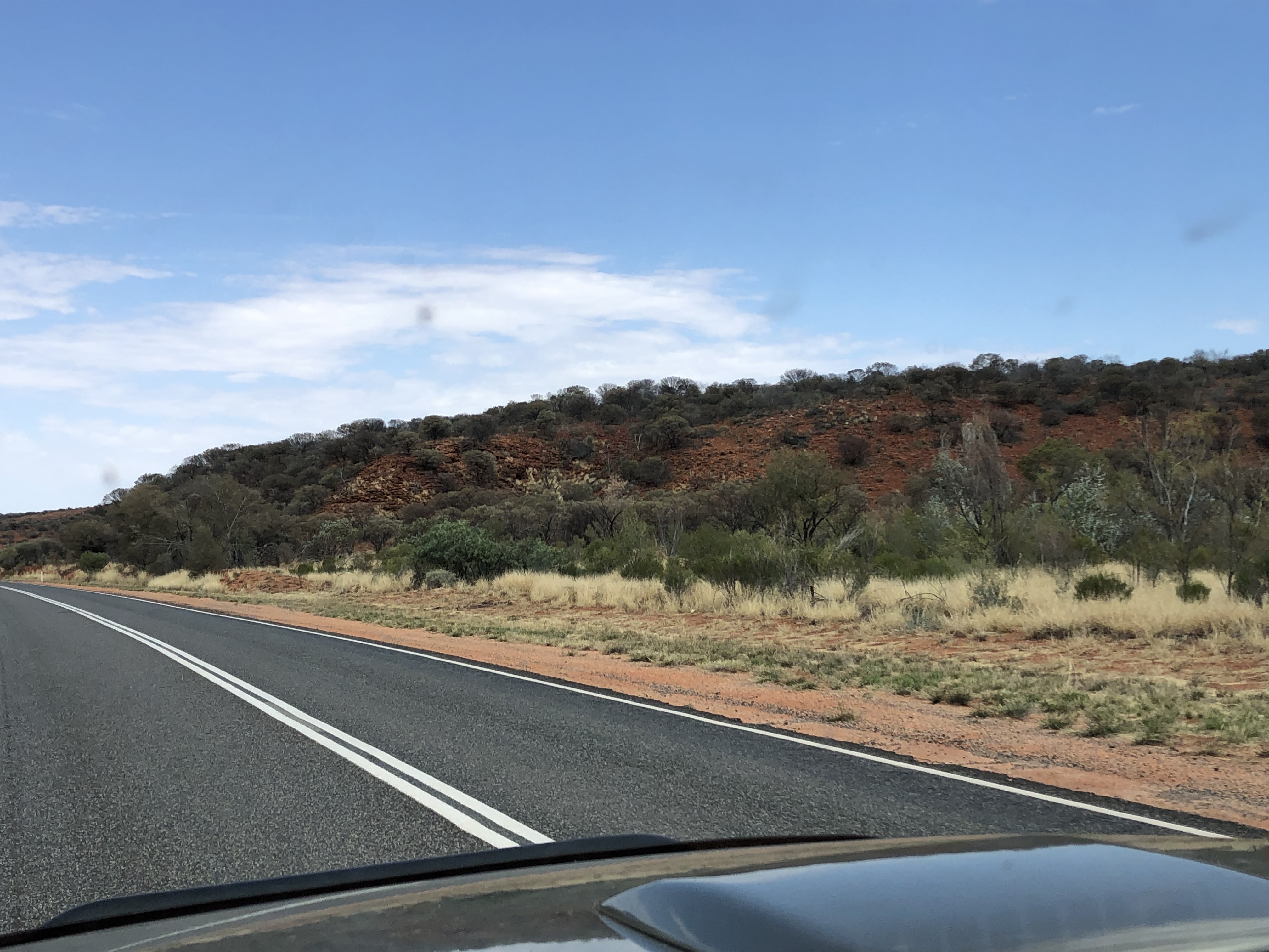 As we drove through the Heavitree Gap and out of the Alice, the police were busily engaged on the opposite side of the road conducting breathalyser tests. It was 9.30 AM! They had a long queue of customers and it looked like several had been pulled over for some misdemeanour or other. Oh the excitement of the Territory. In no time we were driving down the long straight road heading south. We had a north easterly tail wind gently assisting our progress.