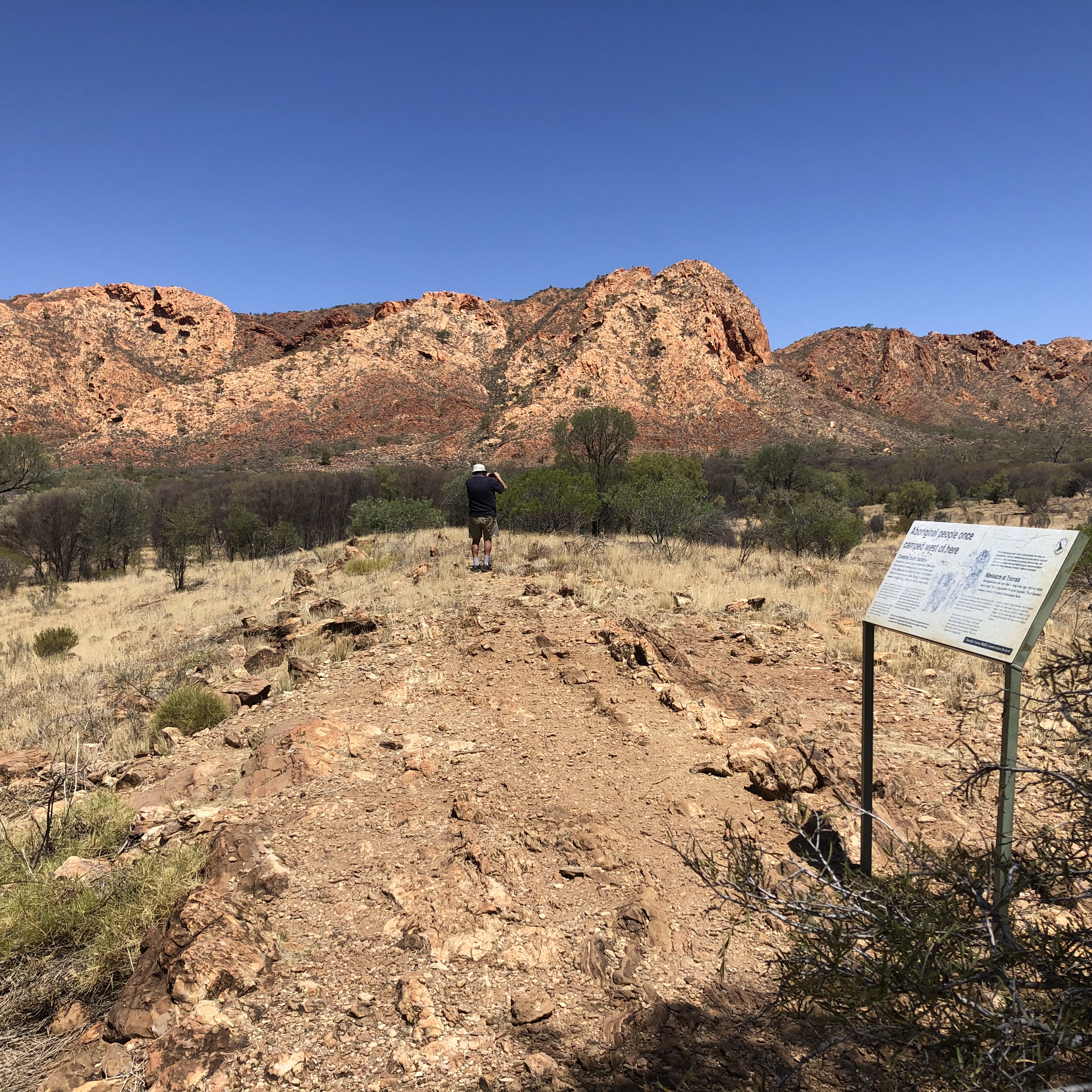 The next attraction for us was the Gosses Bluff Meteor/Comet/Impact Crater. We paused at Tyler’s Pass to take in the distant views of the crater. Then we took the track inside the awesome crater, which is huge. The local indigenous people say that the crater was formed when a baby in it’s wooden cradle fell from the milky way while its mother was dancing. More information is in the document linked below: