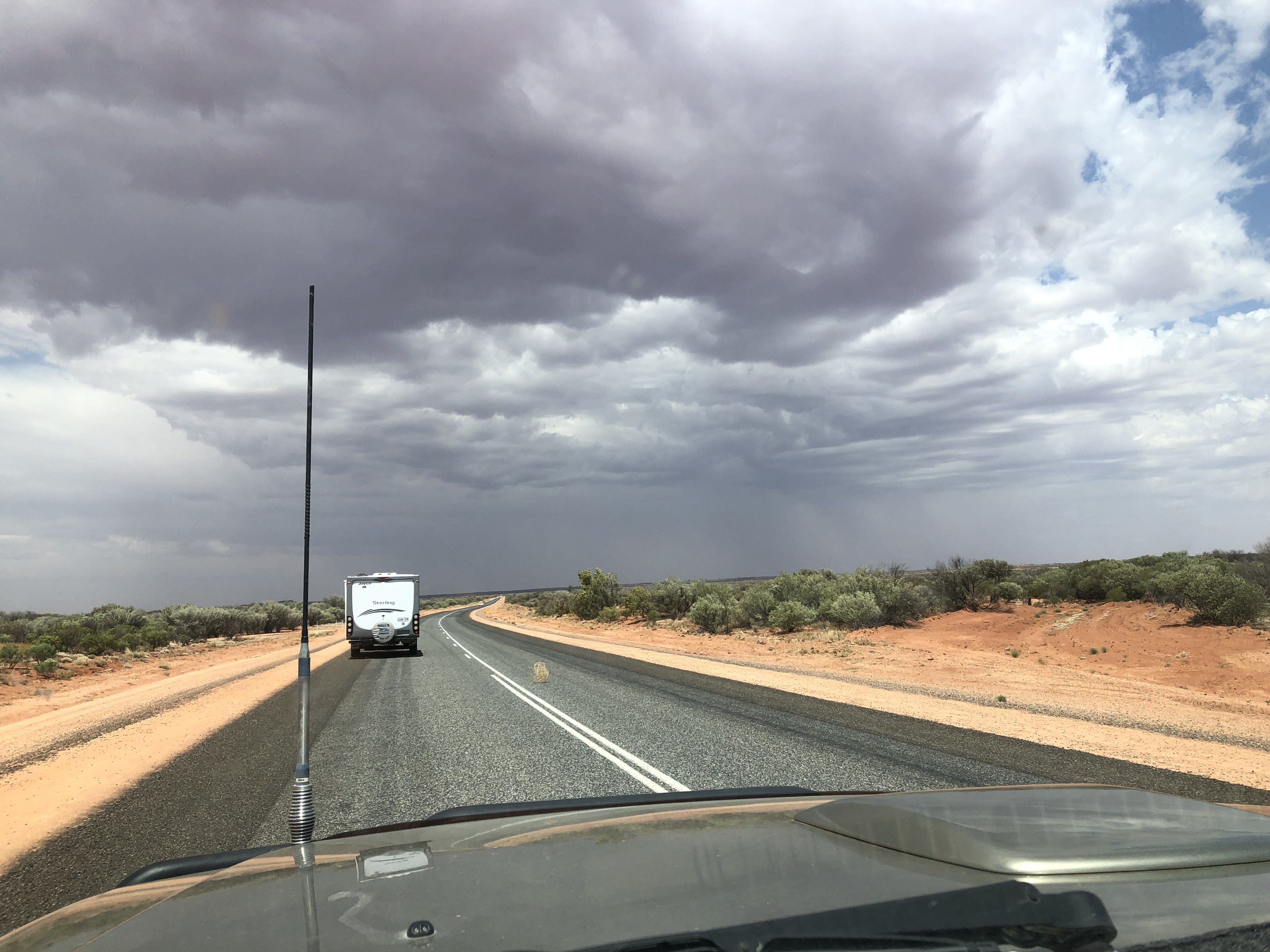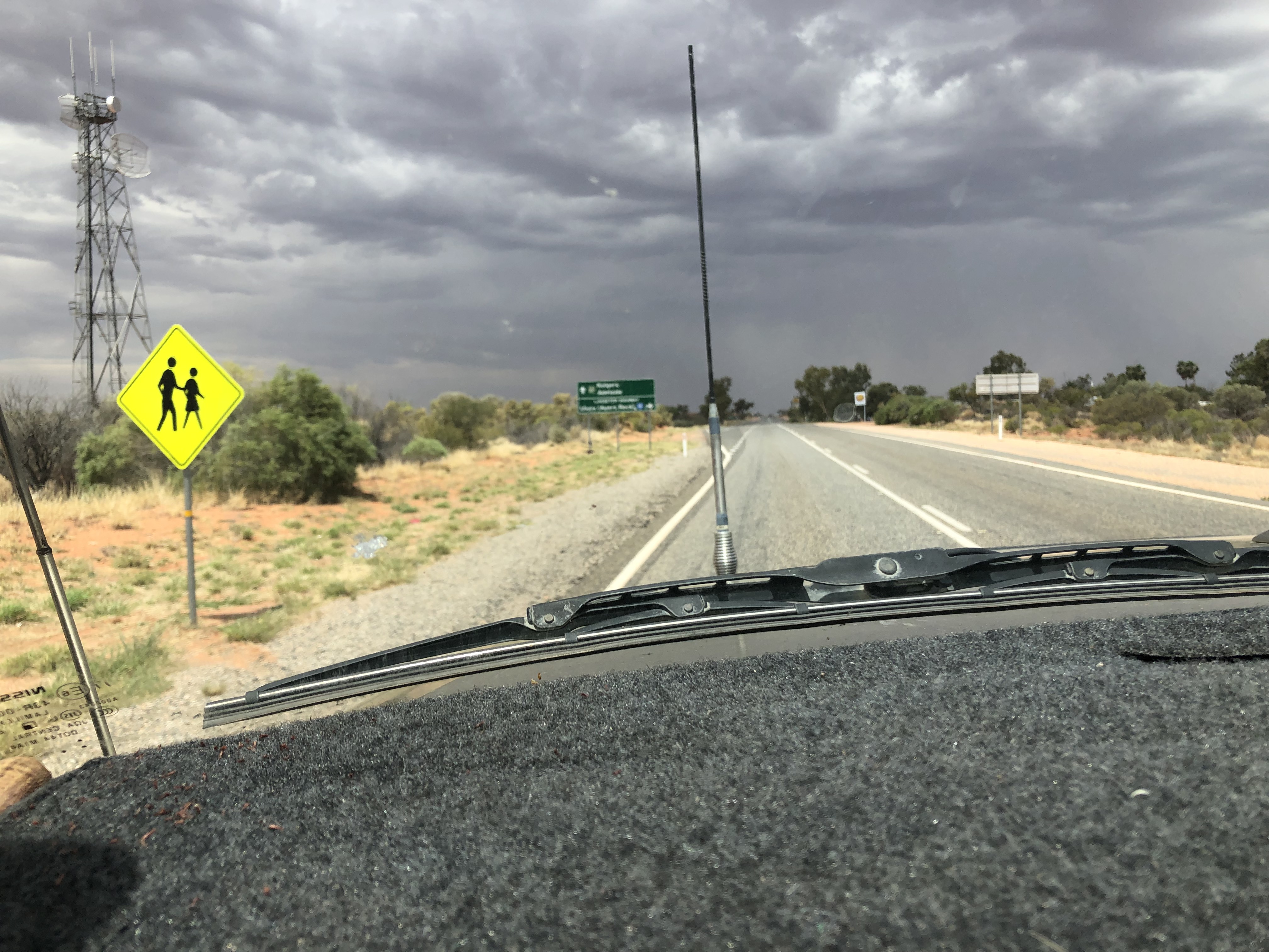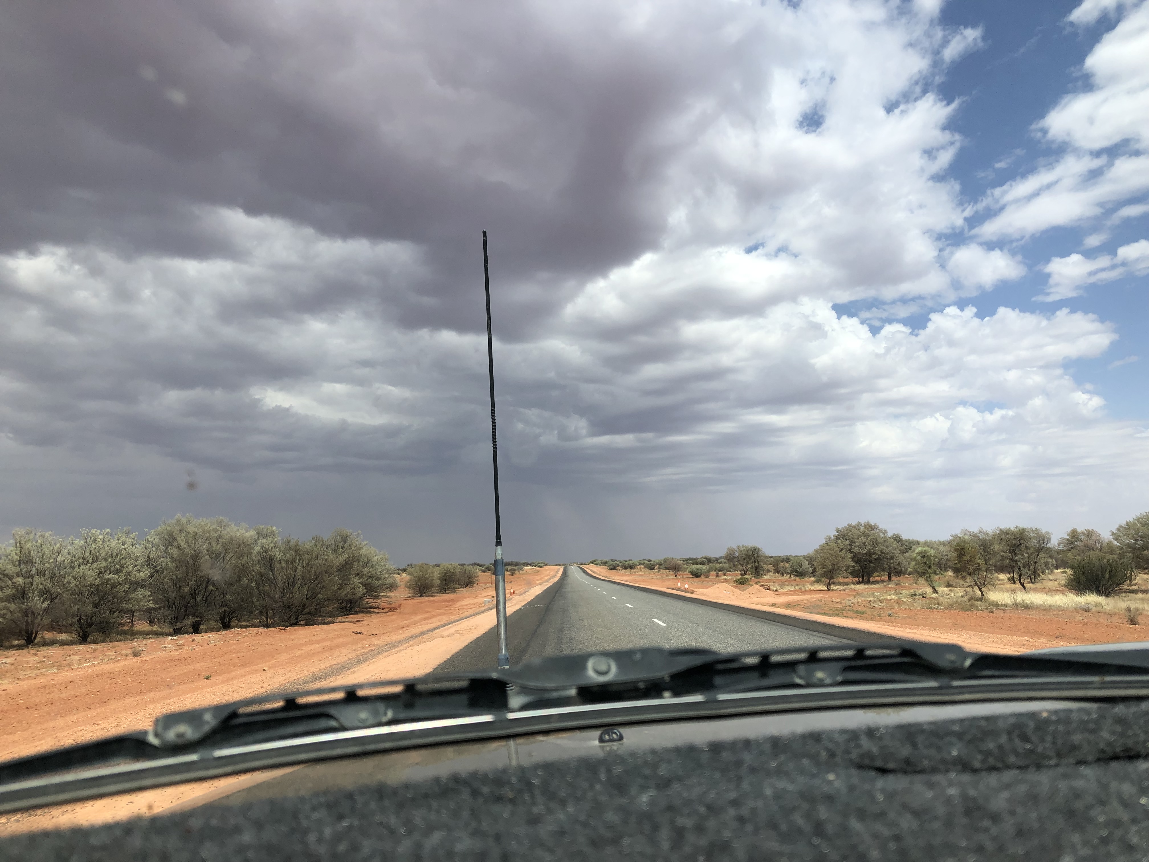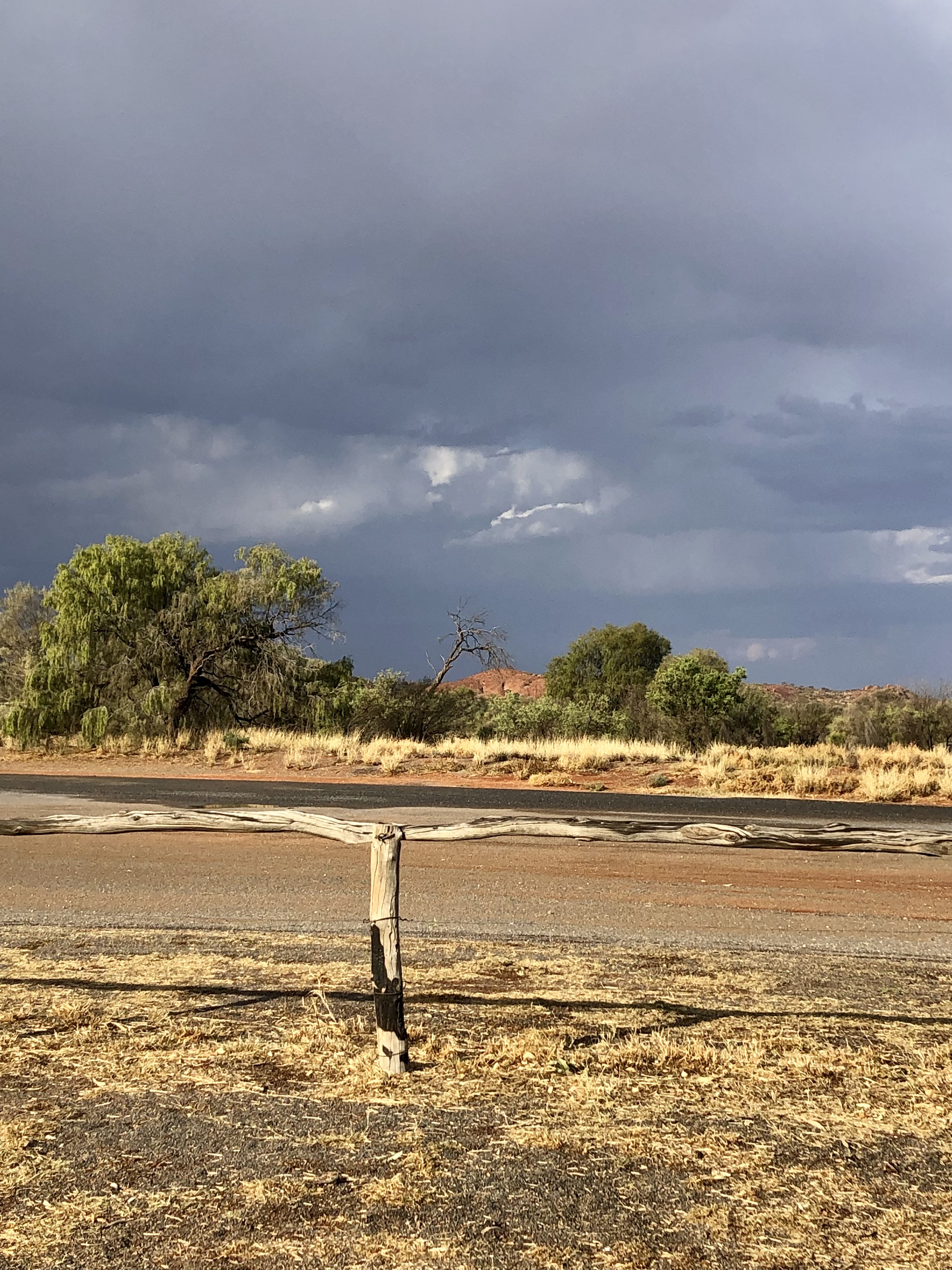 Back on the Stuart Highway again, we chased storm clouds all the way to Kulgera.