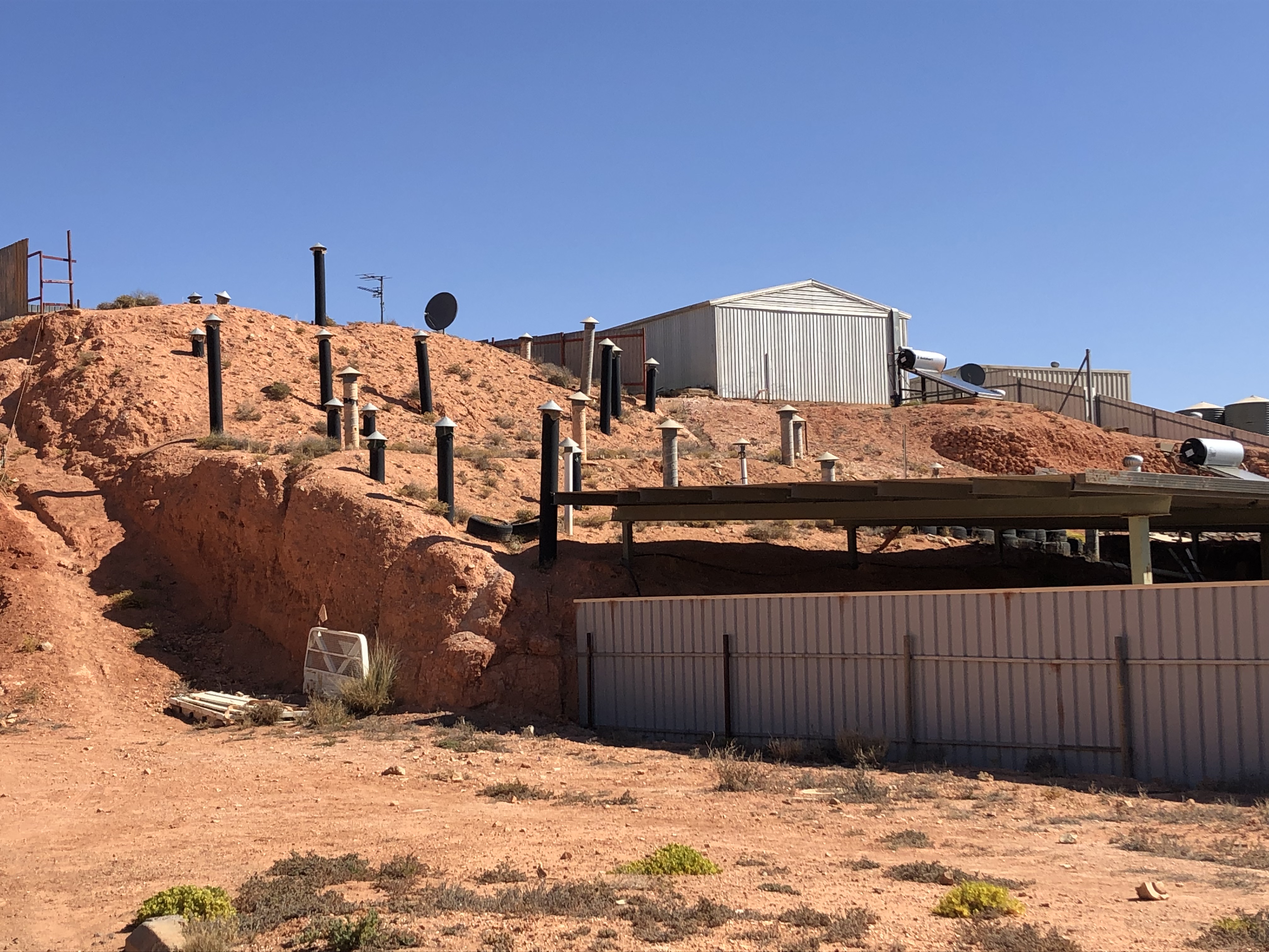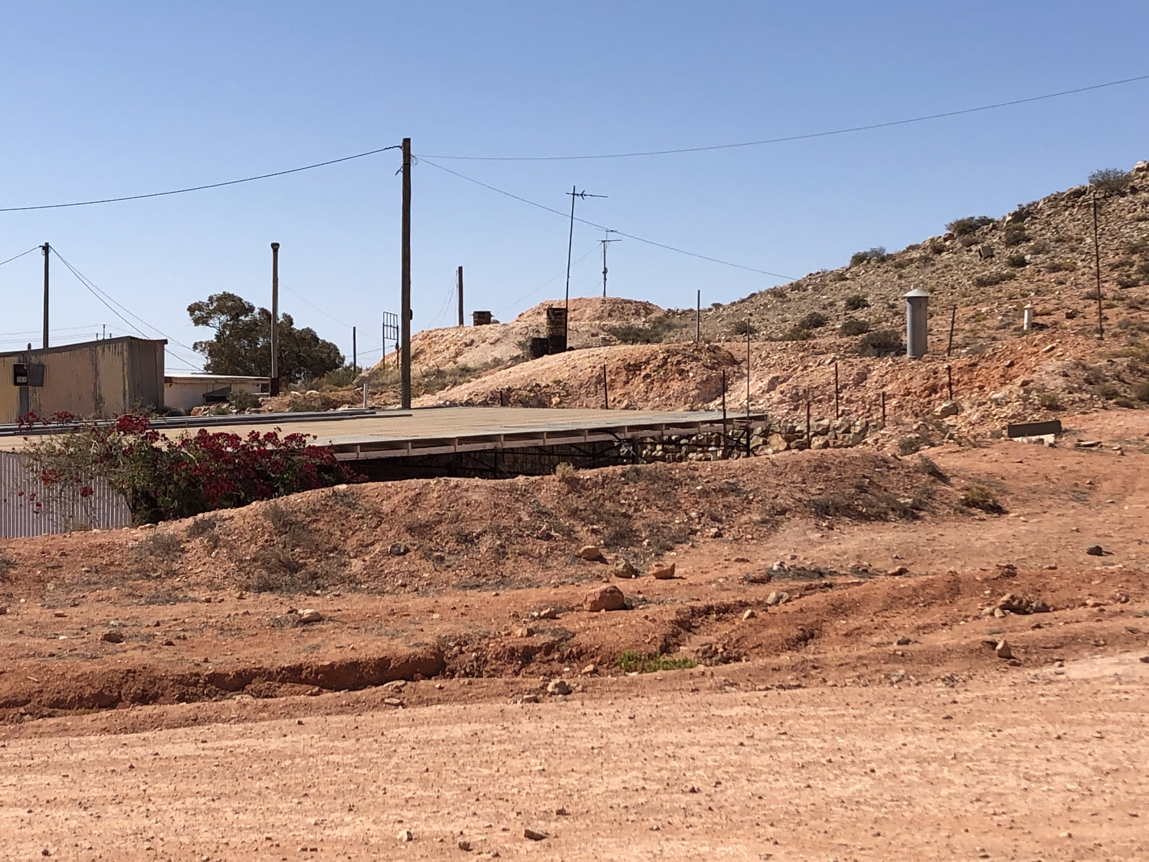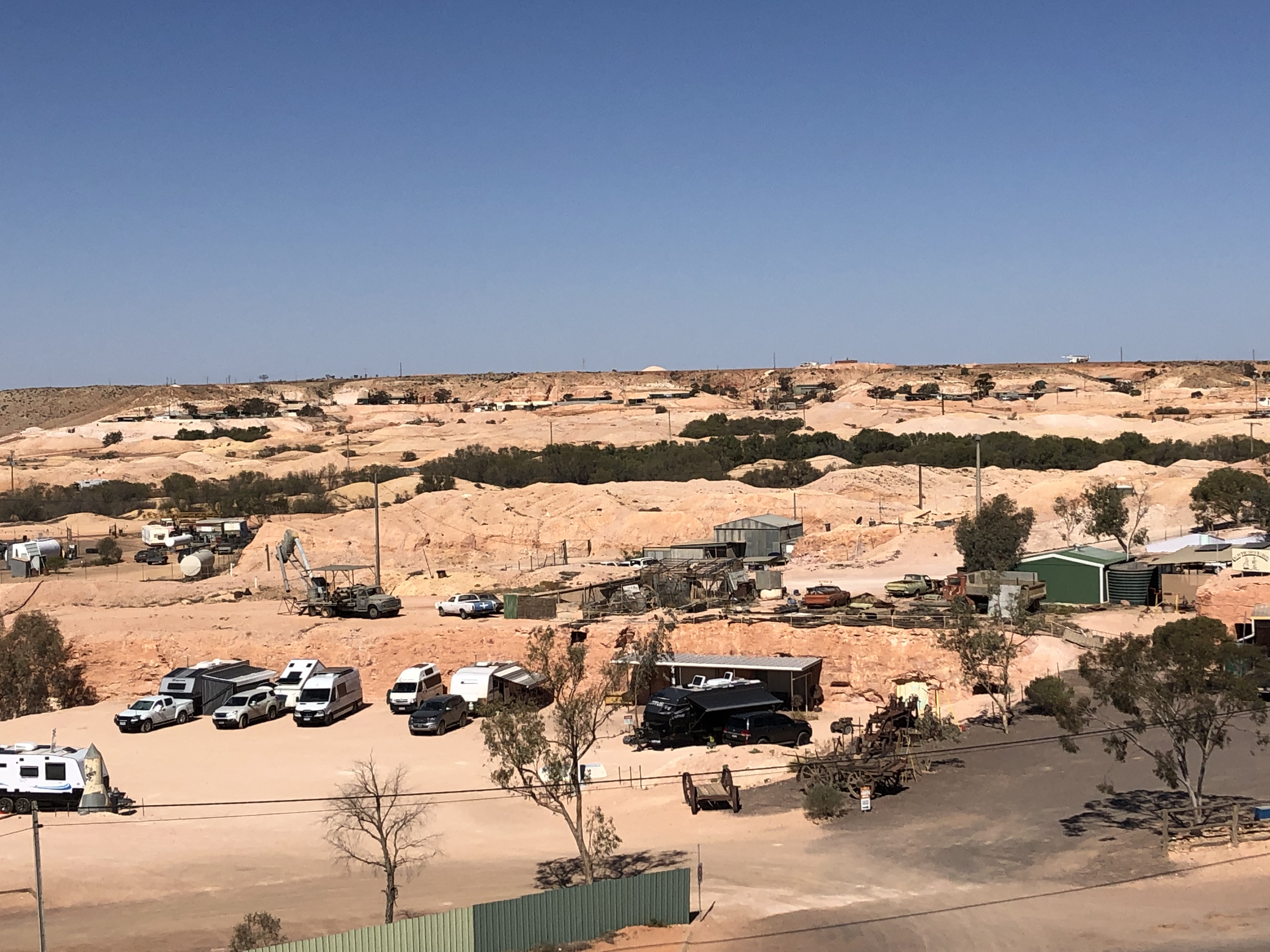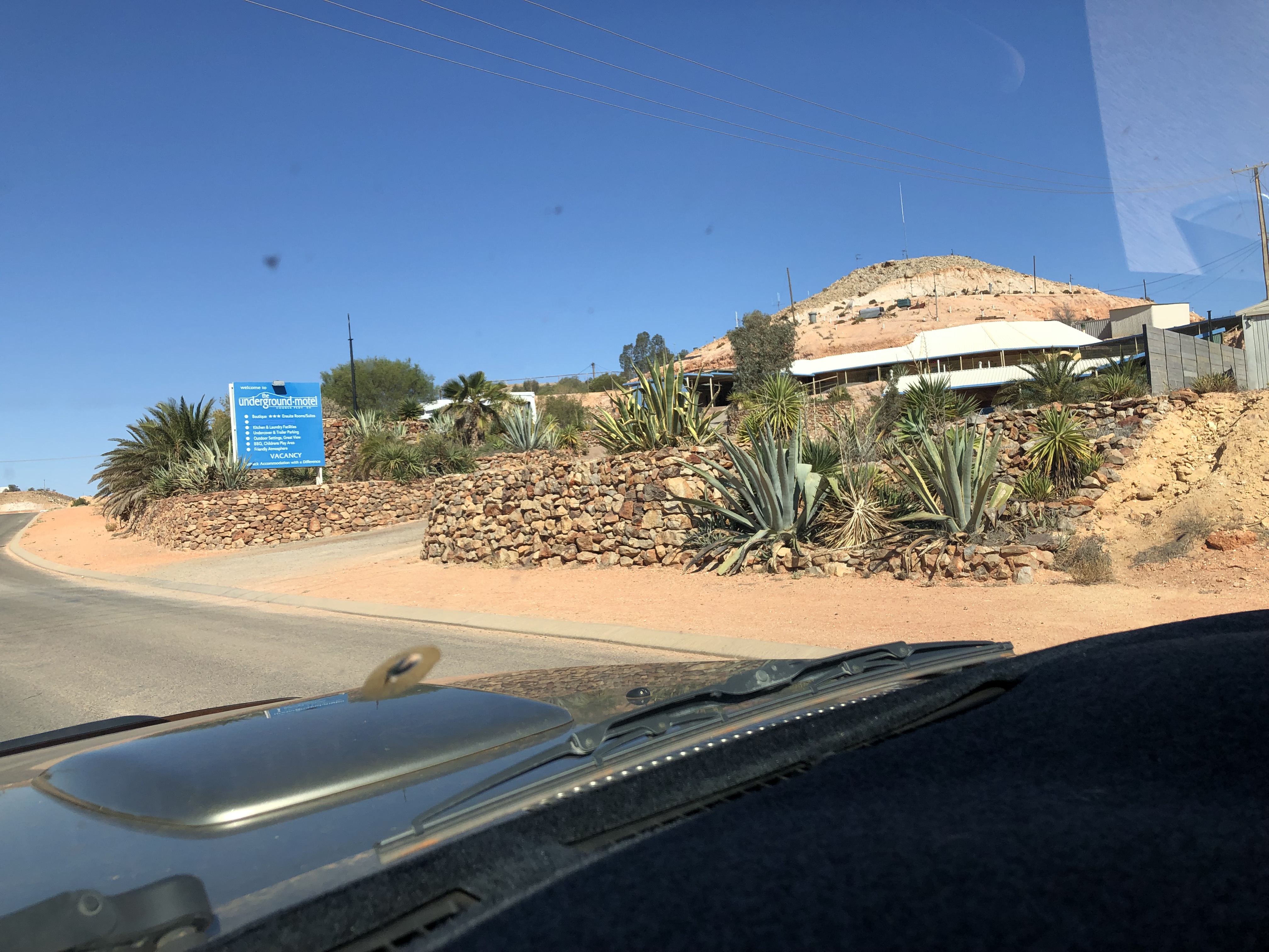We set up home under the shade mesh and then took a drive around town to explore the ‘new’ Coober Pedy. I was amused to discover that the name means “White Man in a Hole’.
