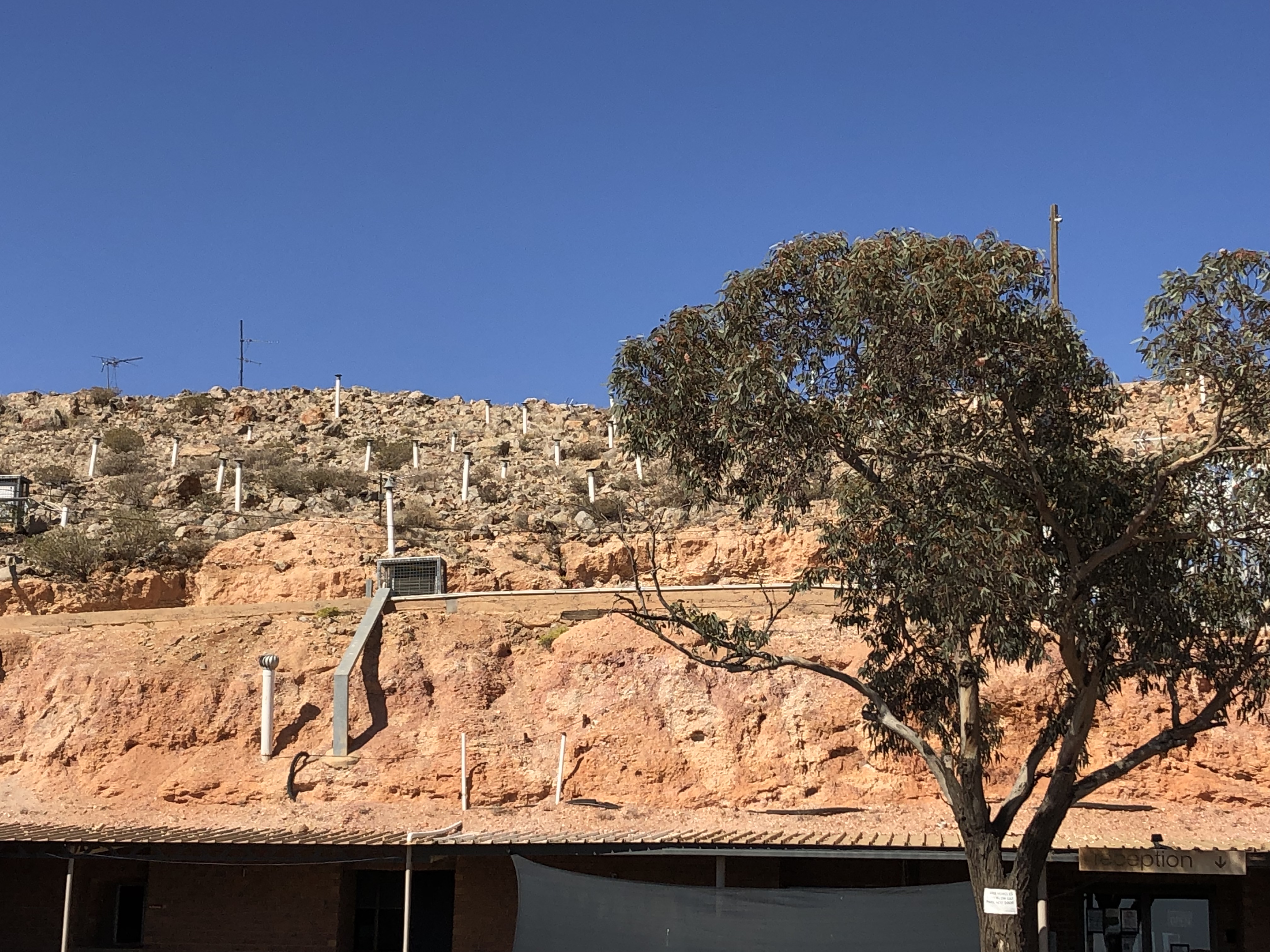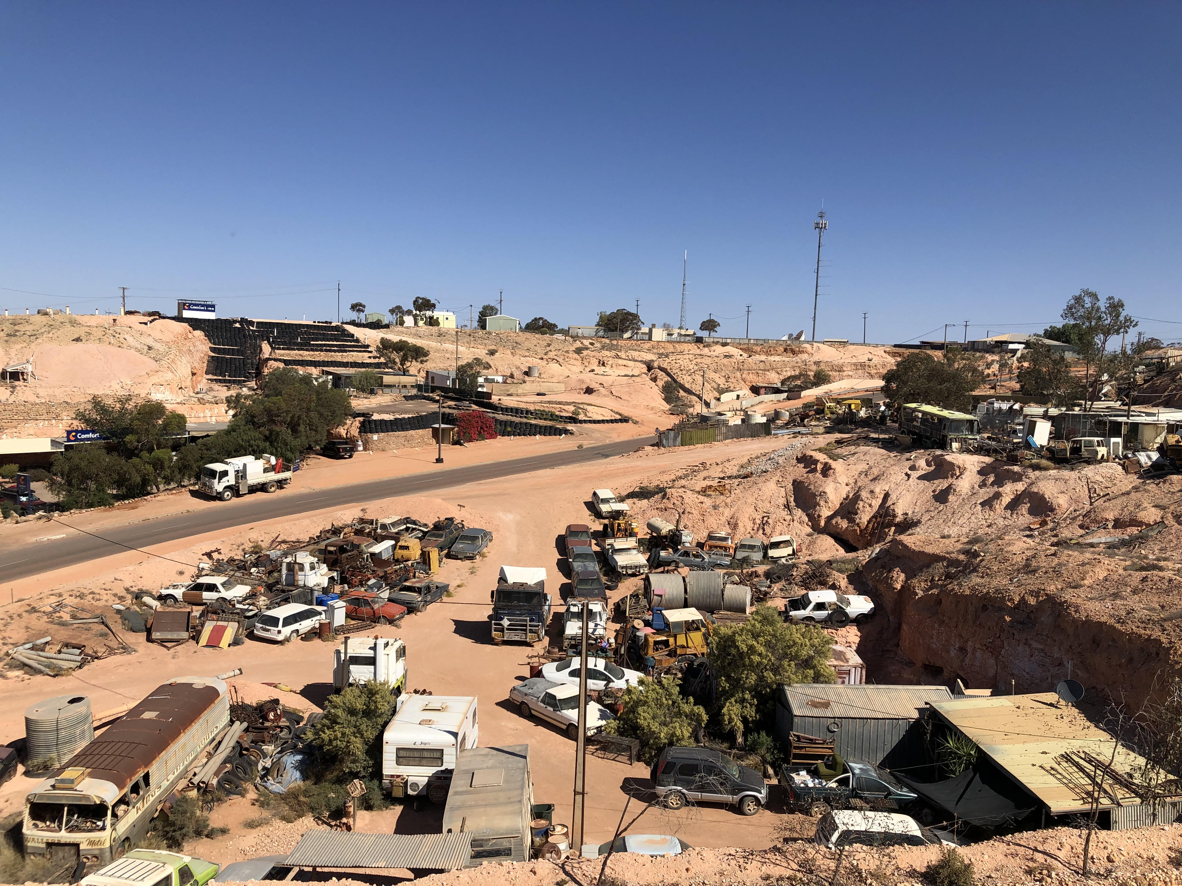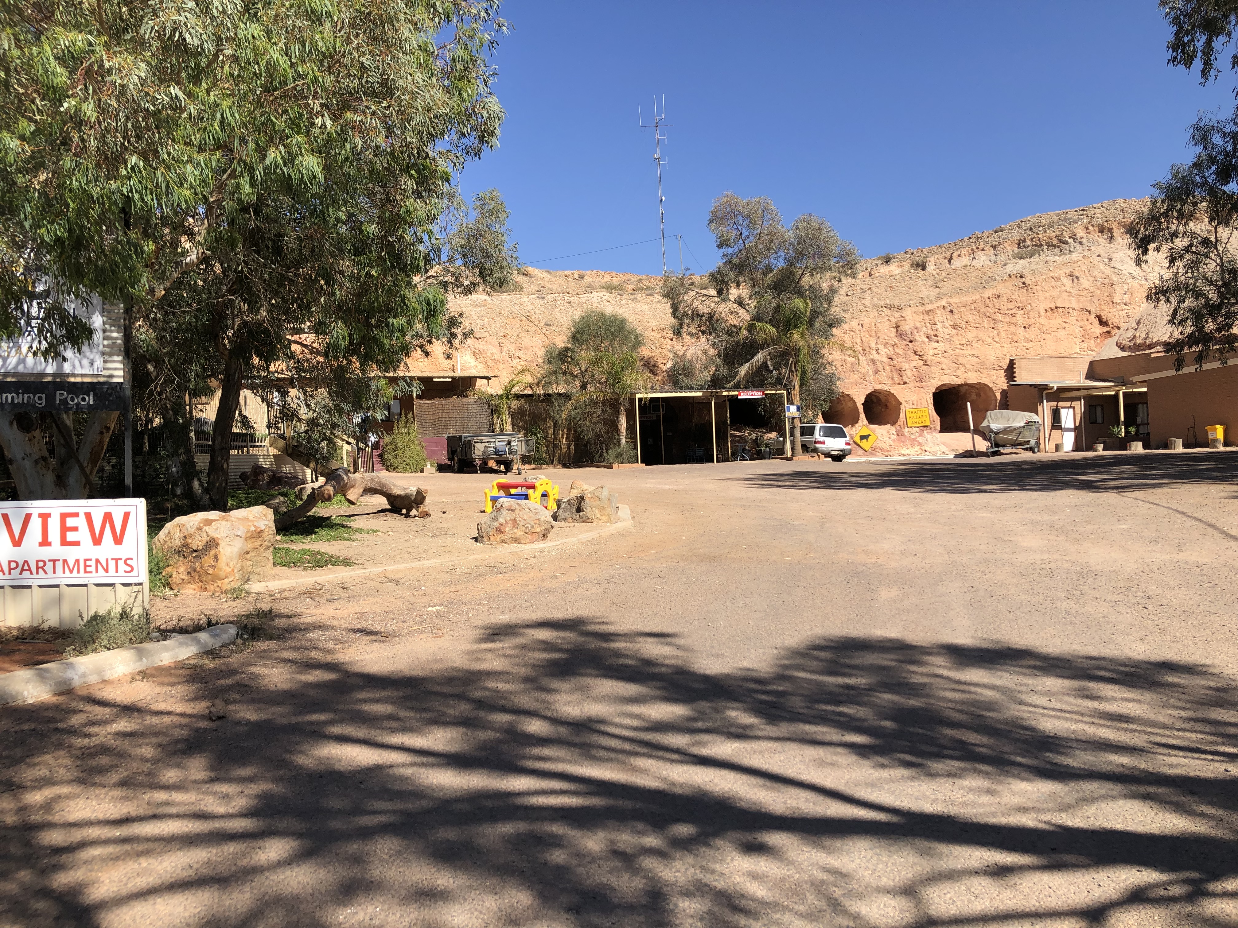 We set up home under the shade mesh and then took a drive around town to explore the ‘new’ Coober Pedy. I was amused to discover that the name means “White Man in a Hole’.
