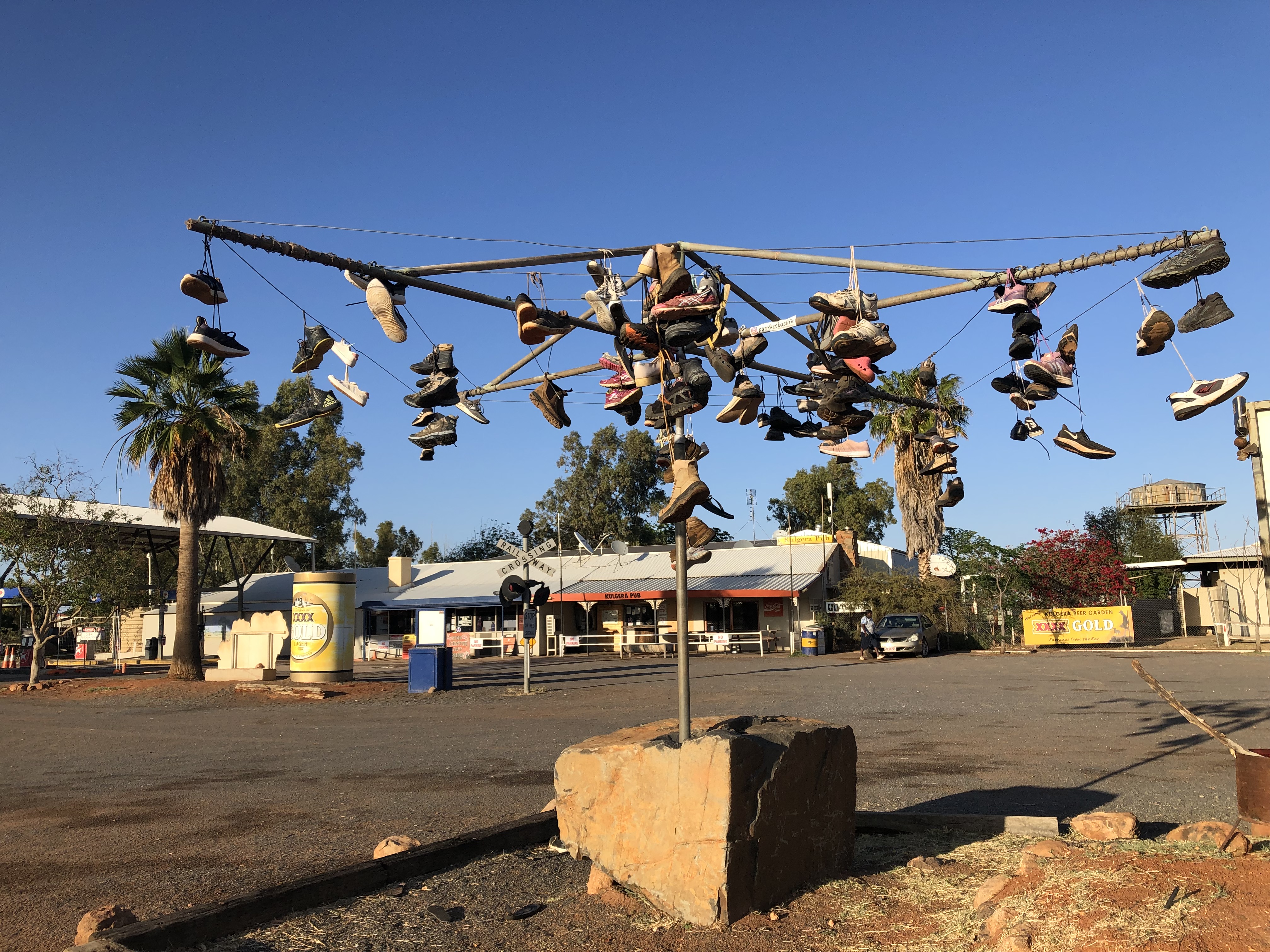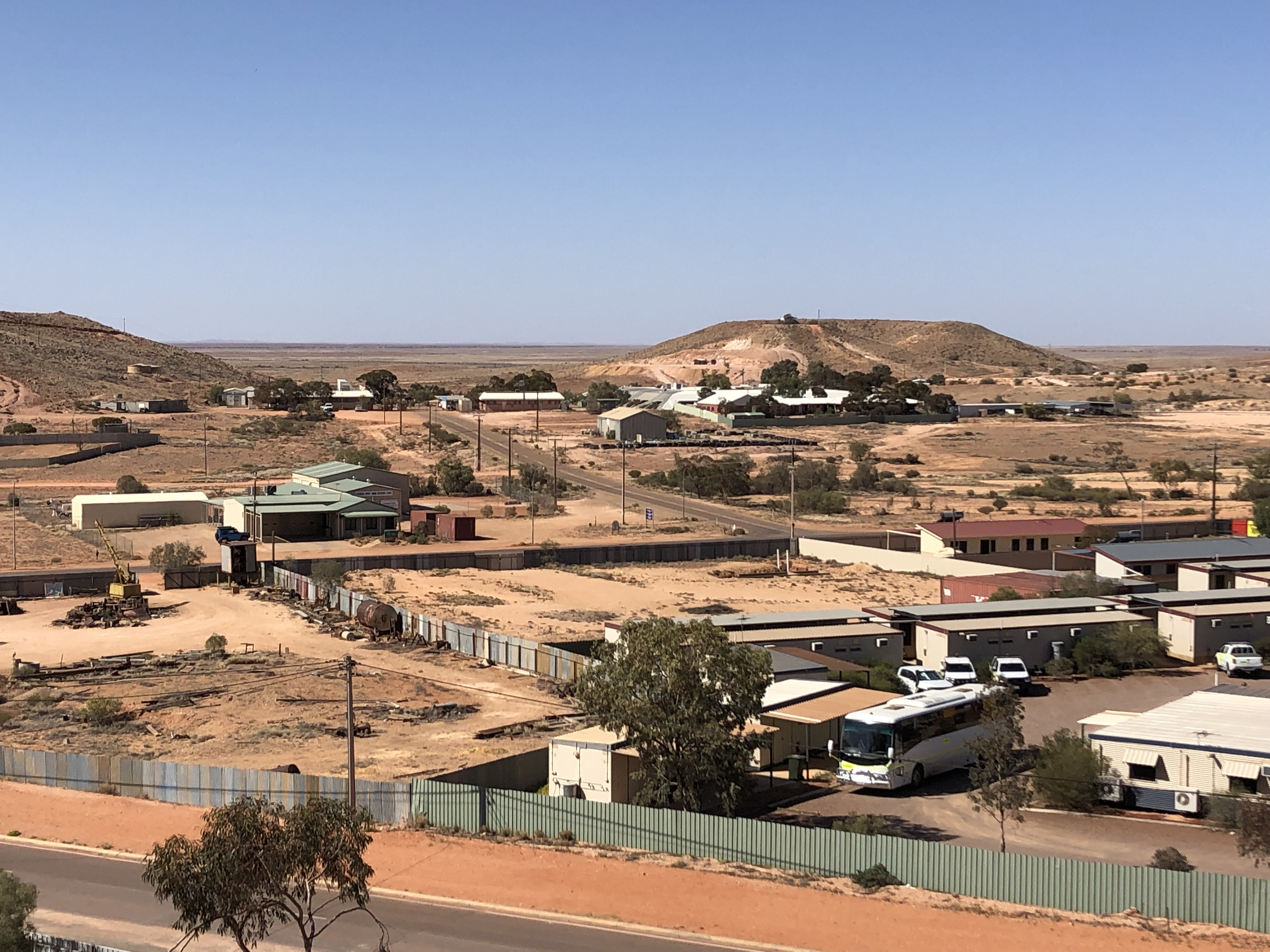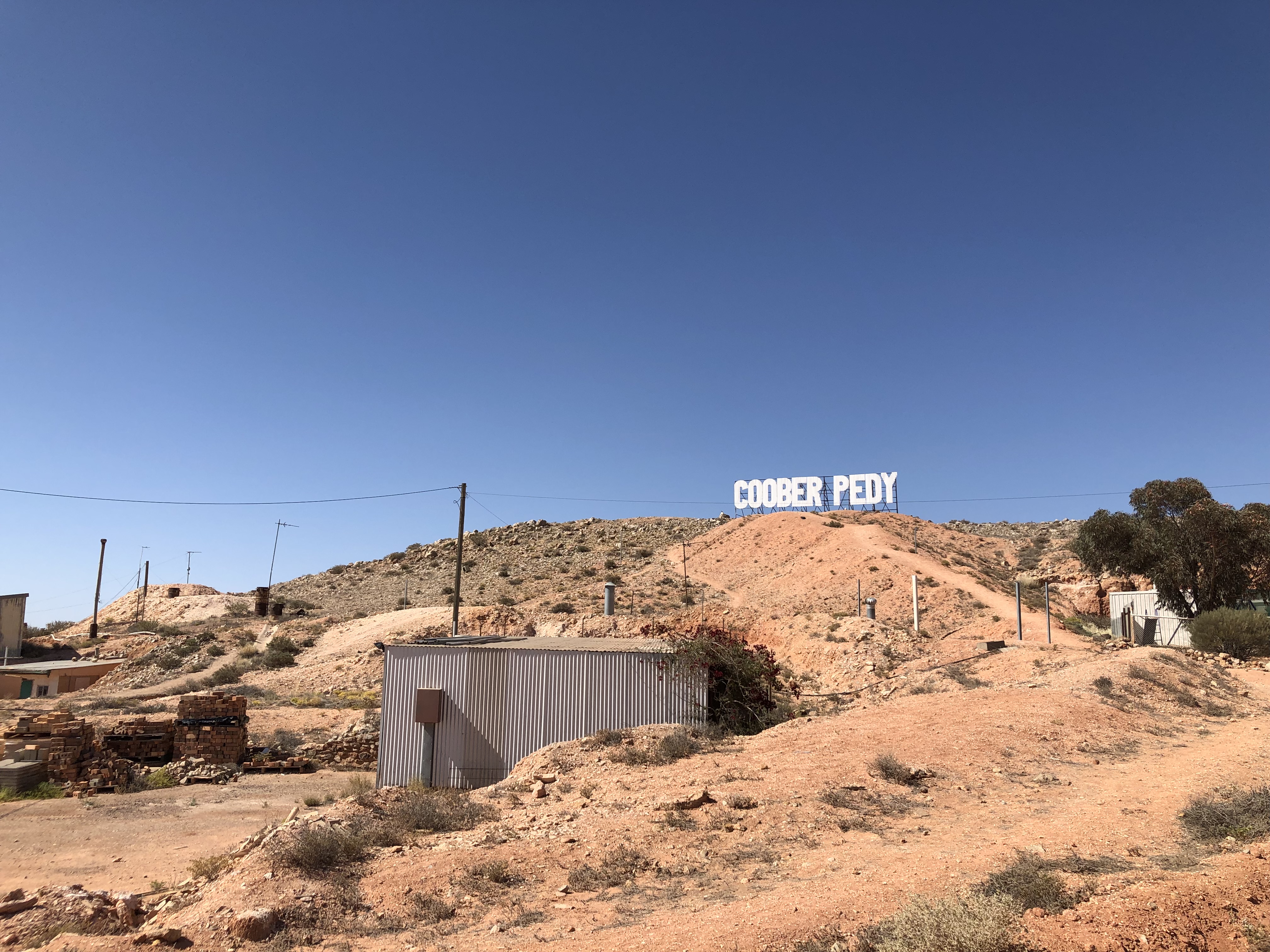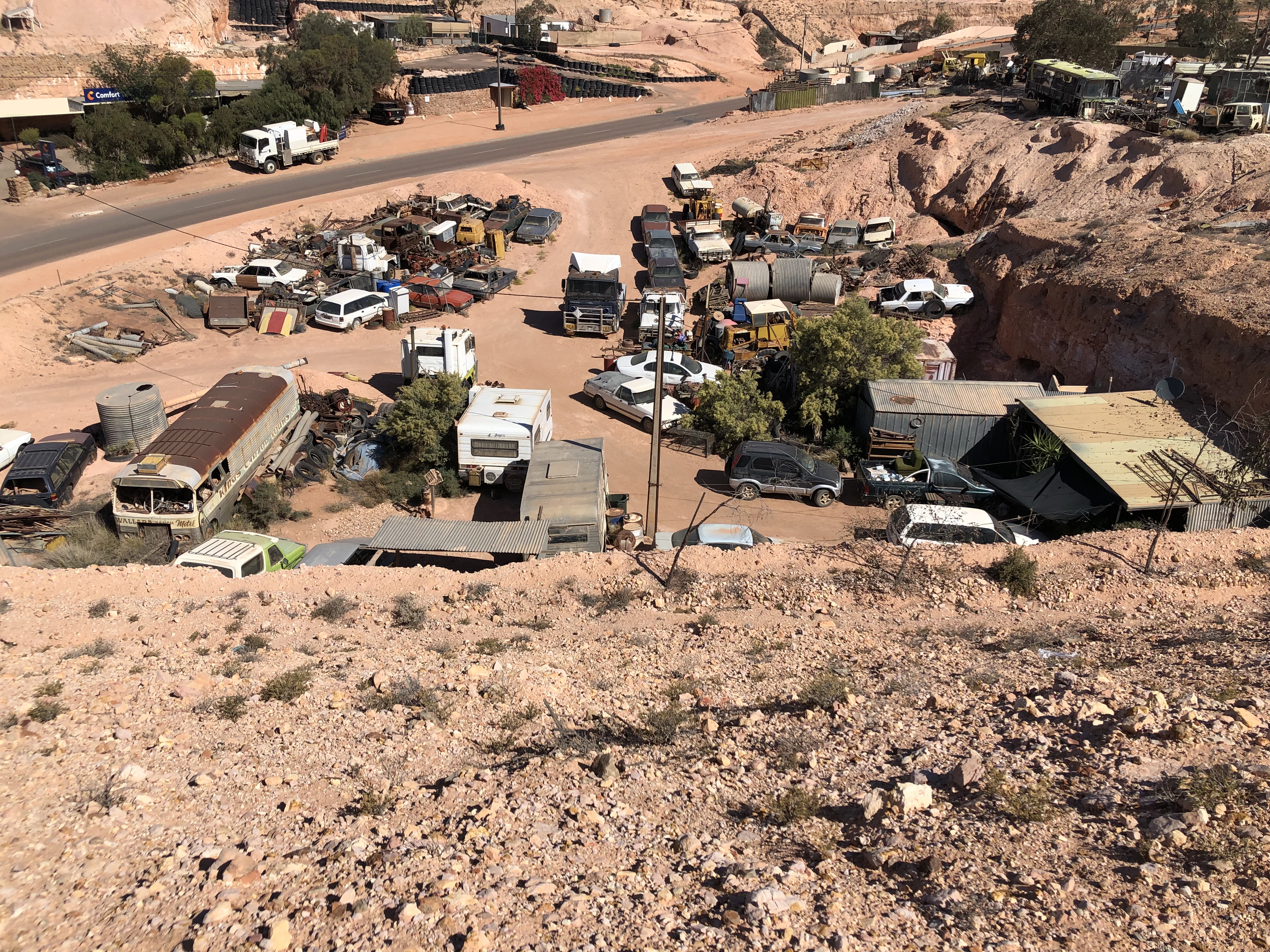 We set up home under the shade mesh and then took a drive around town to explore the ‘new’ Coober Pedy. I was amused to discover that the name means “White Man in a Hole’.