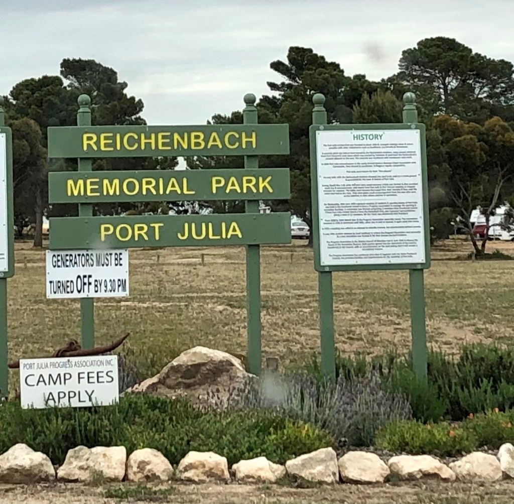 The Port Julia Reichenbach Memorial Park welcomes caravaners and campers. When we called in, the Caretakeres shared an interesting local history booklet which often referred to Hayey’s ancestors. We discovered that Port Julia was just part of the story. ‘Fred’ went on to be a very influential gain merchant and trader. He also developed an olive and fruit plantation, which is still there today; just north of Stansbury, where Tony Wurm, Hayley’s gentle Pa, passed away only a year or so ago.
