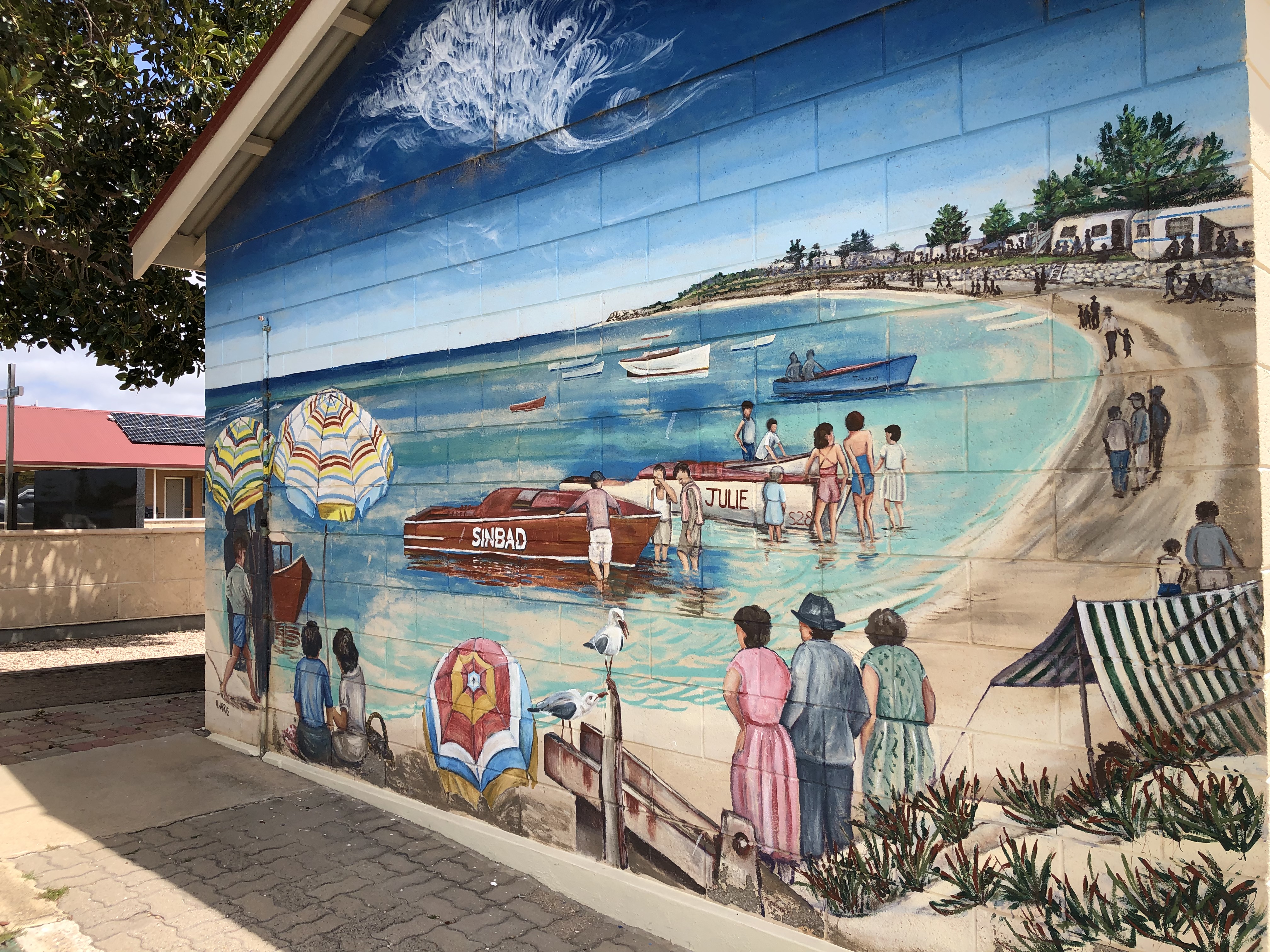 Although we had visited Stansbury with its brightly painted murals, from Point Turton; this time we understood more of the history of this lovely old town. There were many very old olive trees still producing fruit on the old property, which had sweeping views down to the water and across to the town.