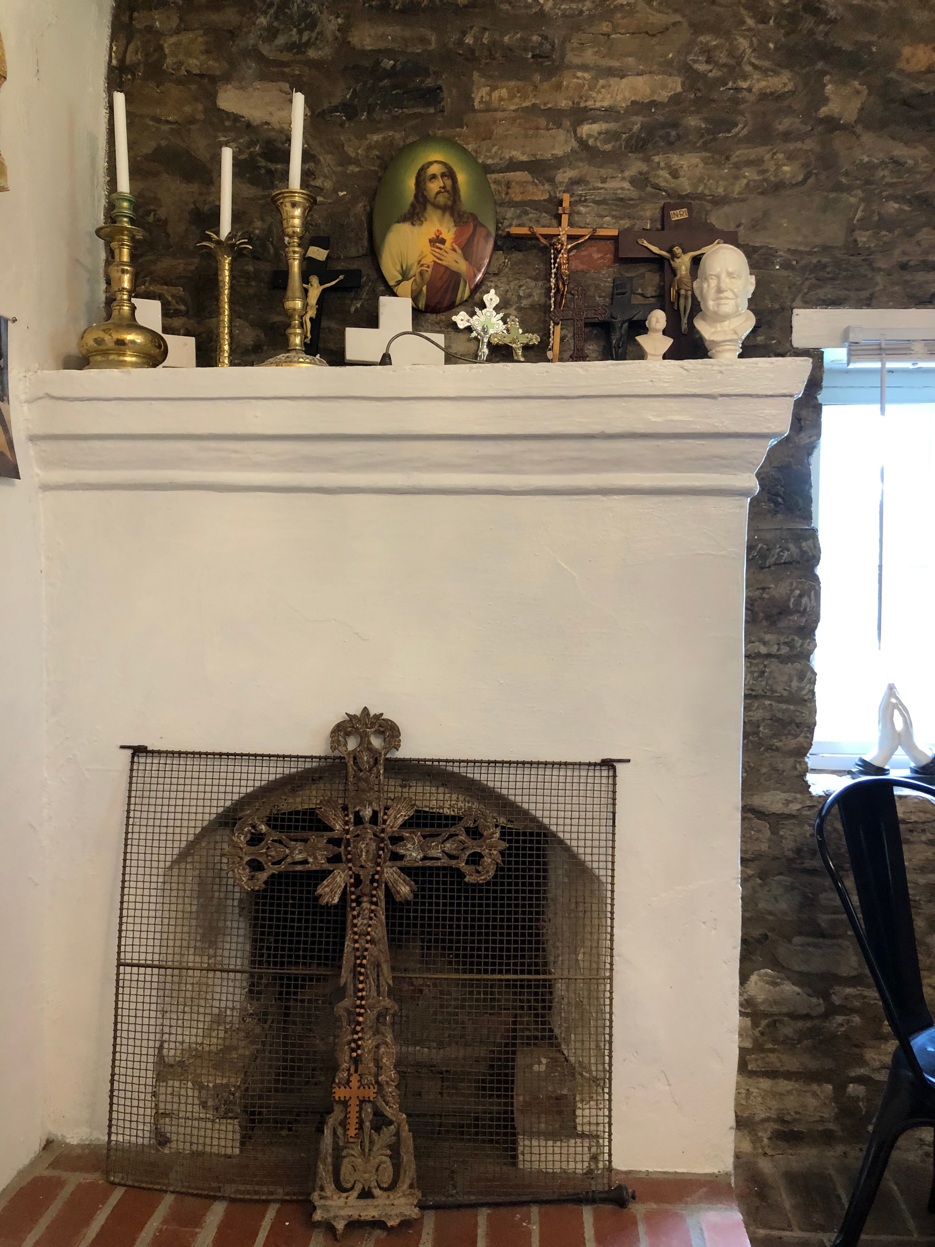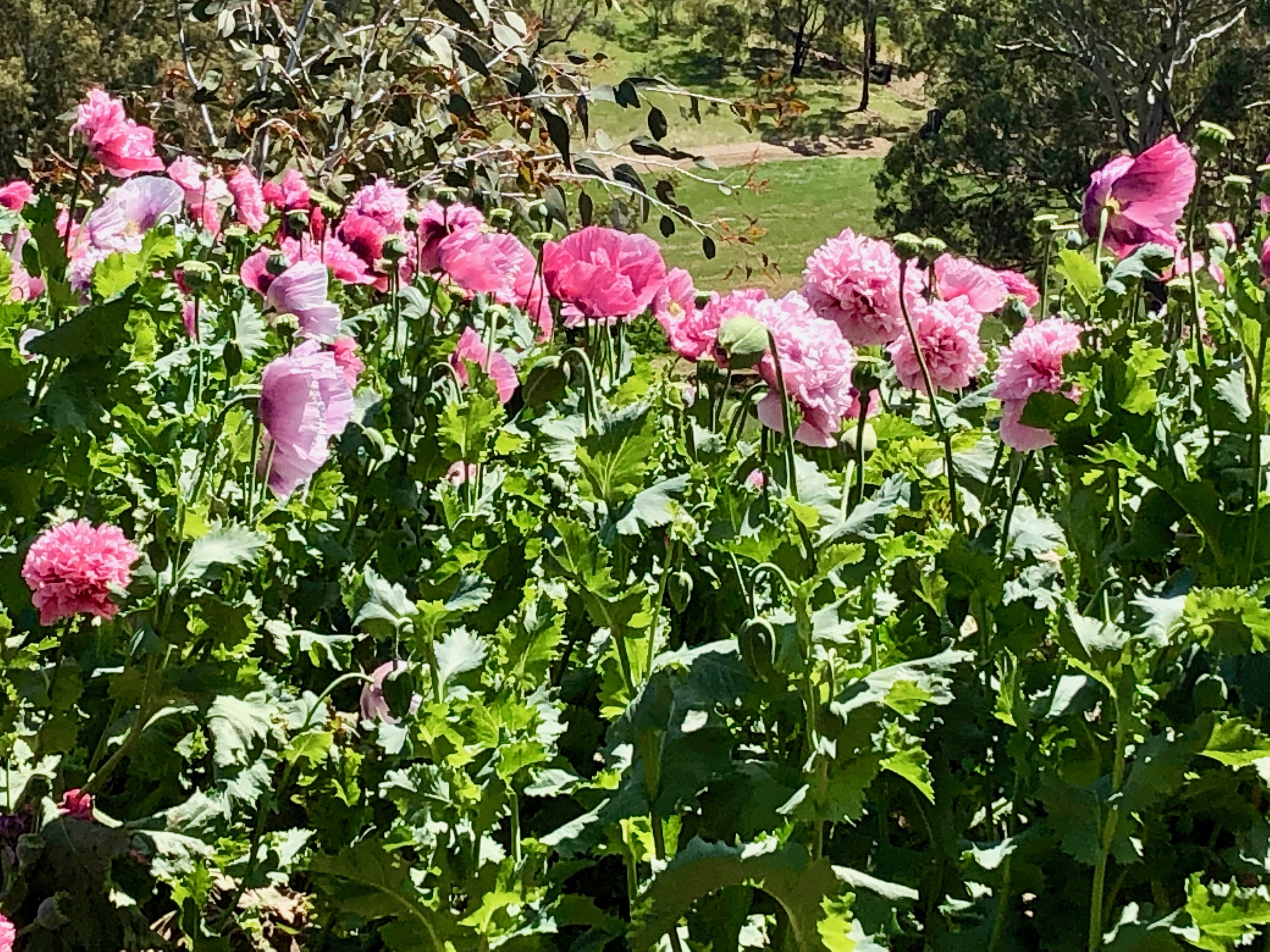 We both thoroughly enjoyed our religious experience at the Vestry, and were ready for lunch. Pikes is a favourite of ours. As it was on our way back home it was also a perfect choice to pause and reflect. Along the way we passed many glorious gardens, including this one, full of purple iris and the most eye catching pink poppies .