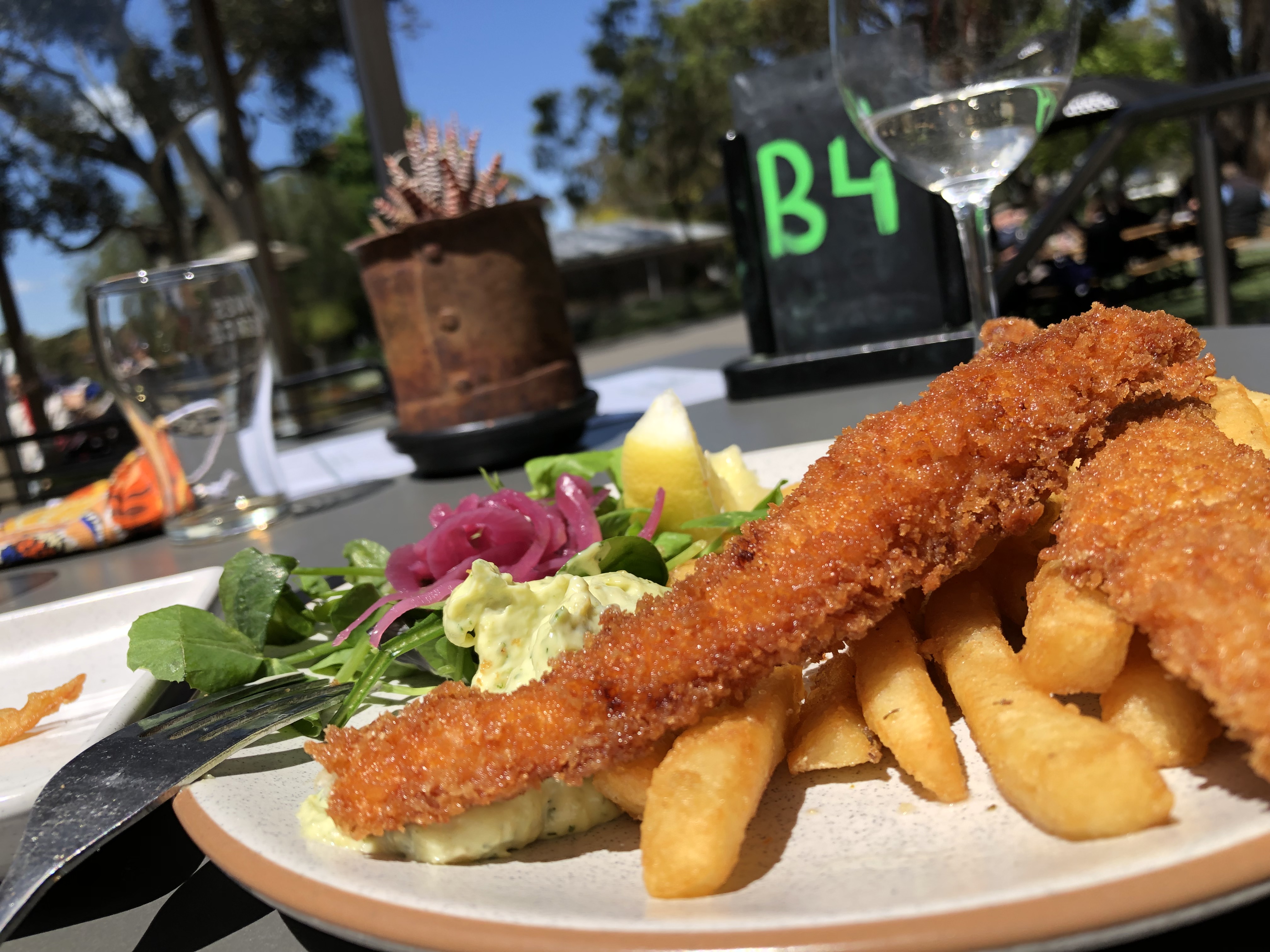 A lovely friendly hostess greeted us at Pikes and escorted us to a table under the huge gum trees in the outdoor dining area. While Rosie relaxed under the table, we also relaxed over a long lunch and enjoyed our beautiful surroundings, listening to the birdsong in the Pikes vineyard.