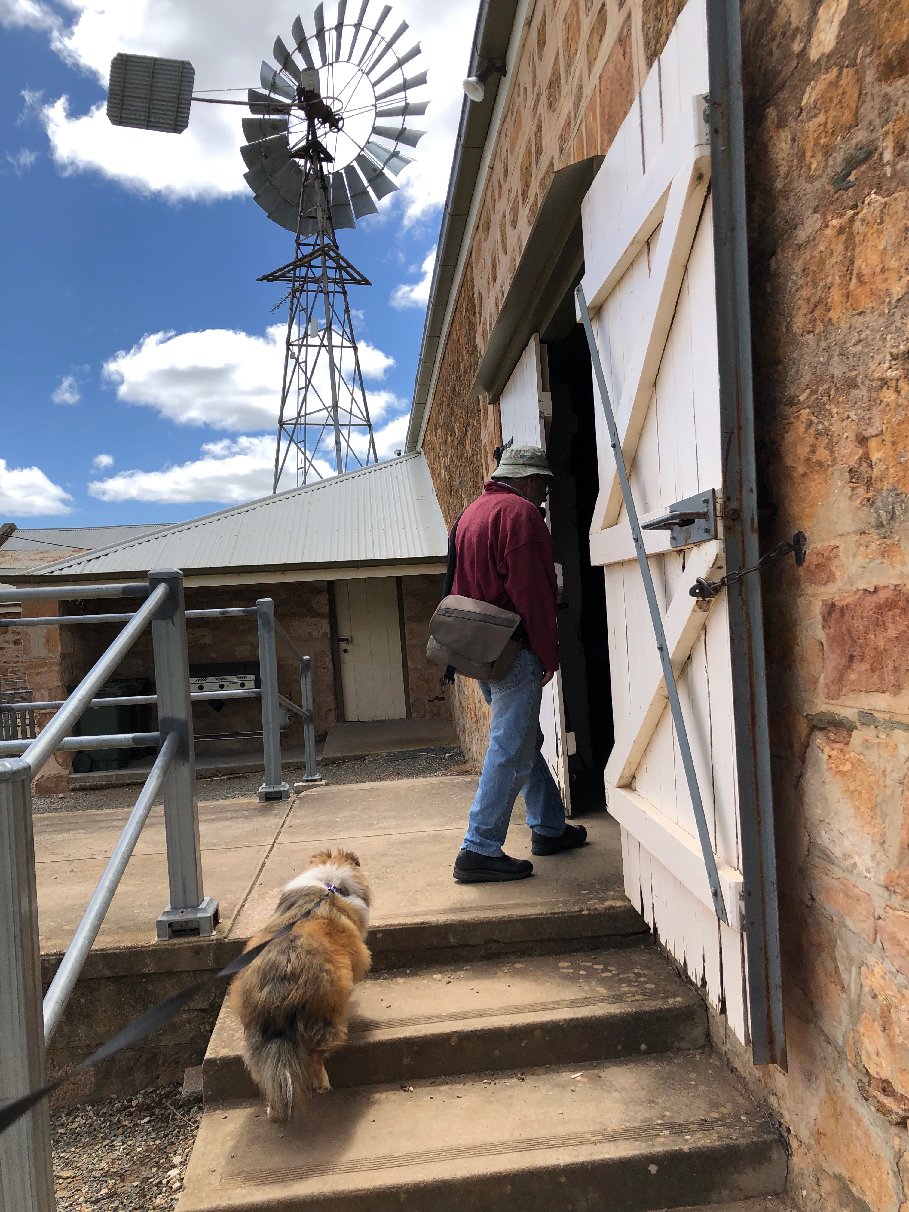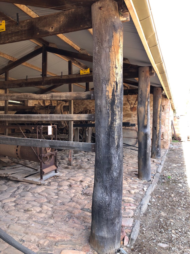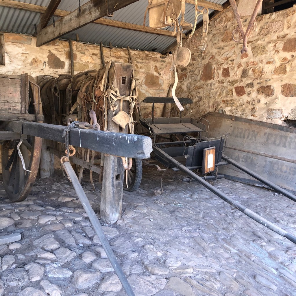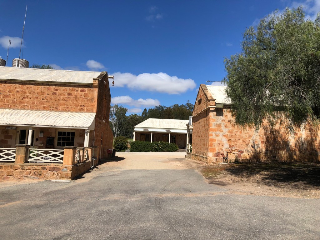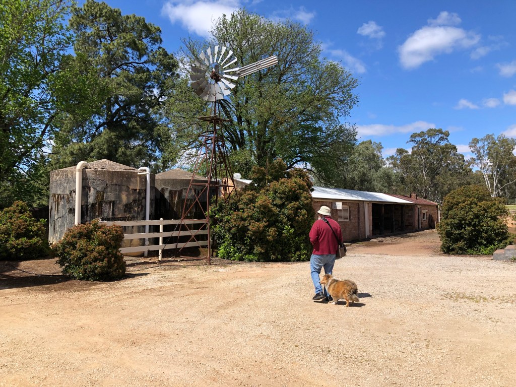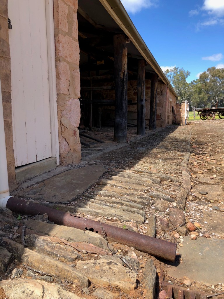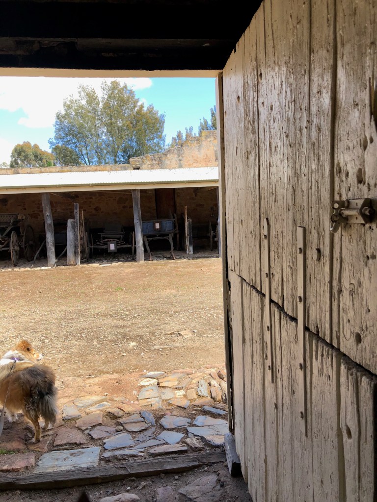 Bungaree is a grand old sheep station, which was first settled back in 1841 by George Hawker. It has stayed in the Hawker family now for 6 generations. As well as still being a working station, they offer self guided tours around many of the interesting old buildings and gardens that have been so beautifully maintained. Shearing had only finished last week, so the shearing sheds were of particular interest to Rosie’s sensitive nose. Strangely, she showed no interest in the freshly shawn white sheep grazing nearby.
