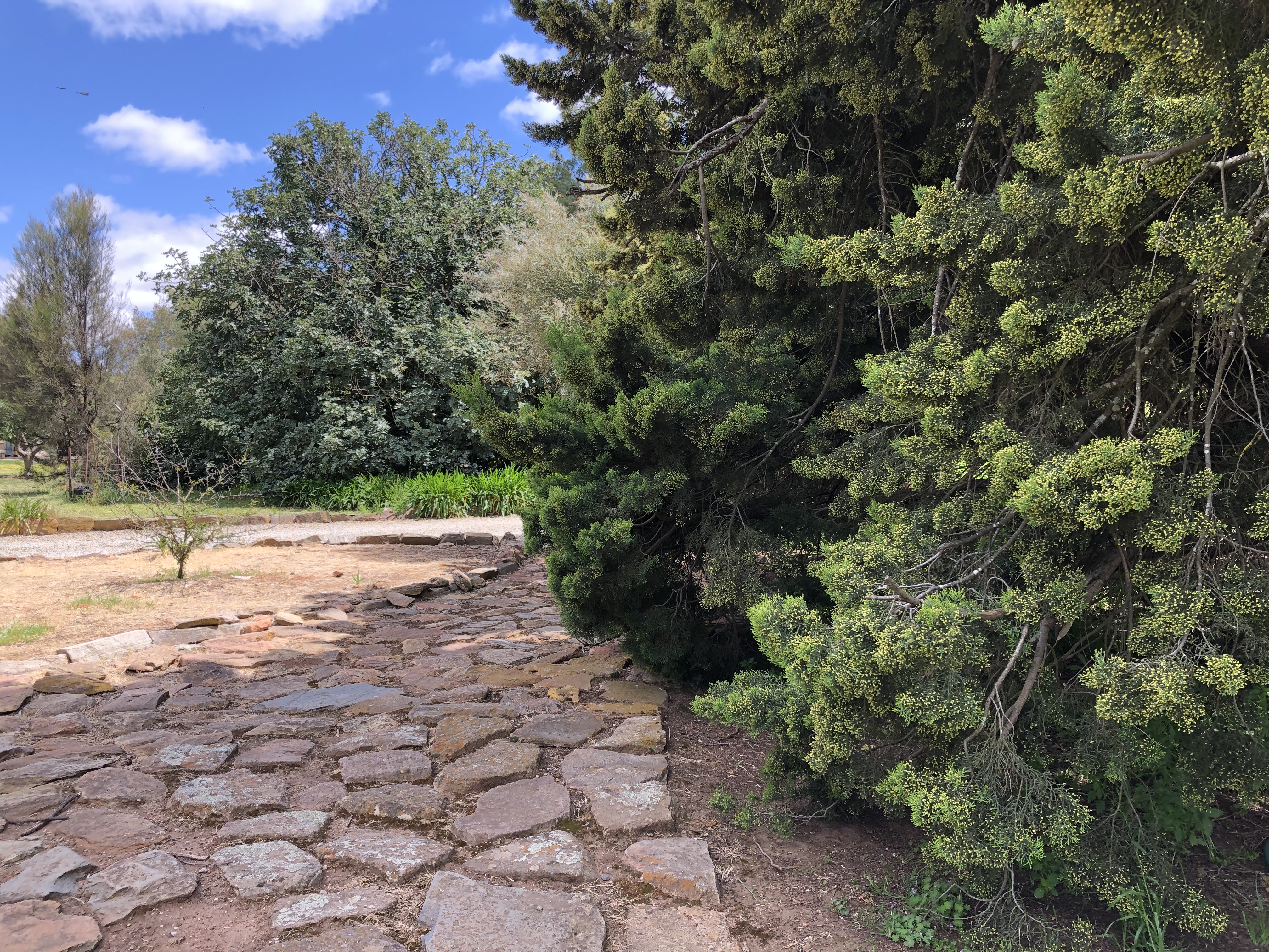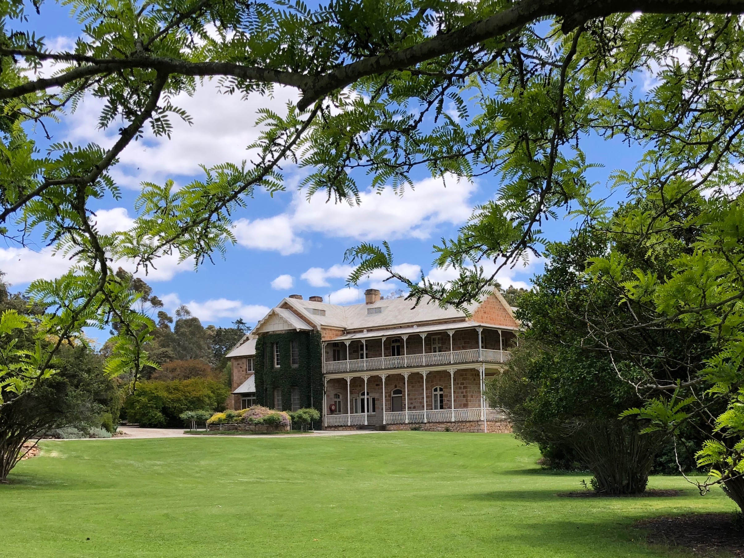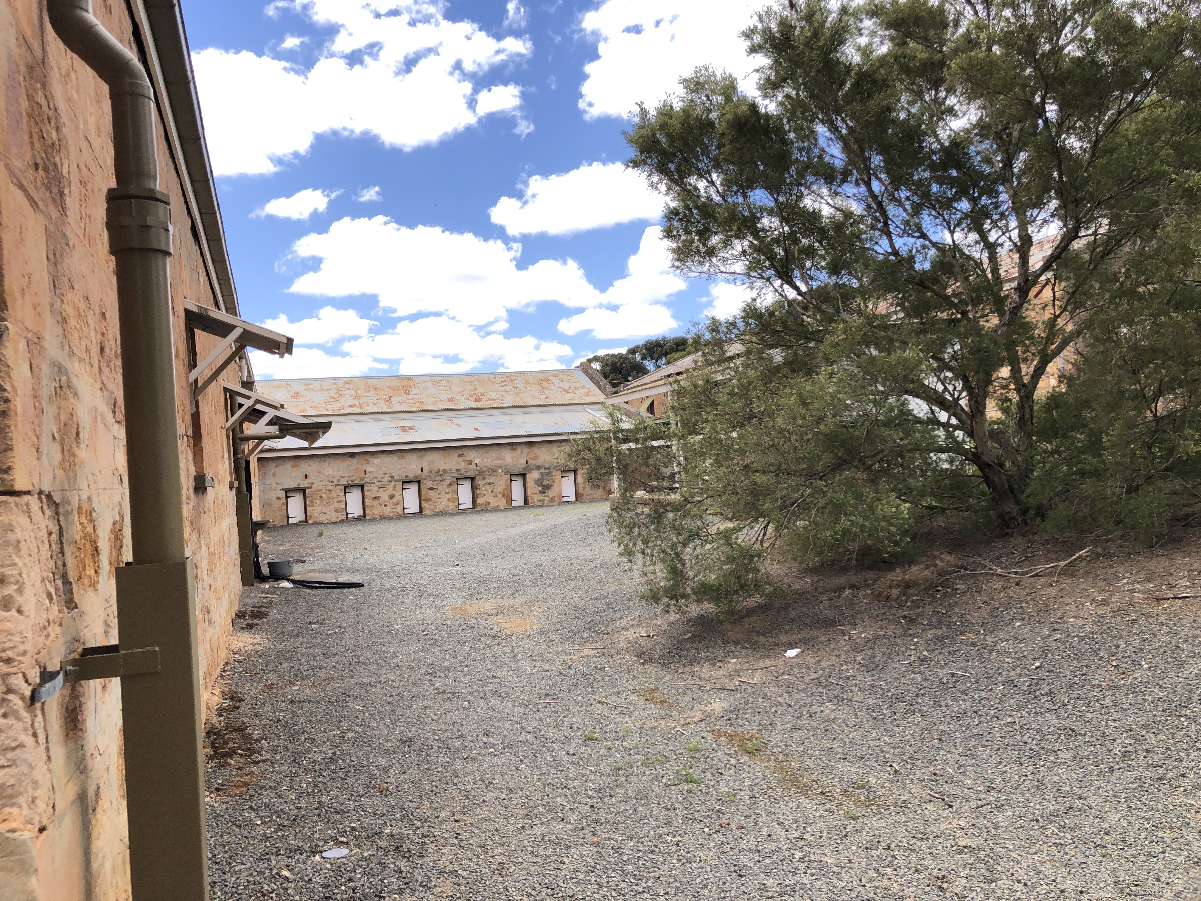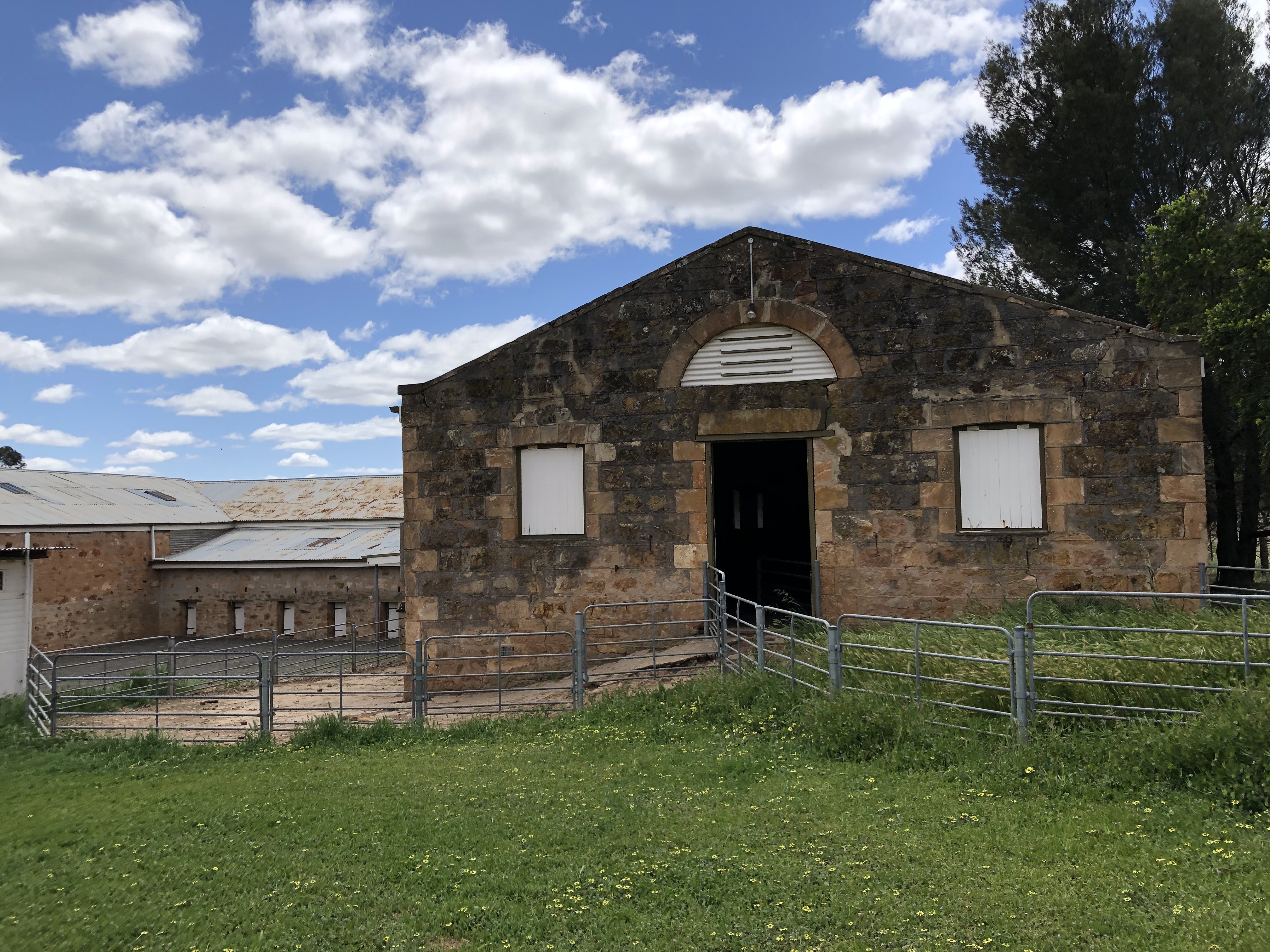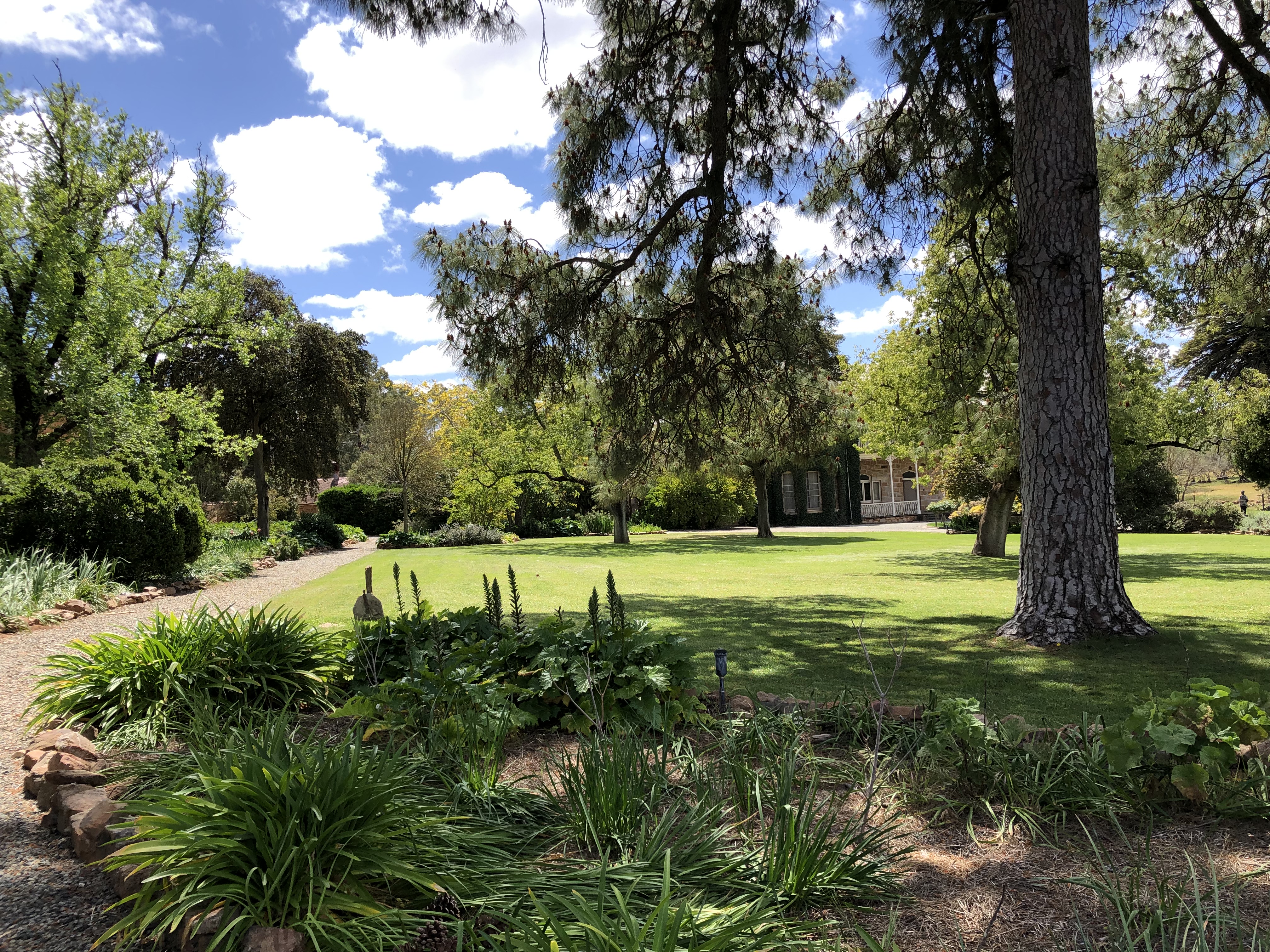 Bungaree is a grand old sheep station, which was first settled back in 1841 by George Hawker. It has stayed in the Hawker family now for 6 generations. As well as still being a working station, they offer self guided tours around many of the interesting old buildings and gardens that have been so beautifully maintained. Shearing had only finished last week, so the shearing sheds were of particular interest to Rosie’s sensitive nose. Strangely, she showed no interest in the freshly shawn white sheep grazing nearby.